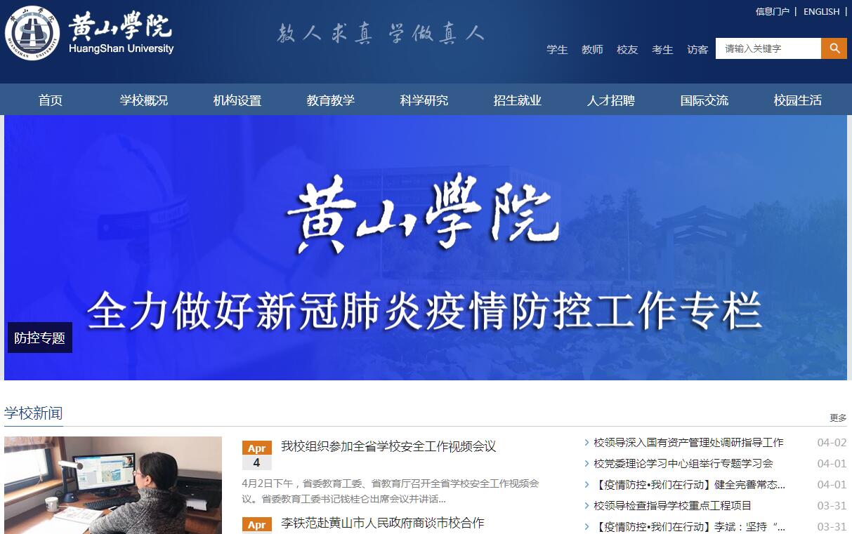 黃山學院坐落在風景秀麗、文風馥郁的中國優(yōu)秀旅游城市——安徽省黃山市,是一所綜合性省屬普通本科院校。學校創(chuàng)建于1978年,其前身為徽州師范??茖W校。1997年12月,學校更名為黃山高等??茖W校。2002年2月,經(jīng)國家教育部批準,黃山高等??茖W校升格為黃山學院。學校分為南、北兩個校區(qū),占地面積1800畝,校園生態(tài)豐富、環(huán)境優(yōu)美、人文底蘊深厚。校舍建筑面積49.93萬平方米,教學儀器設備總值2.74億元,圖書館紙質圖書154余萬冊,電子圖書130余萬冊,紙質期刊報紙1600余種,特色館藏徽州文書80000余份,徽州地方志、譜牒、地方古籍等6000余種,電子資源均提供24小時在線免費服務。學校擁有一批設施先進的綜合實驗室、分項實驗室,并擁有網(wǎng)絡中心、計算機中心、語言實驗中心、電化教育中心等現(xiàn)代化設施,形成教學、科研、實驗、閱覽、運動、娛樂、生活等配套完整的建筑群體。學校現(xiàn)設有16個二級學院,擁有工學、管理學、農學、文學、藝術學、理學、經(jīng)濟學、教育學等八大學科門類55個本科專業(yè),在校全日制學生18000余人。招生面向安徽、浙江、江蘇、山東、河北、河南、湖南、山西、江西等9個省、直轄市和自治區(qū)。學校還與美國、法國、德國、韓國等國家和香港、臺灣、澳門地區(qū)的29所高校簽訂了友好交流協(xié)議,開展國際交流合作和留學生教育,每年派師生出境交流學習100多人次;2006年開始招收國際留學生來校就讀,2013年獲批為中國政府獎學金生委托培養(yǎng)院校。學校擁有一支結構合理、富有發(fā)展?jié)摿Φ膸熧Y隊伍。全校教職工944人,其中專任教師827人,副高以上職稱人員230人,碩士以上學位教師667人,雙能型教師436人。近年來,廣大教師爭做“有理想信念、有道德情操、有扎實知識、有仁愛之心”的好老師,涌現(xiàn)出一大批先進典型。現(xiàn)有全國模范教師1人,全國優(yōu)秀教師4人,全省模范教師、優(yōu)秀教師、師德先進個人、優(yōu)秀教育工作者、教育系統(tǒng)先進工作者30余人,省學術技術帶頭人1人、后備人選2人,皖江學者特聘教授1人,省戰(zhàn)略性新興產(chǎn)業(yè)領軍人才2人,享受國務院特殊津貼1人、省政府特殊津貼2人,省級教學名師13人,省級教壇新秀19人。學校自建立以來,已為國家培養(yǎng)和輸送了69000多名畢業(yè)生,畢業(yè)生以其扎實的專業(yè)基礎、良好的綜合素質,受到社會的廣泛贊譽。畢業(yè)生就業(yè)率位居全省同類院校前列,五次被評為全省高校畢業(yè)生就業(yè)工作先進單位,連續(xù)三年被評為安徽省畢業(yè)生就業(yè)工作標兵單位,榮獲2015年度全國畢業(yè)生就業(yè)典型經(jīng)驗高校榮譽稱號。學??蒲袑嵙χ鸩教嵘?,獲國家科技進步獎二等獎、省科學技術獎二等獎、省社會科學文學藝術出版獎二等獎和市科學技術獎等多個獎項。擁有1個省級人文社會科學研究基地(安徽非物質文化遺產(chǎn)研究中心),獲批安徽省工程技術研究中心(安徽省仿真設計與現(xiàn)代制造工程技術研究中心)組建備案1個,獲批建設1個市級工程研究中心,建有生物資源研究所等16個校級科研平臺、6個校級重點學科。成立了校級科技開發(fā)中心,積極推動科技成果轉化,鼓勵各類人員申報專利,為地方應用型人才培養(yǎng)提供支撐,2011年進入安徽省高校發(fā)明專利十強,榮登2015、2017年度安徽省發(fā)明專利百強排行榜單,成功轉讓專利多項。學校于2015年6月成立創(chuàng)新創(chuàng)業(yè)教育學院,構建“教育系統(tǒng)化+實踐多樣化+服務全程化”的“三化”創(chuàng)新創(chuàng)業(yè)工作模式,逐步形成大學生創(chuàng)意激發(fā)—創(chuàng)新訓練—創(chuàng)新實踐—創(chuàng)業(yè)培育—新創(chuàng)企業(yè)—企業(yè)發(fā)展的創(chuàng)新創(chuàng)業(yè)教育生態(tài)系統(tǒng)。學校創(chuàng)新創(chuàng)業(yè)人才培養(yǎng)模式改革成果先后獲安徽省2010年、2012年教學成果一等獎、2015年教學成果特等獎。學校先后被列為安徽省首批國家級大學生創(chuàng)新創(chuàng)業(yè)訓練計劃實施高校、安徽省普通高校大學生創(chuàng)新創(chuàng)業(yè)教育示范校,2016年創(chuàng)新創(chuàng)業(yè)教育學院成為安徽省首批創(chuàng)業(yè)學院。學校堅持立足地方、服務地方,把服務地方經(jīng)濟社會發(fā)展作為一項重要戰(zhàn)略任務,充分發(fā)揮智力優(yōu)勢和人才優(yōu)勢,主動對接黃山市發(fā)展戰(zhàn)略和目標,全力服務旅游經(jīng)濟發(fā)展,大力助推生態(tài)環(huán)境保護, 傾力推動徽州文化傳承創(chuàng)新, 努力支持社會事業(yè)建設,在皖南國際旅游文化示范區(qū)、國家級徽州文化生態(tài)保護實驗區(qū)、新安江流域生態(tài)補償機制、 “百村千幢”古村落及古民居保護、美好鄉(xiāng)村建設等方面發(fā)揮重要作用,為地方經(jīng)濟社會發(fā)展作出了積極貢獻,取得了良好的經(jīng)濟效益和社會效益。學校堅持立德樹人根本任務,堅持依法治校與以德治校相結合,規(guī)范辦學,民主管理,精心育人,辦學成績顯著,曾被評為全國先進院校、國家語言文字工作先進單位、省人才工作先進單位、省文明單位、省高校綜合治理及精神文明建設優(yōu)秀單位、省高校體育衛(wèi)生先進單位、省思想政治工作優(yōu)秀高校、省花園式學校