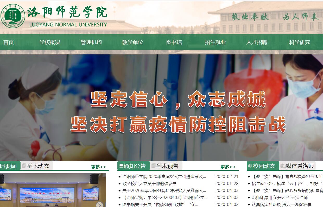 洛陽師范學(xué)院是一所省屬普通高等本科院校,位于千年帝都、牡丹花城、絲路起點(diǎn)——洛陽。學(xué)校地處伊水之濱,萬安山下,東漢太學(xué)便發(fā)端于此。南望二程故里,傳頌著程門立雪、魯臺(tái)望道的佳話;西望關(guān)林和世界文化遺產(chǎn)龍門石窟,綻放著世界文化遺產(chǎn)的璀璨光芒。洛陽師范學(xué)院的前身是始建于1916年的河洛師范學(xué)校,歷經(jīng)河南省立河洛師范學(xué)校、河南省立第四師范學(xué)校、河南省立洛陽師范學(xué)校、洛陽師范??茖W(xué)校、洛陽師范高等??茖W(xué)校諸階段,2000年升格為本科院校,定為現(xiàn)名。2007年,學(xué)校以優(yōu)異成績通過教育部本科教學(xué)工作水平評(píng)估,2011年獲批教育碩士專業(yè)學(xué)位研究生培養(yǎng)試點(diǎn)單位,2015年獲批非全日制研究生招生資格。近年來,學(xué)校獲得"全國語言文字工作先進(jìn)集體""全國五四紅旗團(tuán)委""河南省高校先進(jìn)黨委""河南省文明標(biāo)兵學(xué)校""河南省文明單位""河南省思想政治工作先進(jìn)單位""河南省普通高校畢業(yè)生就業(yè)工作先進(jìn)單位"等榮譽(yù)稱號(hào)。學(xué)校現(xiàn)有馬克思主義學(xué)院、文學(xué)院、歷史文化學(xué)院、法學(xué)與社會(huì)學(xué)院、外國語學(xué)院、數(shù)學(xué)科學(xué)學(xué)院、物理與電子信息學(xué)院、化學(xué)化工學(xué)院、信息技術(shù)學(xué)院、體育學(xué)院、音樂學(xué)院、美術(shù)學(xué)院、教育科學(xué)學(xué)院、生命科學(xué)學(xué)院、商學(xué)院、學(xué)前教育學(xué)院、新聞與傳播學(xué)院、國土與旅游學(xué)院、藝術(shù)設(shè)計(jì)學(xué)院、電子商務(wù)學(xué)院、食品與藥品學(xué)院、國際教育學(xué)院、繼續(xù)教育學(xué)院、軟件職業(yè)技術(shù)學(xué)院等24個(gè)學(xué)院,2個(gè)公共教研部,71個(gè)本科專業(yè),涵蓋文學(xué)、理學(xué)、工學(xué)、經(jīng)濟(jì)學(xué)、管理學(xué)、法學(xué)、歷史學(xué)、教育學(xué)、藝術(shù)學(xué)、農(nóng)學(xué)等10大學(xué)科門類。學(xué)校有全日制在校生32000余人,各類成人教育學(xué)生4000余人。學(xué)校始終堅(jiān)持教學(xué)工作的中心地位,以質(zhì)量工程建設(shè)為主線,深入開展教育教學(xué)改革。現(xiàn)有國家級(jí)和省級(jí)特色專業(yè)9個(gè)、專業(yè)綜合改革試點(diǎn)專業(yè)9個(gè)、精品課程和雙語示范課程等36門,省級(jí)教學(xué)團(tuán)隊(duì)6個(gè)、教學(xué)名師5人、實(shí)驗(yàn)教學(xué)示范中心5個(gè)、虛擬仿真實(shí)驗(yàn)教學(xué)中心1個(gè)、高等學(xué)校優(yōu)秀基層教學(xué)組織3個(gè);獲批省級(jí)教育教學(xué)改革研究項(xiàng)目72項(xiàng)、教師教育課程改革研究項(xiàng)目128項(xiàng)、教育綜合改革項(xiàng)目2項(xiàng),國家級(jí)大學(xué)生創(chuàng)新創(chuàng)業(yè)訓(xùn)練計(jì)劃項(xiàng)目337項(xiàng);獲得省級(jí)高等教育教學(xué)成果獎(jiǎng)28項(xiàng)、教師教育教學(xué)成果獎(jiǎng)16項(xiàng)。有國家級(jí)人才培養(yǎng)模式創(chuàng)新實(shí)驗(yàn)區(qū)1個(gè),國家級(jí)大學(xué)生校外實(shí)踐教學(xué)基地1個(gè),省級(jí)教師教育改革創(chuàng)新實(shí)驗(yàn)區(qū)1個(gè),省級(jí)人才培養(yǎng)模式改革試點(diǎn)專業(yè)1個(gè),省級(jí)應(yīng)用型、復(fù)合型法律職業(yè)人才教育培養(yǎng)基地1個(gè),省級(jí)文化改革發(fā)展人才培養(yǎng)基地1個(gè)。學(xué)校大力實(shí)施"人才興校"戰(zhàn)略,形成了一支結(jié)構(gòu)合理、素質(zhì)優(yōu)良的師資隊(duì)伍。現(xiàn)有教職工1630余人,其中,專任教師1450余人,高級(jí)職稱人員531人,占專任教師的37%;具有博士學(xué)位人員405人,占專任教師的28%;碩士學(xué)位人員900余人,碩士及以上學(xué)歷人員占專任教師的90%。教師隊(duì)伍中有新世紀(jì)百千萬人才工程國家級(jí)人選、享受國務(wù)院特殊津貼專家、全國優(yōu)秀教師、全國模范教師、教育部新世紀(jì)優(yōu)秀人才、省優(yōu)秀專家、省學(xué)術(shù)技術(shù)帶頭人、省高??萍紕?chuàng)新人才等各類優(yōu)秀人才200余人。學(xué)校堅(jiān)持以學(xué)科建設(shè)為龍頭,積極實(shí)施"學(xué)科引領(lǐng)"戰(zhàn)略和應(yīng)用科研攻堅(jiān)工程。2016年起連續(xù)入選"國際《基本科學(xué)指標(biāo)》(ESI)數(shù)據(jù)庫排行榜,化學(xué)學(xué)科ESI排名進(jìn)入全球大學(xué)和科研機(jī)構(gòu)的前1%;獲批國家重點(diǎn)研發(fā)計(jì)劃項(xiàng)目"中意智慧城市合作研究室",實(shí)現(xiàn)了國家重大科技研究項(xiàng)目的突破;獲批教育部國別與區(qū)域研究基地——意大利研究中心;旅游管理學(xué)科獲批河南省優(yōu)勢(shì)特色學(xué)科建設(shè)工程一期建設(shè)學(xué)科?,F(xiàn)有省級(jí)重點(diǎn)學(xué)科9個(gè)?,F(xiàn)有中原經(jīng)濟(jì)區(qū)智慧旅游河南省協(xié)同創(chuàng)新中心1個(gè),國家體育總局體育文化研究基地1個(gè),河南省公共文化研究中心、河南省智慧城市國際聯(lián)合實(shí)驗(yàn)室、中國(河南)自由貿(mào)易試驗(yàn)區(qū)研究院、河南省功能導(dǎo)向多孔材料重點(diǎn)實(shí)驗(yàn)室、綠色無機(jī)保溫材料實(shí)驗(yàn)室、無