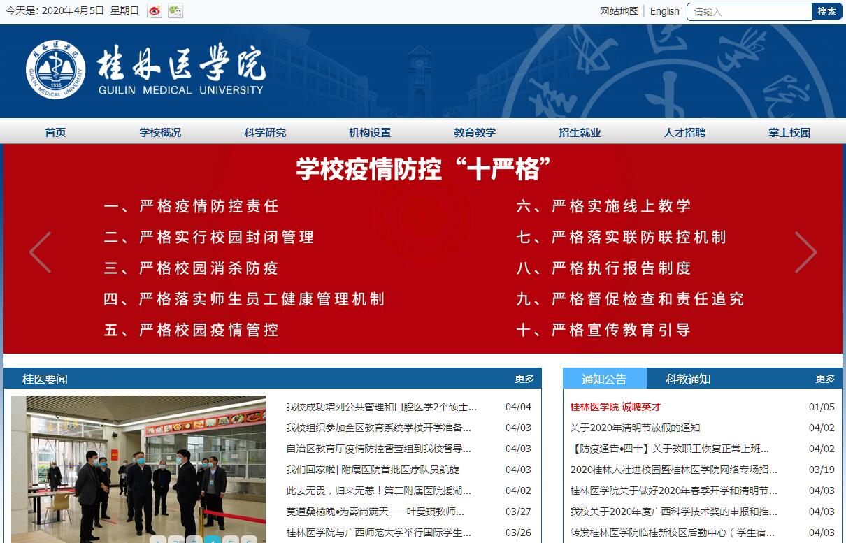 桂林醫(yī)學(xué)院是廣西壯族自治區(qū)直屬普通高等學(xué)校,是教育部本科教學(xué)工作水平評(píng)估優(yōu)秀高校,教育部第一批“卓越醫(yī)生教育培養(yǎng)計(jì)劃”項(xiàng)目試點(diǎn)高校,被譽(yù)為“閃耀桂北的醫(yī)學(xué)明珠”。學(xué)校前身為創(chuàng)建于1935年的廣西省立桂林高級(jí)助產(chǎn)護(hù)士學(xué)校,1958年升格更名為桂林醫(yī)學(xué)??茖W(xué)校,1987年升格更名為桂林醫(yī)學(xué)院。2014年列為博士學(xué)位授權(quán)立項(xiàng)建設(shè)單位,2015年獲批設(shè)立博士后科研工作站。學(xué)校占地面積85萬余平方米,包括樂群、東城、臨桂三個(gè)校區(qū),擁有20個(gè)二級(jí)學(xué)院(系、部)、7所附屬醫(yī)院、22所臨床教學(xué)醫(yī)院。在基礎(chǔ)醫(yī)學(xué)、臨床醫(yī)學(xué)、藥學(xué)三個(gè)學(xué)科碩士點(diǎn)開展研究生教育,全日制普通高等教育設(shè)有臨床醫(yī)學(xué)、藥學(xué)、生物技術(shù)、護(hù)理學(xué)等20個(gè)本科專業(yè)和5個(gè)高等職業(yè)教育專業(yè)。學(xué)校面向全國(guó)21個(gè)省、市、自治區(qū)招生,目前擁有全日制本??粕?3243人、研究生606人、留學(xué)生341人等各級(jí)各類學(xué)生近3萬人。學(xué)校有教職工及醫(yī)務(wù)人員4400余人,專任教師932人,教授及相應(yīng)正高職稱人員214人,副教授及相應(yīng)副高職稱人員521人。博士生導(dǎo)師、碩士生導(dǎo)師319人,享受國(guó)務(wù)院政府特殊津貼專家7人、全國(guó)優(yōu)秀教師及全國(guó)優(yōu)秀教育工作者、“八桂名師”、“八桂學(xué)者”、廣西高校教學(xué)名師、廣西“特聘專家”、廣西高?!鞍偃擞?jì)劃”專家、廣西優(yōu)秀專家、廣西有突出貢獻(xiàn)科技人員、廣西醫(yī)學(xué)高層次骨干人才培養(yǎng)“139”計(jì)劃領(lǐng)軍人才、廣西“新世紀(jì)十百千人才工程”第二層次入選專家等知名專家學(xué)者30余人次。聘請(qǐng)了國(guó)家“千人計(jì)劃”專家、國(guó)家杰出青年科學(xué)基金獲得者、國(guó)家有突出貢獻(xiàn)中青年專家、中科院首席科學(xué)家等國(guó)內(nèi)外著名學(xué)者15人作為特聘教授、客座教授。學(xué)校現(xiàn)有國(guó)家級(jí)特色專業(yè)建設(shè)點(diǎn)、自治區(qū)級(jí)重點(diǎn)專業(yè)、自治區(qū)級(jí)優(yōu)質(zhì)專業(yè)、自治區(qū)級(jí)特色專業(yè)、自治區(qū)級(jí)創(chuàng)新創(chuàng)業(yè)教育改革示范專業(yè)、自治區(qū)級(jí)優(yōu)勢(shì)特色專業(yè)建設(shè)點(diǎn)等14個(gè)國(guó)家和自治區(qū)級(jí)專業(yè)建設(shè)項(xiàng)目。有自治區(qū)級(jí)重點(diǎn)學(xué)科7個(gè),國(guó)家中醫(yī)藥科研三級(jí)實(shí)驗(yàn)室、自治區(qū)級(jí)重點(diǎn)實(shí)驗(yàn)室、廣西高校重點(diǎn)實(shí)驗(yàn)室等10個(gè)國(guó)家和自治區(qū)實(shí)驗(yàn)室建設(shè)項(xiàng)目,建立有廣西高校協(xié)同創(chuàng)新中心、中藥固體制劑制造技術(shù)國(guó)家工程研究中心廣西中心、廣西高校人文社會(huì)科學(xué)重點(diǎn)研究基地。建設(shè)有自治區(qū)級(jí)實(shí)驗(yàn)教學(xué)示范中心、自治區(qū)級(jí)人才培養(yǎng)模式創(chuàng)新實(shí)驗(yàn)區(qū)、自治區(qū)級(jí)協(xié)同育人平臺(tái)等9個(gè)自治區(qū)級(jí)育人平臺(tái),有自治區(qū)級(jí)教學(xué)團(tuán)隊(duì)、自治區(qū)級(jí)創(chuàng)新創(chuàng)業(yè)教學(xué)團(tuán)隊(duì)6個(gè),自治區(qū)級(jí)精品課程18門,建有自治區(qū)級(jí)大學(xué)生校外實(shí)踐教育基地、醫(yī)師人文醫(yī)學(xué)執(zhí)業(yè)技能培訓(xùn)基地。學(xué)校近5年共承擔(dān)各類科研項(xiàng)目875項(xiàng),獲各級(jí)科技成果獎(jiǎng)51項(xiàng),獲國(guó)家專利授權(quán)53項(xiàng),其中發(fā)明專利14項(xiàng)。發(fā)表學(xué)術(shù)論文3061篇,其中SCI收錄203篇。根據(jù)中國(guó)科學(xué)技術(shù)信息研究所公布的《中國(guó)科技論文統(tǒng)計(jì)結(jié)果》,我校2015年、2016年連續(xù)躋身中國(guó)大學(xué)最具影響力學(xué)術(shù)論文排行百?gòu)?qiáng)榜。學(xué)校主辦的《華夏醫(yī)學(xué)》是中國(guó)學(xué)術(shù)期刊綜合評(píng)價(jià)數(shù)據(jù)庫(kù)統(tǒng)計(jì)源期刊、《中國(guó)期刊網(wǎng)》及《萬方數(shù)據(jù)-數(shù)字化期刊群》全文上網(wǎng)期刊、美國(guó)化學(xué)文摘收錄期刊和廣西優(yōu)秀科技期刊。學(xué)校以質(zhì)量工程為抓手,深化教育教學(xué)改革,加強(qiáng)教學(xué)內(nèi)涵建設(shè),全面提升人才培養(yǎng)質(zhì)量。近5年承擔(dān)省級(jí)教學(xué)改革項(xiàng)目129項(xiàng),學(xué)校先后獲國(guó)家級(jí)教學(xué)成果獎(jiǎng)1項(xiàng),省級(jí)教學(xué)成果獎(jiǎng)40項(xiàng)。學(xué)生在全國(guó)及自治區(qū)級(jí)各類技能比賽中成績(jī)顯著,在首屆全國(guó)護(hù)士(英語)執(zhí)業(yè)水平技能競(jìng)賽中獲團(tuán)體總成績(jī)冠軍和兩個(gè)單項(xiàng)第一,在全國(guó)醫(yī)藥院校藥學(xué)/中藥學(xué)大學(xué)生實(shí)驗(yàn)技能競(jìng)賽中獲全國(guó)一等獎(jiǎng),在全國(guó)醫(yī)學(xué)院校醫(yī)學(xué)生臨床技能大賽總決賽中獲得全國(guó)二等獎(jiǎng)、多次三等獎(jiǎng),在全國(guó)