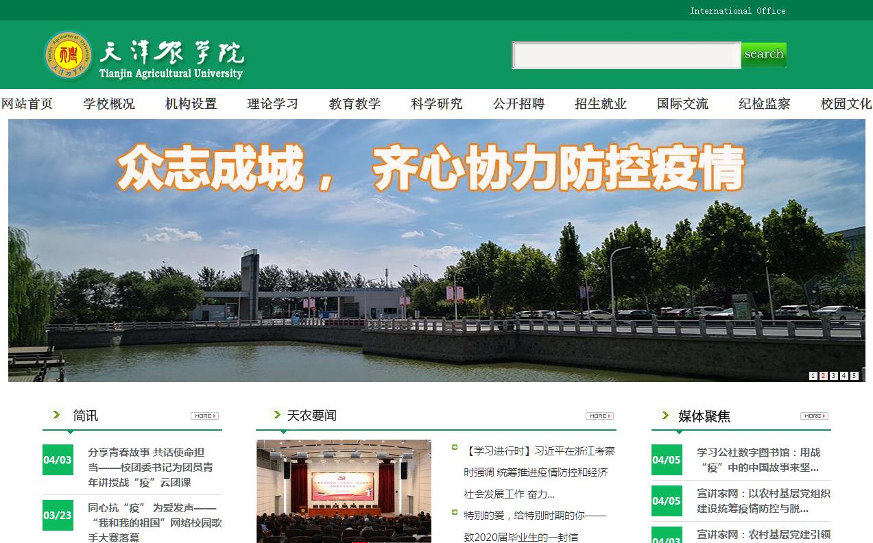 天津農(nóng)學(xué)院始建于1976年。2002年經(jīng)天津市政府批準(zhǔn),天津市城鄉(xiāng)經(jīng)濟(jì)學(xué)校并入天津農(nóng)學(xué)院。1982年獲學(xué)士學(xué)位授予權(quán),2006年獲碩士學(xué)位授予權(quán)。1996年首批通過教育部本科教學(xué)合格評價,2007年在教育部進(jìn)行的本科教學(xué)工作水平評估中獲得“優(yōu)秀”。學(xué)校以農(nóng)科為主體,農(nóng)學(xué)、工學(xué)、管理學(xué)、理學(xué)、經(jīng)濟(jì)學(xué)、文學(xué)、藝術(shù)學(xué)協(xié)調(diào)發(fā)展。經(jīng)過多年的辦學(xué)實(shí)踐,形成了緊貼區(qū)域經(jīng)濟(jì)社會發(fā)展,服務(wù)于現(xiàn)代都市型農(nóng)業(yè)的鮮明辦學(xué)特色。學(xué)?,F(xiàn)有東、西兩個校區(qū),校園占地面積1049畝,校舍建筑面積30萬平方米。建有現(xiàn)代化的教學(xué)樓、實(shí)驗(yàn)樓、圖書館、網(wǎng)絡(luò)中心、體育場館等設(shè)施?,F(xiàn)有在校生近13000人(本科生11200人、高職生1000人、研究生500人、留學(xué)生52人)。學(xué)校以學(xué)科建設(shè)為龍頭,以提高人才培養(yǎng)質(zhì)量為中心,大力實(shí)施“質(zhì)量立校、人才強(qiáng)校、特色興校、文化鑄?!卑l(fā)展戰(zhàn)略?,F(xiàn)有16個學(xué)院(部)、7個學(xué)科門類、45個本科專業(yè)及方向、8個高職專業(yè),有3個一級學(xué)科、9個二級學(xué)科學(xué)術(shù)碩士學(xué)位授權(quán)點(diǎn)、3個碩士專業(yè)學(xué)位授權(quán)點(diǎn)。2017年,獲批為天津市2017-2020年博士學(xué)位授權(quán)單位立項(xiàng)建設(shè)高校,作物學(xué)、獸醫(yī)學(xué)和水產(chǎn)三個一級學(xué)科為博士學(xué)位授權(quán)建設(shè)學(xué)科。學(xué)校有4個天津市級重點(diǎn)學(xué)科、1個天津市級重點(diǎn)實(shí)驗(yàn)室、2個教育部特色專業(yè)建設(shè)點(diǎn)、1個國家級觀賞植物資源開發(fā)工程實(shí)驗(yàn)室、1個國家級實(shí)驗(yàn)教學(xué)示范中心、1個國家水產(chǎn)品加工技術(shù)研發(fā)專業(yè)分中心——國家大宗淡水魚加工技術(shù)研發(fā)分中心(天津)、1個國家級大學(xué)生校外實(shí)踐教育基地。有7門天津市級精品課程、7個天津市級品牌專業(yè)。獲國家科技進(jìn)步二等獎1項(xiàng)、國家級教學(xué)成果二等獎1項(xiàng)、市級教學(xué)成果一等獎4項(xiàng)、市級教學(xué)成果二等獎5項(xiàng)。學(xué)校設(shè)有“天津市現(xiàn)代漁業(yè)技術(shù)工程中心”、“天津市農(nóng)業(yè)生物技術(shù)研究中心”、“天津市花卉技術(shù)工程中心”、“天津中日水稻品質(zhì)·食味研究中心”、“天津中日農(nóng)村環(huán)境資源合作研究中心”、“天津市農(nóng)產(chǎn)品加工科技創(chuàng)新與成果轉(zhuǎn)化基地”、“天津市農(nóng)業(yè)節(jié)水研究中心”、“天津市農(nóng)副產(chǎn)品深加工技術(shù)工程中心”。學(xué)校以服務(wù)現(xiàn)代都市型農(nóng)業(yè)為己任,主動適應(yīng)現(xiàn)代都市型農(nóng)業(yè)發(fā)展需求,合理調(diào)整課程體系,逐步形成了支撐現(xiàn)代農(nóng)業(yè)發(fā)展的較為合理的專業(yè)生態(tài)群;在大眾化教育背景下,學(xué)校強(qiáng)化“寬、適”性人才培養(yǎng)模式,植根津沽大地辦學(xué),堅(jiān)持走產(chǎn)學(xué)研結(jié)合之路。近年來,畢業(yè)生就業(yè)率均在90%以上,在全市同類院校中處于領(lǐng)先水平。天農(nóng)畢業(yè)生樸實(shí)無華、踏實(shí)肯干、吃苦耐勞的品格得到了社會的認(rèn)同,“下得去、上手快、用得上、留得住”成為用人單位對天農(nóng)學(xué)子的共識。學(xué)校桃李遍及海內(nèi)外,自建校以來,已為社會輸送了各級各類畢業(yè)生5萬余人,涌現(xiàn)出一大批國內(nèi)外著名的農(nóng)業(yè)科技人才、教育專家、優(yōu)秀管理專家和領(lǐng)導(dǎo)干部。學(xué)校大力實(shí)施“人才強(qiáng)?!睉?zhàn)略,建立了一支高水平的教學(xué)科研隊(duì)伍。學(xué)校現(xiàn)有教職工960人,其中專任教師612人。教師當(dāng)中,具有博士學(xué)位的235人,有教授113人、副教授220人、雙聘院士2人、享受政府特殊津貼專家5人、天津市授銜專家1人、天津市教學(xué)名師7人、市級優(yōu)秀教師5人,有教育部教學(xué)指導(dǎo)委員會委員8人,有市級教學(xué)團(tuán)隊(duì)9支、市級教學(xué)創(chuàng)新團(tuán)隊(duì)2支、天津市高??萍紕?chuàng)新團(tuán)隊(duì)3支。學(xué)校還聘請了一大批國內(nèi)外知名專家擔(dān)任學(xué)校的兼職教授。學(xué)校堅(jiān)持以科研促進(jìn)教學(xué),學(xué)術(shù)水平不斷提高。近五年來,全校取得包括國家級“863”、“973”項(xiàng)目、國家自然科學(xué)基金項(xiàng)目、國家社科基金項(xiàng)目等各類科研項(xiàng)目600多項(xiàng)。取得具有自主知識產(chǎn)權(quán)的科技成果520項(xiàng)、授權(quán)專利78項(xiàng)。獲國家和省、部級科技獎勵300多項(xiàng)?!短旖蜣r(nóng)學(xué)院學(xué)報(bào)》作為公開出版物,多次被評為全國優(yōu)秀農(nóng)業(yè)期刊和天津市一級期刊,被國內(nèi)外多家數(shù)據(jù)庫列為農(nóng)業(yè)類重要刊源。學(xué)校積極擴(kuò)大國際交流與合作,開展中外合作辦學(xué),開放辦學(xué)水平不斷提高。先后與德國、烏克蘭、菲律