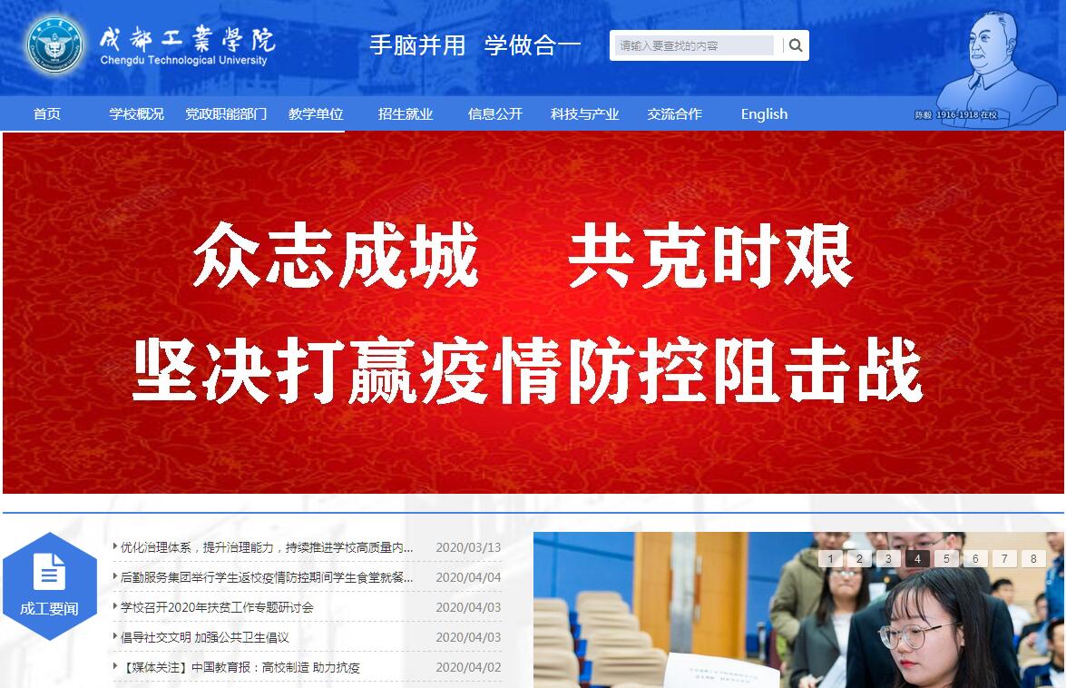 成都工業(yè)學院是四川省人民政府舉辦的公辦全日制普通本科學校。學校創(chuàng)辦于1913年,是辛亥革命后四川省舉辦的第一所實業(yè)學校。學校曾先后12次更名,歷經四川省立第一甲種工業(yè)學校、四川省立成都高級工業(yè)職業(yè)學校、成都無線電機械學校、成都電子機械高等??茖W校等多個歷史發(fā)展階段。新中國成立后長期直屬國家電子工業(yè)部,1987年起改由四川省人民政府主辦、省電子工業(yè)廳主管,2000年調整為四川省教育廳主管。陳毅元帥曾于1916-1918在我校染織專業(yè)學習。江澤民同志曾視察過我校,并親筆為學校七十五周年校慶題詞:“發(fā)揚優(yōu)良傳統(tǒng),培養(yǎng)優(yōu)秀人才”。學?,F(xiàn)為全國“十三五”產教融合發(fā)展工程“應用型本科高校建設”規(guī)劃項目院校,獲得了中央支持地方高校改革發(fā)展專項資金項目單位資格,四川省首批“卓越工程師教育培養(yǎng)試點高?!?,四川省首批教育綜合改革試點單位、“本科院校整體轉型發(fā)展改革”試點單位,四川省首批創(chuàng)新改革試點院校,四川省博士后創(chuàng)新實踐基地,學校科技園為四川省第8家省級大學科技園,入圍首批四川省高校創(chuàng)新改革試點單位,當選全國新建本科院校聯(lián)盟副理事長單位,牽頭組建并當選為四川省應用型本科高校聯(lián)盟理事長單位,當選為四川省裝備制造業(yè)產教聯(lián)盟副理事長單位,是四川省教育廳、四川省經濟和信息化委員會“廳委共建”院校。建校一百余年來,學校從未間斷過辦學,始終秉持“手腦并用、學做合一”的校訓和“嚴謹、樸實、勤奮、創(chuàng)新”的校風,堅持“根植地方,魂在應用,產教融合,協(xié)同育人”,為國家培養(yǎng)了一大批優(yōu)秀人才,為地方的社會經濟發(fā)展傾盡綿薄之力。學校占地面積1000畝,主校區(qū)位于成都郫都區(qū),此外還有成都市中心的花牌坊校區(qū)和北郊的大豐校區(qū),普通全日制學生集中在主校區(qū)學習。學校設有機械工程學院、材料工程學院、電氣工程學院、電子工程學院、網絡與通信工程學院、經濟與管理學院、計算機工程學院、人文體育與設計學院、建筑與環(huán)境工程學院、馬克思主義學院(籌)、創(chuàng)新創(chuàng)業(yè)學院、信息與計算科學系、外語系等13個教學院系和1個繼續(xù)教育學院,有27個本科專業(yè)。全日制在校學生約12700人。學校共有教職工811人,其中專任教師600余人,副高以上高級職稱教師300余人,碩士及以上學位教師500余人;3名國家級教學名師和6名省級教學名師,1名“青年千人計劃”教師,3個國家級教學團隊(計算機、機械、機電)和4個省級教學團隊,教師榮獲全國師德先進個人、全國優(yōu)秀教師、省師德標兵、享受政府特殊津貼的專家、省學術與技術帶頭人及后備人選、省有突出貢獻的優(yōu)秀專家等稱號40余人次。學?!安牧铣尚图翱刂乒こ獭?、“機械電子工程”、“微電子科學與工程”成功入選四川省首批地方普通本科高校應用型示范專業(yè)?!稕_壓工藝與模具設計》、《高等數學》、《機械制造技術》3門獲批為省級精品在線開放課程。學校以《轉型發(fā)展,產教“五融合”,培養(yǎng)應用型工程人才》為題的教改項目獲得四川省第八屆高等教育四川省教學成果一等獎。 學校教學儀器設備總值1.28億元,圖書館藏書123萬余冊,建有設備值超過1000萬元、基于萬兆主干網的校園網,已形成比較完善的計算機網絡服務體系,在四川省高校校園網建設檢查評估中被評為“優(yōu)秀”。學校有教育部批準設立的3個國家級實訓基地(機械電子工程、數控技術、汽車檢測與維修),3個四川省教育廳重點實驗室(模具、電加工、無人機飛行控制系統(tǒng)應用與技術)和2個四川省哲學社會科學重點研究基地(性社會學與性教育研究中心、無人機產業(yè)發(fā)展研究中心);建有50個建制實驗室,200個功能實驗室,其中17個實驗室為與英特爾成都公司等校外單位共同建設的“產學研用”實驗室,電工電子實驗室為“四川省優(yōu)秀基礎課實驗室”。3個省級實驗教學示范中心,1個省級虛擬仿真示范中心。學校校內還建有“工程素質訓練中心”、“大學生特質培養(yǎng)創(chuàng)新中心”及與行業(yè)骨干企業(yè)合作建立的126個校外實習基地,其中3個省級大學生校外實踐教學基地(宏明、仕蘭、寧江機床)。學校一直堅持產學研相結合的應用型人才培養(yǎng)模式,注重培養(yǎng)學生的學習、實踐、創(chuàng)新能力。我?!靶F蠛献鳎瑢崿F(xiàn)工程實訓基地運行機制創(chuàng)新的探索與實踐”曾獲得國家級教學成果一等獎,在校內建設真實工程環(huán)境的訓練中心的研究成果在其他高校得到了推廣應用。學生在各項全國學科競賽中成績突出,在“全國大學生數學建模競賽”“全國大學生電子設計大賽”等比賽中,獲得國家級一、二等獎幾十項,2013年我校學生獲全國大學生數學建模競賽的冠軍,榮獲“高教社杯”。學校廣泛開展了與美國、英國、加拿大、愛爾蘭、德國、日本、新加坡、澳大利亞、新西蘭等國家及我國香港、臺灣地區(qū)的交流與合作,每年選派多名師生赴海外和港臺地區(qū)訪學進修、合作研究和交換學習。與加拿大荷蘭學院合作培養(yǎng)了十屆近千名雙文憑畢業(yè)生。經過長期的建設和發(fā)展,學校