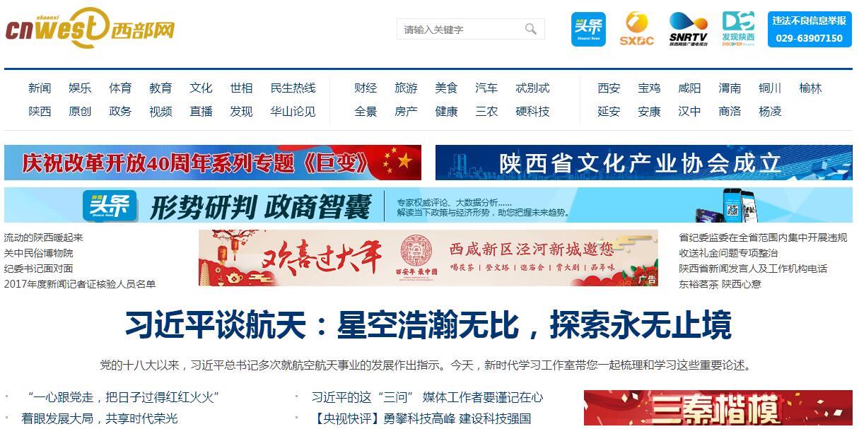 西部網(wǎng)(陜西新聞網(wǎng))www.cnwest.com由陜西省委宣傳部主管、陜西廣播電視臺具體管理 ,是省委、省政府確定的“一報(bào)一臺一網(wǎng)”(陜西日報(bào)、陜西廣播電視臺、陜西西部網(wǎng))省級主要新聞媒體。作為我省網(wǎng)絡(luò)文化建設(shè)的中堅(jiān)力量,西部網(wǎng)承擔(dān)著網(wǎng)上新聞報(bào)道、輿論引導(dǎo)、網(wǎng)絡(luò)文化建設(shè)等重要任務(wù), 是我省網(wǎng)絡(luò)新聞宣傳的重要平臺,也是陜西新聞信息整合匯聚、具有權(quán)威性的新聞門戶網(wǎng)站 。曾多次榮獲“宣傳陜西突出貢獻(xiàn)媒體”、“陜西最具影響力網(wǎng)站”、“全國百強(qiáng)新聞網(wǎng)站”、“中國地方新聞網(wǎng)站十佳品牌”、“陜西文明辦網(wǎng)先進(jìn)單位”等稱號。目前,網(wǎng)站通過“西部網(wǎng)、《陜西頭條》客戶端、陜西網(wǎng)絡(luò)廣播電視臺和雙微矩陣”四大平臺傳播體系的搭建,形成“電腦端、手機(jī)端、電視屏”三位一體的媒體矩陣,業(yè)務(wù)涵蓋新聞發(fā)布、視頻服務(wù)、網(wǎng)絡(luò)問政、數(shù)字政務(wù)、微信代運(yùn)營、新技術(shù)開發(fā)、項(xiàng)目拓展、會展活動等多個領(lǐng)域,實(shí)現(xiàn)影響力的全面覆蓋。陜西西部新傳媒有限公司是陜西西部網(wǎng)轉(zhuǎn)企改制成立的獨(dú)立法人企業(yè),全權(quán)承擔(dān)陜西西部網(wǎng)的管理和運(yùn)營等。