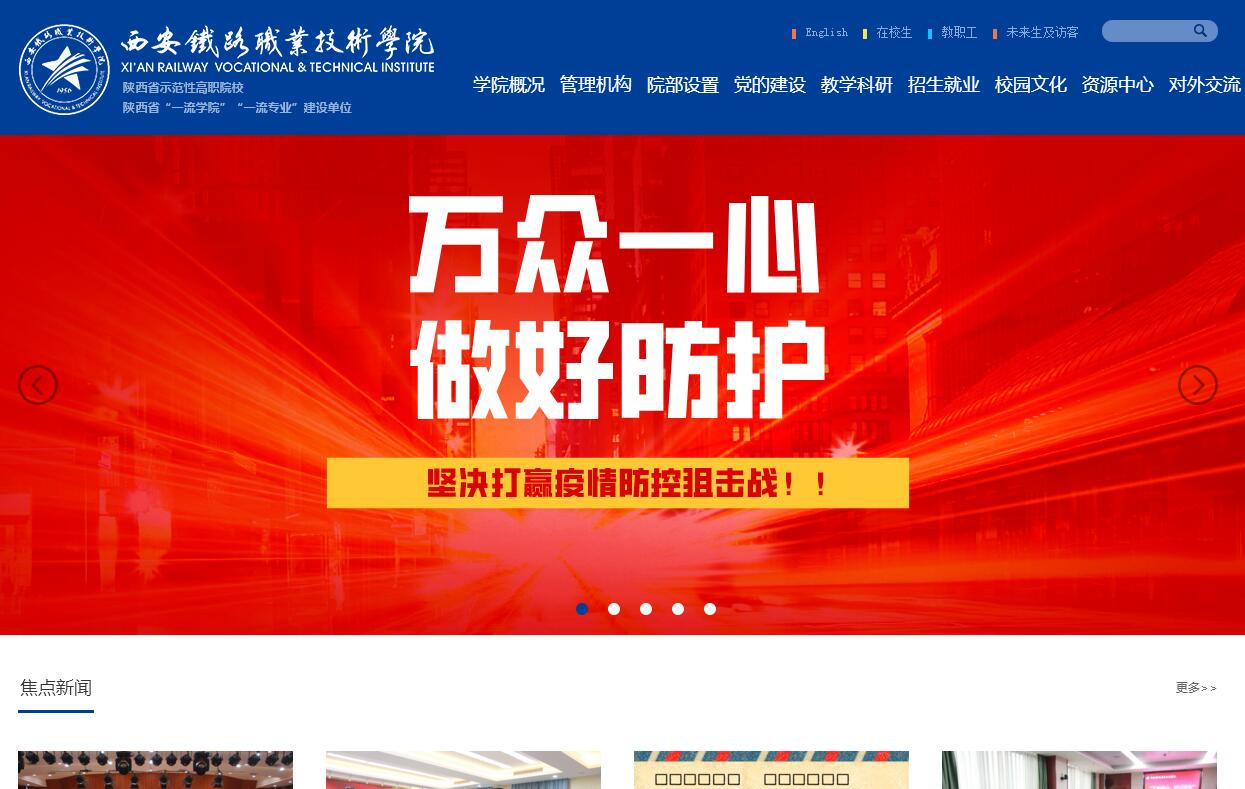 西安鐵路職業(yè)技術(shù)學院是西安市人民政府主辦的全日制普通高等職業(yè)院校,是陜西省示范性高職院校、國家優(yōu)質(zhì)高職院校建設單位、陜西省一流高職院校建設單位。學校創(chuàng)建于1956年,由隸屬于原鐵道部的西安鐵路運輸學校和西安鐵路運輸職工大學合并組建而成。學校位于西安國際港務區(qū),有港務校區(qū)(本部)、自強校區(qū)、臨潼校區(qū)3個校區(qū),總占地700余畝,建筑面積33萬平方米,固定資產(chǎn)10億元。學校秉承“尚德、守則、強能、篤行”的校訓和“辦學不脫軌、育人不離道”的辦學理念,緊緊依托行業(yè),服務區(qū)域經(jīng)濟,堅持特色立校、人才強校,發(fā)揮60年的軌道交通行業(yè)辦學積淀,形成了以鐵道運輸類、城市軌道交通類兩大行業(yè)涵蓋的專業(yè)與專業(yè)群為重點,以電力技術(shù)類、土木建筑類、裝備制造類和電子信息類等相關(guān)專業(yè)為輔的專業(yè)群。學校于2009年通過教育部人才培養(yǎng)工作評估,2014年成為陜西省優(yōu)秀示范性高職院校。學校面向全國招生,全日制在校生12000余人。目前設置交通運輸學院、電子信息學院、電氣工程學院、牽引動力學院、機電工程學院、土木工程學院,以及基礎部、思政教科部、國際交通學院(西安鐵路職業(yè)技術(shù)學院與俄羅斯圣彼得堡亞歷山大一世皇帝交通大學開展國際合作辦學機構(gòu))、繼續(xù)教育學院等10個教學院部,共開設37個高職專業(yè),其中省級專業(yè)綜合改革建設項目6個,省級重點專業(yè)9個,省級示范性實訓基地4個;中央財政支持的實訓基地2個、中央財政支持提升專業(yè)服務產(chǎn)業(yè)發(fā)展能力建設項目1個?,F(xiàn)有教職工680余人,專任教師中具有碩士、博士學位202人,教授、副教授170余人、雙師型教師270余人?,F(xiàn)有享受國務院政府特殊津貼的突出貢獻專家1名、全國優(yōu)秀教師1名、陜西省普通高校教學名師4名、全國行指委副主任委員或委員11名。另外,還有從西安鐵路局等企業(yè)聘請的一線專業(yè)技術(shù)人員200余人擔任兼職教師。學校緊貼軌道交通行業(yè),以校企合作、工學結(jié)合為切入點,實行訂單培養(yǎng)、工學交替“2+1”(2年基礎理論學習+1年頂崗實習)的人才培養(yǎng)模式,形成了具有軌道交通專業(yè)特色的實踐教學體系。建設有城市軌道、機車車輛等校內(nèi)實訓基地105個,在西安鐵路局、西安地鐵公司等企業(yè)設立校外實習基地98個。學院是全國最早實行職業(yè)資格證書制度的院校之一,畢業(yè)生“雙證書”獲取率達80%以上。學生參加全國職業(yè)院校技能大賽等各級各類專業(yè)技能大賽累計獲得省部級及以上獎項200余項。學校積極服務行業(yè)企業(yè)和區(qū)域經(jīng)濟建設,是西安市城市軌道交通人才培養(yǎng)基地、西安市職業(yè)教育電子技術(shù)類公共實訓基地、鐵道部機車司機培訓基地、全國地方鐵路人才培訓基地和西安市干部培訓教育基地,與數(shù)十家軌道交通企業(yè)聯(lián)合,牽頭組建了西安軌道交通職業(yè)教育集團。學校積極發(fā)揮以上“一個集團、五個基地”的作用,為社會、政府部門、行業(yè)企業(yè)培訓各級各類員工年均4000余人次。與全國70多家鐵路單位及大型企業(yè)建立了長期的合作關(guān)系,是西安鐵路局、鄭州鐵路局、西安地鐵公司共建單位、西安地鐵公司人才培養(yǎng)基地,形成了暢通的就業(yè)渠道。畢業(yè)生深受企業(yè)歡迎,訂單培養(yǎng)已成為就業(yè)常態(tài),連續(xù)10年初次就業(yè)率保持在95%以上,畢業(yè)生85%以上對口就業(yè)于鐵路、地鐵等國有企業(yè),是陜西省就業(yè)工作先進單位,《中國教育報》曾兩次專題報道學院就業(yè)工作。近年來,學校以深化校企合作為契機,推進產(chǎn)學研合作,提升了教師專業(yè)能力,形成了一批有一定影響力的科研成果。學校獨立研發(fā)的鐵道部科研攻關(guān)項目“電動車輛減速器”,獲得了國家科技部等5部委頒發(fā)的新產(chǎn)品證書,在新鄉(xiāng)南站、唐山北站等鐵路編組站廣泛使用;與企業(yè)合作的《黃陵礦業(yè)集團鐵路專用線運輸組織優(yōu)化研究》、《道床路基翻漿冒泥治理技術(shù)》等技術(shù)攻關(guān)項目,通過企業(yè)鑒定并投入使用;鐵道部《車站值班員》等題庫開發(fā)通過鐵道部專家審定,作為國家題庫,供全國鐵路運輸系統(tǒng)職工進行職業(yè)技能鑒定使用,并獲得陜西省教學成果二等獎。學校先后榮獲國家五部委授予的“全國職業(yè)技術(shù)教育先進單位”、鐵道部授予的“全國鐵路職業(yè)技術(shù)教育先進單位”以及“陜西高等學校畢業(yè)生就業(yè)工作先進集體”、“陜西省教育信息化工作先進集體”、“陜西省高校共青團工作優(yōu)秀單位”、“黃炎培優(yōu)秀學校獎”等榮譽稱號,被中共陜西省委、省政府命名為“文明校園”、“平安校園”。近三年來,獲得陜西省教學成果獎4項、全國第七屆高校校園文化建設優(yōu)秀成果三等獎1項。學校是中國職業(yè)教育學會常務理事單位、中國職業(yè)技術(shù)教育學會軌道交通專業(yè)委員會副主任單位、陜西省鐵道學會副理事長單位、全國鐵路職工高等教育研究會秘書長單位。在新的歷史發(fā)展階段,學院將以構(gòu)建現(xiàn)代職教體系為指引,加
