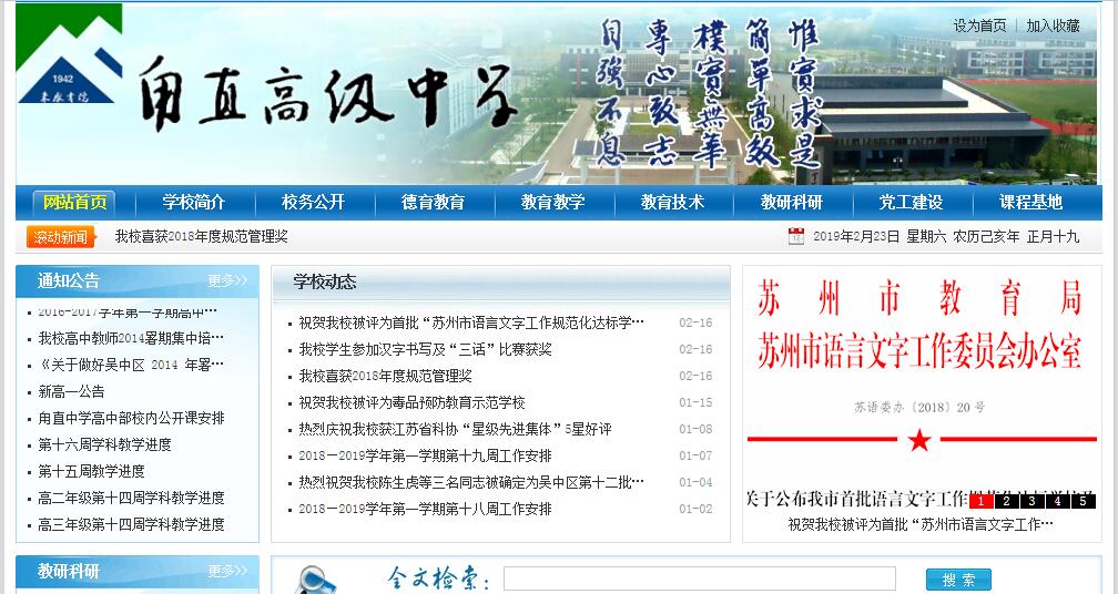 蘇州甪直中學(xué)創(chuàng)辦于1942年9月,初名“私立甪直初級(jí)中學(xué)”。1945年更名為“私立魯望中學(xué)”。1956年8月改為公立,易名為“吳縣甪直初級(jí)中學(xué)”。1958年9月增設(shè)高中部成為完全中學(xué),更名為“吳縣甪直中學(xué)”,并逐年增添校舍設(shè)備。1998年向南擴(kuò)建4幢教學(xué)樓和運(yùn)動(dòng)場并成為新的主要教學(xué)區(qū),加之北區(qū)向東征地30畝,占地面積增加到160畝,建筑面積32484平米;2000年4月創(chuàng)建為江蘇省重點(diǎn)中學(xué),2004年3月轉(zhuǎn)為江蘇省三星級(jí)高中,榮獲省、市、區(qū)榮譽(yù)和稱號(hào)200余項(xiàng)。2002年新建初中部的“魯望樓”,2003年9月實(shí)施一校二部管理模式,初中部、高中部分別居于河之北南,時(shí)有班級(jí)66個(gè),學(xué)生3500余名,全校有專任教師237名。2010年9月開始,根據(jù)新的形勢(shì)和社會(huì)的期待,新一屆學(xué)校班子成員,反復(fù)推敲學(xué)校的規(guī)劃和發(fā)展,仔細(xì)研究學(xué)校的優(yōu)勢(shì)和特色,積極籌劃易地新建高中并實(shí)施初高中的分離。方案形成后,向省、市、區(qū)、鎮(zhèn)各級(jí)部門努力爭取,通過歷屆校友的積極呼吁,2011年初該方案通過鎮(zhèn)人代會(huì)正式成為用直鎮(zhèn)實(shí)事工程,2012年初納入?yún)^(qū)實(shí)事工程,并正式啟動(dòng)各項(xiàng)前期工作。新建高中占地約150畝,建筑面積約50000平米,總投資約2.4億元(不含土地);初中遷入眠牛浸洪南并進(jìn)行擴(kuò)建和改建體育館、食堂、報(bào)告廳、塑膠運(yùn)動(dòng)場等,新建面積約6500平米,投資約4500萬元。新建高中經(jīng)過了2年的反復(fù)尋址論證、規(guī)劃設(shè)計(jì)等工作,于2012年9月在張林公園旁正式開工,同年11月,初中改建和擴(kuò)建也正式開工。2012年11月25日鎮(zhèn)政府隆重舉辦了“角直中學(xué)建校70周年”慶典活動(dòng),取得了園滿成功。2014年8月,新建的高中正式投入使用,高中從原址全部遷入新校開學(xué)。高中正式易名為“蘇州市吳中區(qū)甪直高級(jí)中學(xué)”,簡稱“角直高級(jí)中學(xué)”或“甪直中學(xué)”,正對(duì)校門的新建道路因直通學(xué)校主樓“未厭”樓而被命名為未厭路。新設(shè)立的初中命名為“蘇州市吳中區(qū)甪直甫里中學(xué)”,二所學(xué)校實(shí)現(xiàn)了完全分離并正式運(yùn)行。甪直高級(jí)中學(xué),現(xiàn)有教師109人,有一流的師資,省、市、區(qū)名師及學(xué)科(學(xué)術(shù))帶頭人26人,高級(jí)職稱教師41人,碩士研究生29人;區(qū)級(jí)以上骨干教師74人;有一流的教育質(zhì)量一綜合考試、學(xué)業(yè)水平測(cè)試合格率在99W0以上,高考升學(xué)率在98%以上,本科達(dá)線率在50%以上,其中“魯望班”本二率在76%以上;在蘇州市“省三星級(jí)高中”中均名列前茅。學(xué)校被評(píng)為江蘇省基礎(chǔ)教育課程改革先進(jìn)集體、江蘇省一級(jí)圖書館、江蘇省普通高中新課程實(shí)施樣一本學(xué)校、江蘇省科技教育先進(jìn)學(xué)校、江蘇省科技教育特色學(xué)校、江蘇省平安學(xué)校等一系列榮譽(yù)。新成立的甪直高級(jí)中學(xué),秉承甪直中學(xué)的優(yōu)良傳統(tǒng),循著一代師表葉圣陶的“未厭”校訓(xùn),努力踐行葉圣陶先生“教學(xué)相長,德才并美”的教育念想,教書育人,立德樹人,凝成了具有豐富內(nèi)涵的“魯望精神”一“唯實(shí)求是,簡單高效,樸實(shí)無華,專心致志,自強(qiáng)不息”。緊緊依靠全體師生員工,優(yōu)化管理模式,發(fā)揚(yáng)管理民主,強(qiáng)化工作效益,各方面均取得突破性的成績,減得了社會(huì)各界的廣泛贊譽(yù)。歷史的腳步清晰凝重,文明的傳承綿延不息,七十余年來,甪中人用殷殷心血和豪邁氣概譜寫了育人的長卷,桃李爭榮,人才輩出;五湖四海、大江南北、長城內(nèi)外到處都有甪中學(xué)子學(xué)習(xí)、生活、工作的身影,他們以“嚴(yán)、勤、鉆、恒”作風(fēng),用勤勞的雙手和聰明才智,建設(shè)祖國家園,推進(jìn)社會(huì)進(jìn)步,共創(chuàng)人類文明。今日的甪直高級(jí)中學(xué)已經(jīng)唱響了自己的口號(hào):“突破慣性束縛,提高教育質(zhì)量;抓住歷史機(jī)遇,提升辦學(xué)品位;重塑自我形象,更展魯望雄風(fēng);丟掉思維定勢(shì),爭創(chuàng)江蘇名?!薄N覀兌嗝丛竿?,我們的學(xué)校是一棵不老松,在各級(jí)領(lǐng)導(dǎo)、各界友人和全校師生員工的共同培育下,枝繁葉茂,高可擎天!我們多么愿望,我們的教師是一株株長青藤,綠意盎然,生機(jī)勃勃,灑下濃蔭,蔭庇一地春草!我們多么愿望,我們的學(xué)生和校友是一棵棵永不枯萎的春草,沐著春光,汲著甘露,展示出最強(qiáng)大、最旺盛的生命力!讓我們,攜手并肩,團(tuán)結(jié)向前,創(chuàng)造奇跡,書寫傳奇!