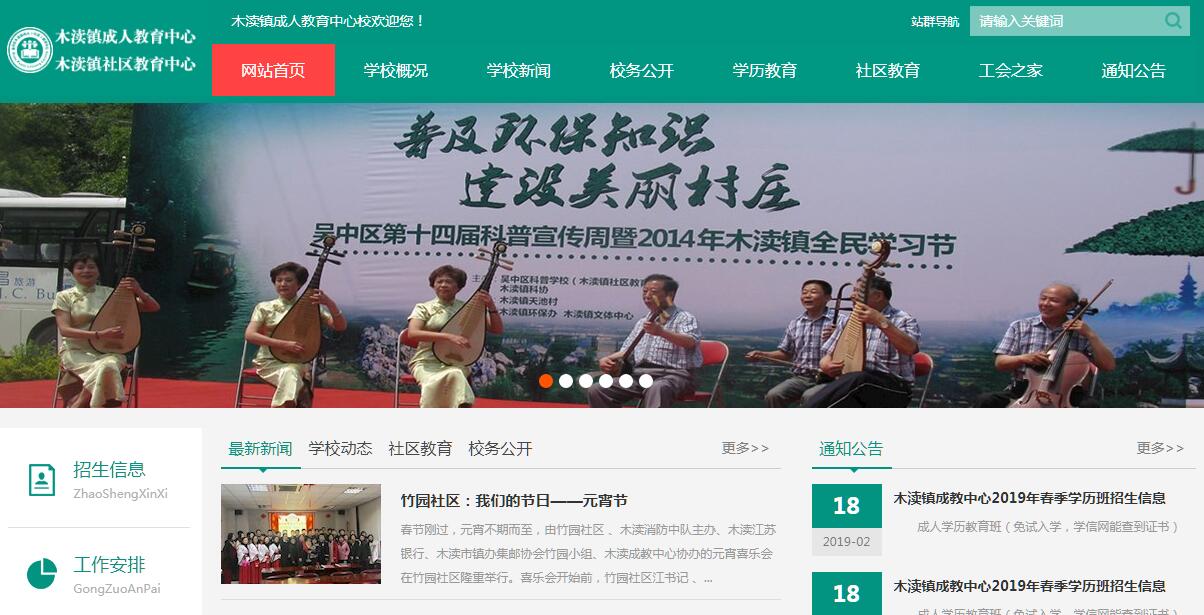 木瀆鎮(zhèn)成人教育中心校(木瀆鎮(zhèn)社區(qū)教育中心)位于風(fēng)景秀麗的太湖之濱,靈巖山腳下,緊靠蘇州市古城區(qū)。始建于1985年,1994年移址重建,占地面積10.23畝,建筑面積2546平方米。學(xué)校單獨(dú)列編,經(jīng)費(fèi)渠道暢通,領(lǐng)導(dǎo)班子齊全。學(xué)校擁有一支教學(xué)業(yè)績顯著的社區(qū)教育專職教師師資隊(duì)伍。學(xué)校根據(jù)黨中央“構(gòu)建終身教育體系,形成學(xué)習(xí)型社區(qū)”的目標(biāo),提出了“立足社區(qū)、面向社區(qū)、依靠社區(qū)、服務(wù)社區(qū)”的辦學(xué)理念,創(chuàng)設(shè)了“人人皆學(xué)、處處可學(xué)”的具有木瀆特色的“四級(jí)網(wǎng)絡(luò)”社區(qū)教育模式。多年來,學(xué)校著力推動(dòng)“學(xué)習(xí)型木瀆”建設(shè),精心打造了“萬名市民讀書月”、“數(shù)字化學(xué)習(xí)社區(qū)建設(shè)”、“青少年校外教育”、“全民學(xué)習(xí)節(jié)”、“萬家學(xué)法”、“成人基本文化教育”等六項(xiàng)蘇州市社區(qū)教育精品實(shí)驗(yàn)項(xiàng)目,成績斐然。學(xué)校先后獲得“全國農(nóng)村成人教育先進(jìn)單位”、“全國社區(qū)教育示范鄉(xiāng)鎮(zhèn)”、“全國創(chuàng)建學(xué)習(xí)型示范街道(鄉(xiāng)鎮(zhèn))”等20多項(xiàng)省市以上的榮譽(yù)稱號(hào)。學(xué)校構(gòu)建了比較完善的全民終身學(xué)習(xí)體系,已成為木瀆鎮(zhèn)終身教育的基地、全民學(xué)習(xí)的樂園?!豆饷魅?qǐng)?bào)》、《中國教育報(bào)》先后報(bào)道了木瀆鎮(zhèn)社區(qū)教育和學(xué)習(xí)型鄉(xiāng)鎮(zhèn)建設(shè)的成果,學(xué)校受到聯(lián)合國教科文組織駐華代表和中國成人教育協(xié)會(huì)考察、調(diào)研專家組的高度評(píng)價(jià)。2014年7月,學(xué)校被列入聯(lián)合國教科文組織“農(nóng)村社區(qū)學(xué)習(xí)中心(CLC)能力建設(shè)”新項(xiàng)目點(diǎn)。