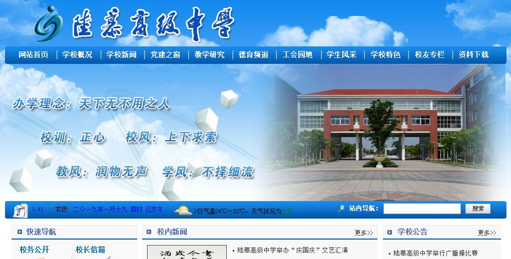 陸慕高級(jí)中學(xué)創(chuàng)辦于1956年。在五十年的辦學(xué)過程中,陸慕高級(jí)中學(xué)積淀了優(yōu)良的辦學(xué)傳統(tǒng),形成了令人矚目的辦學(xué)優(yōu)勢(shì)。1999年,學(xué)校被確認(rèn)為江蘇省重點(diǎn)中學(xué),2003年,成功地完成了省三星級(jí)高中轉(zhuǎn)星工作,2006年12月,被省教育廳確認(rèn)為省四星級(jí)高中。目前,學(xué)校的占地面積從2000年的78畝擴(kuò)大到200畝,生均校園面積為58.99平方米,校舍建筑面積為53000平方米,生均校舍建筑面積為23.45平方米,學(xué)生宿舍建筑面積為11018平方米,寄宿生生均面積達(dá)7.87平方米。學(xué)?,F(xiàn)有教學(xué)班39個(gè),共有學(xué)生1832人,其中高一年級(jí)12班,高二年級(jí)13班,高三年級(jí)14班。全校在編教職員工214人,其中在職教師191人。在全校專任教師中,具有碩士研究生學(xué)歷11人(含研究生進(jìn)修),本科學(xué)歷173人;具有中高級(jí)職稱106人,特聘特級(jí)教師7人。撤市建區(qū)以來,學(xué)校在各級(jí)政府及區(qū)文教局的領(lǐng)導(dǎo)下,高標(biāo)規(guī)劃、高效創(chuàng)建、高位跨越,堅(jiān)持走農(nóng)村高中城市化成功之路,在辦學(xué)過程中取得了突破性、領(lǐng)先性的辦學(xué)成果,學(xué)校先后獲得下列榮譽(yù):江蘇省實(shí)施素質(zhì)教育先進(jìn)學(xué)校、江蘇省德育先進(jìn)學(xué)校、江蘇省青少年法制宣傳教育工作先進(jìn)集體、江蘇省青少年科技教育先進(jìn)學(xué)校、江蘇省先進(jìn)團(tuán)委、江蘇省貫徹落實(shí)體育衛(wèi)生兩個(gè)《條例》優(yōu)秀學(xué)校、江蘇省綠色學(xué)校、江蘇省陶行知研究會(huì)實(shí)驗(yàn)學(xué)校。新世紀(jì)的第一個(gè)春天,陸慕高中在相城區(qū)“大改革、大開發(fā)、大建設(shè)、大發(fā)展”的熱潮中,制定了五年發(fā)展規(guī)劃。2002年11月,相城區(qū)和元和鎮(zhèn)兩級(jí)黨政主要領(lǐng)導(dǎo)多次親臨學(xué)?,F(xiàn)場(chǎng)辦公,對(duì)陸慕高中的發(fā)展作出了大手筆規(guī)劃。2002年下半年至2004年,區(qū)鎮(zhèn)兩級(jí)政府投入學(xué)校建設(shè)資金達(dá)1.2億多元(不含征地費(fèi)、民房拆遷費(fèi)),完成了7大基建工程的建設(shè):①建筑面積達(dá)12000平方米、擁有3200座位,且能承辦單項(xiàng)國際性比賽的體藝館;②建筑面積達(dá)11000平方米,內(nèi)含30只標(biāo)準(zhǔn)教室、微機(jī)中心、行政辦公室、大小會(huì)議室、學(xué)術(shù)報(bào)告廳等的教育綜合樓;③建筑面積達(dá)7000多平方米,能容納3000人同時(shí)用餐的大餐廳;④建筑面積達(dá)5000平方米的學(xué)生公寓樓;⑤具有400米8道塑膠跑道、2500座位體育大看臺(tái)的田徑運(yùn)動(dòng)場(chǎng);⑥水陸面積達(dá)4800平方米,筑有荷花池塘、曲橋連廊、亭閣水榭、湖心綠洲的“濯清苑”;⑦建筑面積達(dá)1900平方米的圖書館。目前,學(xué)校擁有物理實(shí)驗(yàn)室5個(gè),化學(xué)實(shí)驗(yàn)室4個(gè),生物實(shí)驗(yàn)室3個(gè),所有的實(shí)驗(yàn)室都配有標(biāo)準(zhǔn)又足夠的準(zhǔn)備室。學(xué)校的圖書館藏書總量達(dá)102180多冊(cè),學(xué)生閱覽室面積達(dá)1200平方米(其中含2個(gè)電子閱覽室)。學(xué)校還擁有微機(jī)中心控制室、課件制作室各1個(gè),電子閱覽室2個(gè),擁有大中型多媒體教室4個(gè),網(wǎng)絡(luò)教室5個(gè)。學(xué)校所有的教室都配置了51吋高清晰背投彩電與教學(xué)實(shí)物展示平臺(tái),使每個(gè)教室都成為多媒體教室?,F(xiàn)有微機(jī)445臺(tái),人機(jī)比例達(dá)5:1?!靶PMüこ獭边_(dá)第三層次要求。學(xué)校目前擁有蘇州市學(xué)科帶頭人7名,蘇州市學(xué)術(shù)帶頭人2名,蘇州市知名教師1名,區(qū)級(jí)學(xué)科帶頭人13名,縣區(qū)級(jí)學(xué)術(shù)帶頭人17名,縣區(qū)級(jí)優(yōu)秀專業(yè)拔尖人才2名,區(qū)兼職教研員4名。近幾年來,憑借“天時(shí)、地利、人和”之優(yōu)勢(shì),學(xué)校成為省內(nèi)名牌師范大學(xué)畢業(yè)生的首選應(yīng)聘學(xué)校,近三年中,加盟陸慕高中的82位大學(xué)生中,黨員有32名,任學(xué)生會(huì)干部、班長(zhǎng)、團(tuán)支書等職務(wù)的占到75%。雄厚的師資力量,推動(dòng)了學(xué)校辦學(xué)質(zhì)量的提升與學(xué)校品牌特色的形成。2004年與2005年高考中,學(xué)校分別有275、293人進(jìn)入本科院校,2006年進(jìn)入本科院校的學(xué)生達(dá)310人。三年來,學(xué)校培養(yǎng)美術(shù)本???0人,音樂本專科11人,體育本???0多人。學(xué)?,F(xiàn)擁有數(shù)、理、化、生學(xué)科奧賽教練員4人。三年來,在學(xué)科與藝體競(jìng)賽中共獲獎(jiǎng)280多人次,其中獲國家獎(jiǎng)43人,獲省級(jí)獎(jiǎng)106人,獲蘇州市級(jí)獎(jiǎng)128人。2004年8月,在由中國物理學(xué)會(huì)、國家教育部物理學(xué)與天文學(xué)指導(dǎo)委員會(huì)舉辦的有全國大中院校參加的第五屆全國計(jì)算機(jī)多媒體與網(wǎng)絡(luò)物理教學(xué)大獎(jiǎng)賽中,學(xué)校有2位教師榮獲全國一等獎(jiǎng)。在教育科學(xué)研究上,學(xué)校三年中先后承擔(dān)了5個(gè)國家級(jí)、2個(gè)省級(jí)、6個(gè)蘇州市級(jí)立項(xiàng)課題研究,研究成果在全國與蘇州市級(jí)研討會(huì)作了交流。據(jù)初步統(tǒng)計(jì),近兩年來,教師