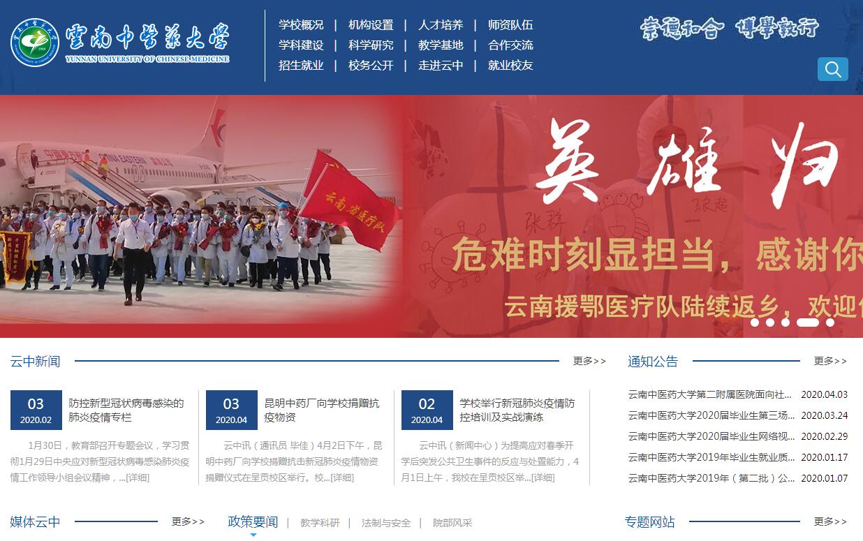 云南中醫(yī)藥大學(xué)成立于1960年,是全國第二批成立的高等中醫(yī)藥本科院校,1986年獲碩士學(xué)位授予權(quán),2007年獲教育部本科教學(xué)工作水平評(píng)估“優(yōu)秀”,2013年、2015年中醫(yī)學(xué)、中藥學(xué)專業(yè)先后通過教育部認(rèn)證,2016年成為云南省人民政府與國家中醫(yī)藥管理局共建高校,2017年通過教育部本科教學(xué)審核評(píng)估,2018年成為博士學(xué)位授予單位,更名為云南中醫(yī)藥大學(xué),成為國家中醫(yī)藥臨床研究基地。學(xué)校秉承“崇德和合,博學(xué)敦行”的校訓(xùn)精神,已發(fā)展成為以中醫(yī)藥為主體、民族醫(yī)藥為特色,以本科教育為基礎(chǔ),研究生教育規(guī)模不斷擴(kuò)大,對(duì)外教育呈現(xiàn)良好態(tài)勢(shì),醫(yī)、理、工、管多學(xué)科協(xié)調(diào)發(fā)展的綜合性中醫(yī)藥院校。截至2019年04月,學(xué)校有全日制學(xué)生11342人。其中,本科生9951人,碩士研究生1159人,學(xué)歷教育留學(xué)生232人。有11個(gè)二級(jí)學(xué)院、1個(gè)公共課教學(xué)部。有17個(gè)國家中醫(yī)藥管理局重點(diǎn)學(xué)科、14個(gè)省級(jí)重點(diǎn)學(xué)科,新增1個(gè)中醫(yī)學(xué)一級(jí)學(xué)科博士學(xué)位授權(quán)點(diǎn),有4個(gè)一級(jí)學(xué)科(涵蓋28個(gè)二級(jí)學(xué)科)碩士點(diǎn),4個(gè)專業(yè)碩士學(xué)位點(diǎn)。有27個(gè)本科專業(yè),其中,2個(gè)國家級(jí)特色專業(yè)、1個(gè)國家級(jí)綜合改革試點(diǎn)專業(yè),3個(gè)省級(jí)綜合改革試點(diǎn)專業(yè),5個(gè)省級(jí)特色專業(yè),2個(gè)云南八大重點(diǎn)產(chǎn)業(yè)引領(lǐng)品牌專業(yè),200余項(xiàng)省級(jí)及以上教學(xué)質(zhì)量工程項(xiàng)目。有實(shí)踐教學(xué)基地140余個(gè),其中,直屬附屬醫(yī)院2所,非直屬附屬醫(yī)院14所?,F(xiàn)有紙本藏書980596冊(cè),紙質(zhì)期刊384種,館藏線裝古籍圖書1.8萬冊(cè),電子資源總量61.78TB,擁有中外文數(shù)據(jù)庫51個(gè),電子圖書323萬冊(cè)(鏡像42萬冊(cè),遠(yuǎn)程使用103萬冊(cè)),是國家教育信息化試點(diǎn)單位。校本部有教職工741人,學(xué)歷、學(xué)緣、職稱結(jié)構(gòu)合理。有博士研究生導(dǎo)師17人,享受國務(wù)院政府特殊津貼專家7人,首屆全國名中醫(yī)1人,國家衛(wèi)計(jì)委突出貢獻(xiàn)中青年專家1人,全國中醫(yī)藥高校教學(xué)名師1人,省級(jí)教學(xué)名師8人;云南省千人計(jì)劃云嶺青年人才1人;云南省萬人計(jì)劃云嶺學(xué)者1人、名醫(yī)專項(xiàng)10人,產(chǎn)業(yè)技術(shù)領(lǐng)軍人才1人、文化名家1人、青年拔尖人才9人;云南省突出貢獻(xiàn)優(yōu)秀專業(yè)技術(shù)人才12人、教學(xué)名師9人;云南省國醫(yī)名師4人、名中醫(yī)36人、榮譽(yù)名中醫(yī)33人;享受云南省政府特殊津貼專家12人,云南省中青年學(xué)術(shù)和技術(shù)帶頭人12人、后備人才5人;技術(shù)創(chuàng)新人才2人,培養(yǎng)對(duì)象2人;首批云南省中醫(yī)藥領(lǐng)軍人才3人、中醫(yī)藥高層次人才及培養(yǎng)對(duì)象2人。聘請(qǐng)420余名國內(nèi)外知名教授和專家擔(dān)任碩士生導(dǎo)師、名譽(yù)校長、客座教授、名譽(yù)教授。59年來,幾代名醫(yī)名家傾囊相授,潛心育人,培養(yǎng)了6萬余名中醫(yī)藥專門人才,有的植根云嶺,造福桑梓,有的遠(yuǎn)涉重洋,光大中醫(yī),涌現(xiàn)出國家科技進(jìn)步一等獎(jiǎng)、何梁何利獎(jiǎng)獲得者朱兆云;旅法中醫(yī)專家、時(shí)空針灸創(chuàng)始人、法國榮譽(yù)軍團(tuán)騎士勛章獲得者朱勉生;軍中國醫(yī)名師寧亞功;中國中醫(yī)科學(xué)院首席研究員、廣安門醫(yī)院院長王階;全國民族團(tuán)結(jié)進(jìn)步先進(jìn)個(gè)人陳本善;中國人民大學(xué)教授、教育部高校思想政治理論課教師、2014年度影響力標(biāo)兵人物王向明等一大批享譽(yù)國內(nèi)外的杰出校友。學(xué)校聚焦民族醫(yī)藥、滇南醫(yī)藥、南藥研究三大科研集群,有省級(jí)重點(diǎn)實(shí)驗(yàn)室、工程技術(shù)研究中心、中醫(yī)藥臨床評(píng)價(jià)研究中心,工程實(shí)驗(yàn)室、公共科技服務(wù)平臺(tái)各1個(gè),省級(jí)創(chuàng)新團(tuán)隊(duì)2個(gè),有國家中醫(yī)藥管理局中醫(yī)藥科研三級(jí)實(shí)驗(yàn)室2個(gè),院士專家工作站9個(gè),院士工作站站點(diǎn)1個(gè),省級(jí)2011協(xié)同創(chuàng)新中心2個(gè),省級(jí)中醫(yī)臨床研究基地1個(gè),省哲學(xué)社會(huì)科學(xué)研究基地1個(gè),省技術(shù)轉(zhuǎn)移示范機(jī)構(gòu)1個(gè),省高校重點(diǎn)實(shí)驗(yàn)室和工程中心8個(gè),省高校科技創(chuàng)新團(tuán)隊(duì)5個(gè)。學(xué)校學(xué)報(bào)為中國科技核心期刊。推進(jìn)校政、校校、校地、校企合作,打造“保健品化妝品第三方檢測(cè)、臨床評(píng)價(jià)研究、健康產(chǎn)品研發(fā)、中醫(yī)藥知識(shí)產(chǎn)權(quán)戰(zhàn)略運(yùn)營中心”四大平臺(tái),彌補(bǔ)云南生物醫(yī)藥和大健康產(chǎn)業(yè)科研平臺(tái)短板。與省藥監(jiān)局共建云南省中醫(yī)藥產(chǎn)業(yè)發(fā)展研究院、與省科技廳共同設(shè)立“中醫(yī)藥聯(lián)合專項(xiàng)基金”,是云南省中醫(yī)藥政策研究中心,中國中醫(yī)科學(xué)院中醫(y