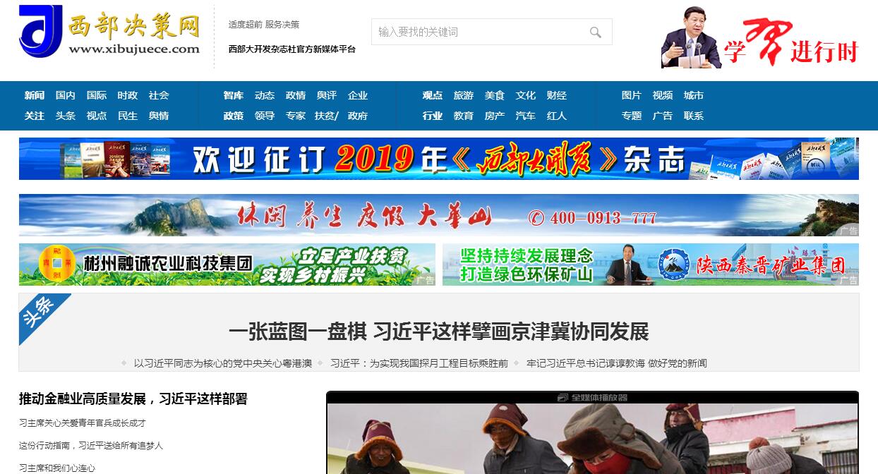 | 網(wǎng)站簡(jiǎn)介: 西部決策網(wǎng)由西部大開發(fā)雜志社主管主辦,網(wǎng)站以緊扣“適度超前、服務(wù)決策”的理念,牢記“世界看中國(guó)、中國(guó)看西部、西部看西部大開發(fā)”的宗旨,堅(jiān)持貫徹執(zhí)行以中國(guó)特色社會(huì)主義新時(shí)代的正確輿論導(dǎo)向,為人民服務(wù),為社會(huì)服務(wù),為助推西部大開發(fā)的偉大戰(zhàn)略服務(wù)。西部大開發(fā)雜志是2000年經(jīng)中宣部、國(guó)家新聞出版廣電總局批準(zhǔn),陜西省委省政府決策咨詢委員會(huì)主管主辦。 |