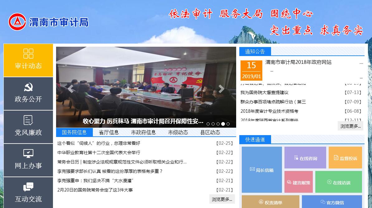 渭南市審計(jì)局主要職責(zé):(一)主管全市審計(jì)工作;負(fù)責(zé)對(duì)市級(jí)財(cái)政收支和法律法規(guī)規(guī)定屬于審計(jì)監(jiān)督范圍的財(cái)務(wù)收支的真實(shí)性、合法性和效益型進(jìn)行審計(jì)監(jiān)督,維護(hù)財(cái)政經(jīng)濟(jì)秩序,提高財(cái)政資金使用效益,促進(jìn)廉政建設(shè),保障國民經(jīng)濟(jì)和社會(huì)健康發(fā)展;對(duì)審計(jì)、專項(xiàng)審計(jì)調(diào)查和核查社會(huì)審計(jì)機(jī)構(gòu)相關(guān)審計(jì)報(bào)告的結(jié)果承擔(dān)責(zé)任,并負(fù)有督促被審計(jì)單位整改的責(zé)任。(二)根據(jù)市級(jí)立法權(quán)限,起草有關(guān)審計(jì)方面的法規(guī)性文件并組織實(shí)施;制定并組織實(shí)施審計(jì)工作發(fā)展規(guī)劃和專項(xiàng)領(lǐng)域?qū)徲?jì)工作規(guī)劃,制定并組織實(shí)施年度審計(jì)計(jì)劃;參與起草地方財(cái)政經(jīng)濟(jì)及其相關(guān)的規(guī)范性文件;對(duì)直接審計(jì)、調(diào)查和核查的事項(xiàng)依法進(jìn)行審計(jì)評(píng)價(jià),作出設(shè)計(jì)決定或提出審計(jì)建議。(三)向本級(jí)政府行政首長提出年度市級(jí)預(yù)算執(zhí)行和其他財(cái)政收支情況的審計(jì)結(jié)果報(bào)告;受市政府委托向市人大常委會(huì)提出市級(jí)預(yù)算執(zhí)行和其他財(cái)政收支情況的審計(jì)工作報(bào)告、審計(jì)發(fā)現(xiàn)問題的糾正和處理結(jié)果的報(bào)告;向市政府報(bào)告其他事項(xiàng)的審計(jì)和專項(xiàng)審計(jì)調(diào)查情況及結(jié)果;依法向社會(huì)公布審計(jì)結(jié)果;向市政府有關(guān)部門通報(bào)審計(jì)情況和審計(jì)結(jié)果。(四)直接審計(jì)下列事項(xiàng),出具審計(jì)報(bào)告,在法定職權(quán)范圍內(nèi)做出審計(jì)決定或向有關(guān)主管機(jī)關(guān)提出處理處罰的建議:1.市級(jí)預(yù)算執(zhí)行情況和其他財(cái)政收支,市級(jí)各部門(含直屬機(jī)構(gòu))預(yù)算的執(zhí)行情況、決算和其他財(cái)政收支。2.各縣(市、區(qū))人民政府預(yù)算的執(zhí)行情況、決算和其他財(cái)政收支。3.使用市級(jí)財(cái)政資金的事業(yè)單位和社會(huì)團(tuán)體的財(cái)務(wù)收支。4.市政府投資和以市政府投資為主的建設(shè)項(xiàng)目的預(yù)算執(zhí)行情況和決算。5.市屬國有企業(yè)和地方金融機(jī)構(gòu)、市政府規(guī)定的市屬國有資金占控股地位或主導(dǎo)地位的企業(yè)和金融機(jī)構(gòu)的資產(chǎn)、負(fù)債和損益。6.市政府部門、各縣(市、區(qū))人民政府管理和其他單位受市政府及其他部門委托管理的社會(huì)保障資金、社會(huì)捐贈(zèng)資金以及其他有關(guān)基金、資金的財(cái)務(wù)收支。7.省審計(jì)廳授權(quán)審計(jì)的中省駐渭企業(yè)單位的財(cái)務(wù)收支。8.國際組織和外國政府援助、貸款項(xiàng)目的財(cái)務(wù)收支。9.法律、行政法規(guī)規(guī)定應(yīng)當(dāng)由市級(jí)審計(jì)機(jī)關(guān)審計(jì)的其他事項(xiàng)。(五)按規(guī)定組織對(duì)市管領(lǐng)導(dǎo)干部及依法屬于市審計(jì)局審計(jì)監(jiān)督對(duì)象的其他單位主要負(fù)責(zé)人實(shí)施經(jīng)濟(jì)責(zé)任審計(jì)。(六)組織實(shí)施對(duì)國家財(cái)經(jīng)法律、法規(guī)、規(guī)章、政策和宏觀調(diào)控措施執(zhí)行情況、財(cái)政預(yù)算管理或國有資產(chǎn)管理使用等與國家財(cái)政收支有關(guān)的特定事項(xiàng)進(jìn)行專項(xiàng)審計(jì)調(diào)查。(七)依法檢查審計(jì)決定執(zhí)行情況,督促糾正和處理審計(jì)發(fā)現(xiàn)的問題,依法辦理被審計(jì)單位對(duì)審計(jì)決定提請(qǐng)行政復(fù)議、行政訴訟或市政府裁決中的有關(guān)事項(xiàng)。協(xié)助配合有關(guān)部門查處相關(guān)重大案件。(八)指導(dǎo)和監(jiān)督內(nèi)部審計(jì)工作,核查社會(huì)審計(jì)機(jī)構(gòu)對(duì)依法屬于審計(jì)監(jiān)督對(duì)象的單位出具的相關(guān)審計(jì)報(bào)告。(九)與各縣(市、區(qū))人民政府共同領(lǐng)導(dǎo)縣(市、區(qū))審計(jì)機(jī)關(guān)。依法領(lǐng)導(dǎo)和監(jiān)督各縣(市、區(qū))審計(jì)機(jī)關(guān)的業(yè)務(wù),組織縣(市、區(qū))審計(jì)機(jī)關(guān)實(shí)施特定項(xiàng)目的專項(xiàng)審計(jì)或?qū)徲?jì)調(diào)查,糾正或責(zé)成糾正各縣(市、區(qū))審計(jì)機(jī)關(guān)違反國家規(guī)定做出的審計(jì)決定。按照干部管理權(quán)限協(xié)管各縣(市、區(qū))審計(jì)機(jī)關(guān)負(fù)責(zé)人。(十)組織審計(jì)市駐外非經(jīng)營性機(jī)構(gòu)的財(cái)務(wù)收支。(十一)指導(dǎo)和推廣信息技術(shù)在審計(jì)領(lǐng)域的應(yīng)用,組織建設(shè)全市審計(jì)信息系統(tǒng),組織計(jì)算機(jī)審計(jì)和審計(jì)管理專業(yè)培訓(xùn)。(十二)管理維護(hù)機(jī)關(guān)設(shè)施、保障機(jī)關(guān)工作正常運(yùn)行。(十三)依據(jù)政府公布的部門“權(quán)力清單”和“責(zé)任清單”,依法行使行政職權(quán),承擔(dān)行使職責(zé)。(十四)承辦市政府交辦的其他事項(xiàng)。