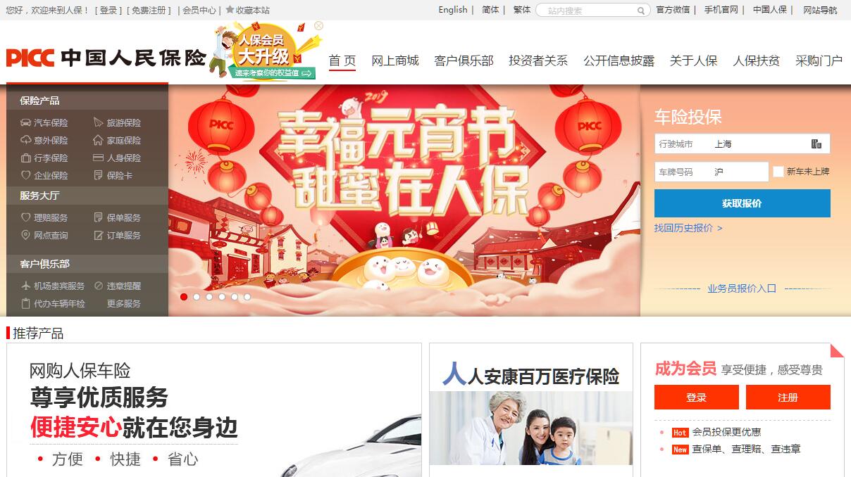中國人民財產(chǎn)保險股份有限公司(PICC P&C,以下簡稱“中國人保財險”)的前身是1949年10月20日成立的中國人民保險公司,是中國人民保險集團(tuán)股份有限公司(PICC Group,2018年《財富》“世界500 強”第117位)的核心成員和標(biāo)志性主業(yè),是國內(nèi)歷史悠久、業(yè)務(wù)規(guī)模大、綜合實力強的大型國有財產(chǎn)保險公司,保費規(guī)模居全球財險市場前列。公司于2003年11月6日在香港聯(lián)交所主板上市(股票代碼2328)。公司在服務(wù)民生和廣大客戶的實踐中,各項業(yè)務(wù)方面不斷取得突破,承保領(lǐng)域不斷拓寬,涉及社會生產(chǎn)和人民生活的各個領(lǐng)域。2017年,公司增量保費首次突破300億元,相當(dāng)于一年新增一家財險行業(yè)市場排名第五的主體,全國保費突破百億的分公司已增至15家。車險、非車險、政策性業(yè)務(wù)三箭齊發(fā)。2017 年,公司車險增量保費235.9 億元,車險增速超越市場。非車險保費規(guī)模歷史性突破千億大關(guān)。政策性業(yè)務(wù)和新興商非業(yè)務(wù)增長迅猛,農(nóng)業(yè)保險、社會醫(yī)療保險保費規(guī)模雙雙突破200 億元,創(chuàng)新保險保費突破百億元,責(zé)任保險、意外健康保險持續(xù)發(fā)力,非車險發(fā)展新動能不斷孕育壯大。線上線下銷售渠道雙輪驅(qū)動,多渠道發(fā)展格局孕育形成。2017 年,公司車商渠道保費突破千億元,與47 家汽車廠商、28 家汽車經(jīng)銷商集團(tuán)、10 個全國性品牌汽車維修連鎖企業(yè)開展了總對總合作;專業(yè)代理渠道保費突破640 億元,與1368家專業(yè)代理機構(gòu)(法人)建立合作關(guān)系;續(xù)保團(tuán)隊保費突破200 億元;“人保V 盟”平臺全面上線,多渠道發(fā)展格局已經(jīng)形成。我們是新中國保險業(yè)發(fā)展的培育者與親歷者,是大型國有保險骨干企業(yè),充分發(fā)揮經(jīng)濟(jì)補償、資金融通和社會管理職能,積極維護(hù)社會穩(wěn)定、促進(jìn)經(jīng)濟(jì)運行、保障民生改善、完善社會治理,有力彰顯了國有保險企業(yè)在服務(wù)經(jīng)濟(jì)社會發(fā)展大局中的責(zé)任擔(dān)當(dāng)和主渠道作用。我們不忘初心,牢記使命,用誠信、責(zé)任、專業(yè)、價值塑造了享譽國內(nèi)外的優(yōu)勢品牌。公司相繼成為2008年北京奧運會、2010年上海世博會、2010年廣州亞運會、2016年G20杭州峰會、2017年北京“一帶一路”國際合作高峰論壇等重要賽事、重大活動的保險合作伙伴。我們擁有高素質(zhì)的管理團(tuán)隊和遍及財險核心業(yè)務(wù)領(lǐng)域的專業(yè)技術(shù)人才,打造了一支了解國情、經(jīng)驗豐富、能夠在保險各領(lǐng)域為客戶提供高品質(zhì)和多樣化保險服務(wù)的高素質(zhì)人才隊伍。我們開通了95518全國服務(wù)專線、4001234567電話銷售專線、www.epicc.com.cn 官網(wǎng)直銷平臺、移動互聯(lián)平臺和“中國人保”APP及微信公眾平臺,隨時隨地為客戶提供包括承保、理賠在內(nèi)的一站式在線服務(wù);在財險行業(yè)首推直升機救援,提供地空一體的全天候風(fēng)險保障服務(wù)。我們擁有遍及全國城鄉(xiāng)約1.4萬個分支機構(gòu)和服務(wù)網(wǎng)點,北起漠河、南至三沙,鄉(xiāng)鎮(zhèn)級服務(wù)網(wǎng)絡(luò)覆蓋超過98%,構(gòu)建了線上線下互動、城網(wǎng)農(nóng)網(wǎng)結(jié)合的立體化銷售服務(wù)網(wǎng)絡(luò)。我們擁有強大的產(chǎn)品體系、專業(yè)技術(shù),產(chǎn)品覆蓋國計民生、人民生活各個領(lǐng)域,滿足客戶多樣化、高品質(zhì)保險需求。開展 “天空地”一體化保險遙感技術(shù)應(yīng)用、城市內(nèi)澇風(fēng)險管理、地震遙感調(diào)查評估、移動化承保理賠等,具有專業(yè)化、現(xiàn)代化的風(fēng)險管理能力。公司深入學(xué)習(xí)貫徹黨的十九大精神,以習(xí)近平新時代中國特色社會主義思想為統(tǒng)領(lǐng),以創(chuàng)新、協(xié)調(diào)、綠色、開放、共享的新發(fā)展理念為指引,以升級保險供給為主線,以發(fā)展現(xiàn)代保險服務(wù)業(yè)為方向,堅持服務(wù)大局,堅持改革創(chuàng)新,堅持發(fā)展為先、效益至上、合規(guī)經(jīng)營,全面加強黨的建設(shè),全面落實國家、行業(yè)、集團(tuán)“十三五”規(guī)劃,全面推進(jìn)管理模式、經(jīng)營模式和商業(yè)模式創(chuàng)新升級,全面實施五大戰(zhàn)略,推進(jìn)九大轉(zhuǎn)型,加快質(zhì)量變革、效率變革、動力變革,推動公司向高質(zhì)量發(fā)展轉(zhuǎn)型。公司堅持以服務(wù)經(jīng)濟(jì)社會大局為己任,肩負(fù)起國有保險骨干企業(yè)的使命擔(dān)當(dāng),積極參與社會風(fēng)險管理和社會保障體系建設(shè),積極履行優(yōu)秀企業(yè)公民責(zé)任。
