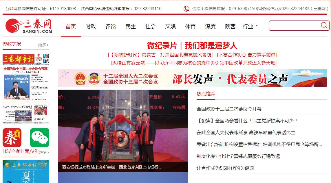 三秦網(wǎng)(www.sanqin.com)是中共陜西省委宣傳部直接領(lǐng)導(dǎo)下的陜西新聞門戶網(wǎng)站,同時也是陜西日報傳媒集團(tuán)紙媒在國際互聯(lián)網(wǎng)上的重要出口,由三秦都市報主管主辦。自1998年8月創(chuàng)辦以來,在省市領(lǐng)導(dǎo)、政府相關(guān)部門和廣大網(wǎng)友的大力支持和關(guān)心下,三秦網(wǎng)以全新的新聞視覺,逐漸形成自己獨特的新媒體風(fēng)格。三秦網(wǎng)是省內(nèi)外網(wǎng)民認(rèn)識陜西、了解陜西、關(guān)心陜西的主要窗口,在全國各地?fù)碛袕V泛的受眾和影響力,其總訪問量及媒體影響力已居全國省級新聞門戶網(wǎng)站前列,有較高知名度和影響力,已成為陜西省對外宣傳的新陣地、新窗口。三秦網(wǎng)與三秦都市報通過報網(wǎng)深度融合,多角度、全方位地介紹陜西社會經(jīng)濟(jì)發(fā)展的最新的權(quán)威性新聞、信息,引導(dǎo)陜西網(wǎng)絡(luò)新聞的輿論導(dǎo)向,同時積極參與陜西的政府、企業(yè)上網(wǎng)工程,全面開發(fā)網(wǎng)絡(luò)信息服務(wù)并拓展相關(guān)領(lǐng)域電子商務(wù),擴(kuò)大對網(wǎng)民的服務(wù)功能。三秦網(wǎng)下設(shè)地市頻道站群與行業(yè)頻道站群,資源共享,優(yōu)勢互補(bǔ),并針對性地設(shè)置新聞資訊、便民服務(wù)、民生政策等頻道;通過傳統(tǒng)互聯(lián)網(wǎng)、移動互聯(lián)網(wǎng)以及平面媒體深度融合,致力于打造陜西一流的全媒體平臺、最大規(guī)模的城市生活社區(qū)和無線城市門戶。