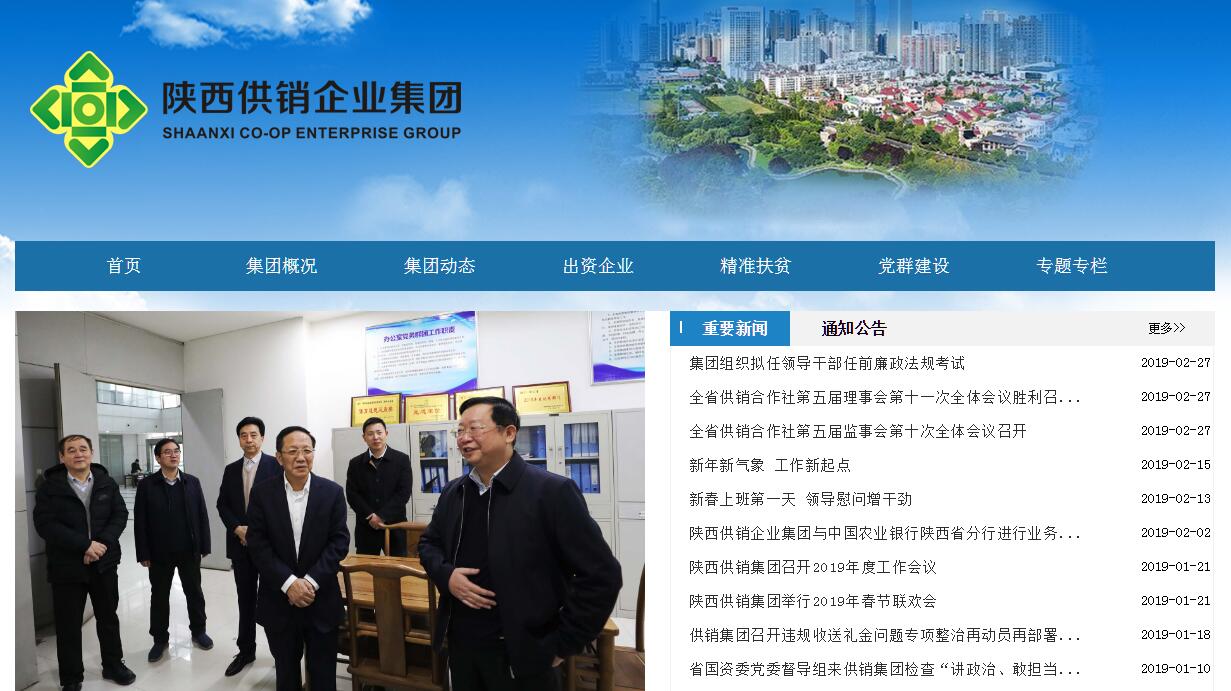 陜西供銷企業(yè)集團是經陜西省政府第15次常務會議批準,由陜西省供銷合作總社和陜西省國有資產監(jiān)督管理委員會共同出資組建,注冊資本6.6億元。其中陜西省供銷合作總社占股69.697%,陜西省國有資產監(jiān)督管理委員會占股30.303%。2013年10月完成注冊,2014年3月正式運行。供銷集團秉持“為農務農姓農”宗旨,以促進農業(yè)產業(yè)化經營為根本,以農村市場為主戰(zhàn)場,堅持聯(lián)合與合作理念和改革創(chuàng)新精神,著力發(fā)展混合所有制經濟,打造新農村現(xiàn)代流通網絡體系,推動一二三產業(yè)融合發(fā)展。2016年12月27日,中國供銷惠農服務有限公司入股陜西供銷企業(yè)集團。入股后,陜西省供銷合作總社占股66.67%,陜西省國有資產監(jiān)督管理委員會占股30.30%,中國供銷惠農服務有限公司占股3.03%。集團業(yè)務涉及農產品生產加工銷售、日用消費品連鎖超市、再生資源回收利用、農業(yè)生產資料供應、電子商務和供銷合作發(fā)展基金、融資擔保等多個領域。2015年10月,省政府決定由供銷集團組織實施全省現(xiàn)代農業(yè)產業(yè)精準扶貧試點。供銷集團遵循“六個注重”、“四個堅持”的原則,選擇了果蔬、茶葉、魔芋、花椒、食用菌等16類特色產業(yè),利用省財政切塊安排扶貧資金6億元,在20個試點縣(區(qū))選擇了35家龍頭企業(yè)和專業(yè)合作社(聯(lián)合社)開展現(xiàn)代農業(yè)產業(yè)精準扶貧試點工作。一年來,35家試點企業(yè)及合作社共建檔立卡18845戶貧困戶,涉及62237人。貧困戶通過流轉土地、在試點企業(yè)務工、分紅等多種方式,增收效果明顯。所創(chuàng)新的“政府(扶貧辦)+供銷社(供銷集團)+金融(保險)+企業(yè)(合作社)+農戶(貧困戶)”的模式成為一種產業(yè)扶貧新模式,得到國務院扶貧開發(fā)領導小組“全國脫貧攻堅創(chuàng)新獎”的嘉獎。2016年,隨著復制推廣工作的推進,目前累計參與的縣區(qū)已達25個。截至2016年底,通過股權、業(yè)務和品牌合作,陜西供銷企業(yè)集團已成為擁有72家全資及參股子公司、總資產達65.7億元的農產品一二三產業(yè)融合的企業(yè)集團公司。公司母子組織架構體系和現(xiàn)代企業(yè)運行體制已基本形成。2016年全年匯總實現(xiàn)銷售收入23.9億元,匯總利潤9641.1萬元。