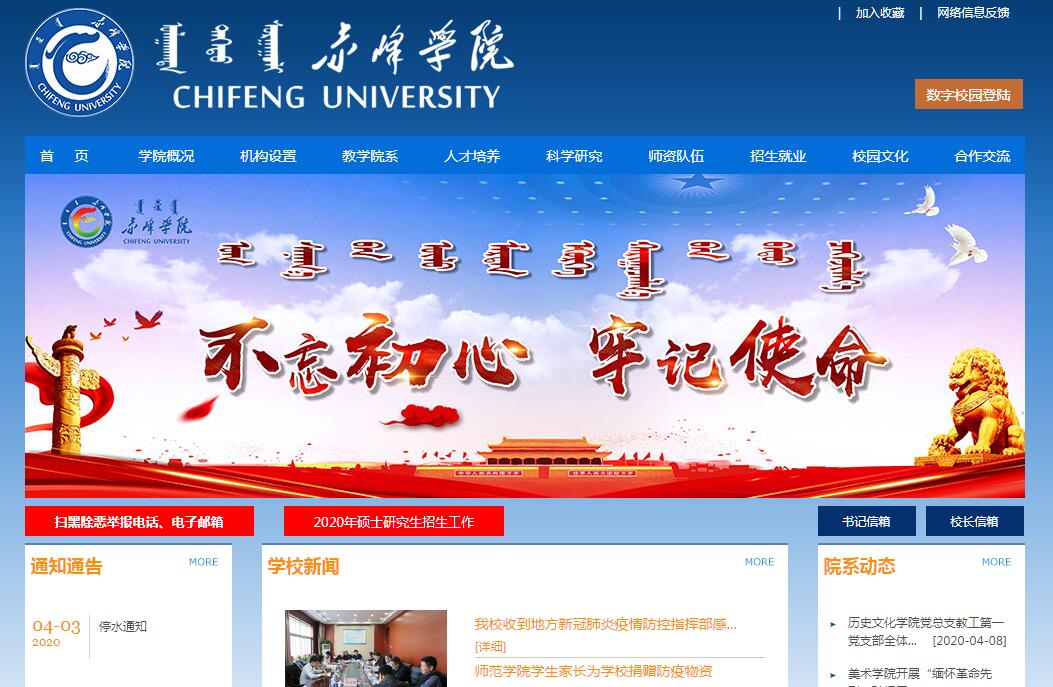 赤峰學(xué)院是2003年經(jīng)國家教育部批準(zhǔn),由具有60多年辦學(xué)歷史、在社會上享有良好聲譽(yù)的赤峰民族師范高等??茖W(xué)校與赤峰教育學(xué)院、內(nèi)蒙古廣播電視大學(xué)赤峰分校、赤峰衛(wèi)生學(xué)校、內(nèi)蒙古幼兒師范學(xué)校合并組建的一所多科性本科普通高等學(xué)校。2008年赤峰藝術(shù)旅游學(xué)校并入赤峰學(xué)院。學(xué)校位于聞名遐邇的“紅山文化”發(fā)祥地——內(nèi)蒙古赤峰市?!笆濉币詠?,學(xué)校堅(jiān)持走融入赤峰、服務(wù)地方、突出特色,轉(zhuǎn)型發(fā)展的道路,學(xué)校面貌日新月異。2011年,作為國家新一輪本科教學(xué)工作合格評估的首家被評高校,學(xué)校順利通過評估,并入選全國高校以評促建先進(jìn)典型案例庫。同年,學(xué)校獲批“服務(wù)國家特殊需求人才培養(yǎng)項(xiàng)目”——學(xué)士學(xué)位授予單位開展培養(yǎng)碩士專業(yè)學(xué)位研究生試點(diǎn)工作建設(shè)單位,填補(bǔ)了自治區(qū)文博碩士專業(yè)學(xué)位研究生教育的空白。2013年,學(xué)校實(shí)施了國家留學(xué)基金委的ISEC項(xiàng)目,引入國際先進(jìn)教學(xué)理念和模式,有力促進(jìn)了學(xué)校的教學(xué)改革。2015年,學(xué)校以“校企合作、協(xié)同育人”為突破口,實(shí)現(xiàn)了個(gè)別專業(yè)的一本招生。2016年,學(xué)校憑借在率先轉(zhuǎn)型發(fā)展方面取得的明顯成效,被確立為全區(qū)轉(zhuǎn)型發(fā)展試點(diǎn)院校,同時(shí)被列入全國百所“產(chǎn)教融合發(fā)展工程建設(shè)規(guī)劃項(xiàng)目應(yīng)用型本科院?!?。2018年5月,經(jīng)國務(wù)院學(xué)位委員會批準(zhǔn),學(xué)校成為新增碩士學(xué)位授予單位,同時(shí)獲批了教育碩士、文物與博物館碩士專業(yè)學(xué)位授權(quán)點(diǎn)。學(xué)校占地面積780畝,規(guī)劃占地面積1800畝,建筑面積23.38萬平方米,固定資產(chǎn)總值6.8億元。擁有各類專業(yè)實(shí)驗(yàn)室、專業(yè)實(shí)訓(xùn)室、計(jì)算機(jī)中心、數(shù)字化校園網(wǎng)、體育館、多功能廳、博物館、大劇場等現(xiàn)代化教學(xué)、科研設(shè)施。學(xué)校圖書館館藏紙質(zhì)圖書120.8萬冊,電子圖書61.6萬種,中外文數(shù)據(jù)庫33個(gè)。學(xué)校教育教學(xué)管理體系完善,內(nèi)設(shè)機(jī)構(gòu)45個(gè),其中黨政后勤管理機(jī)構(gòu)16個(gè),教輔機(jī)構(gòu)4個(gè),教學(xué)機(jī)構(gòu)25個(gè)。教學(xué)機(jī)構(gòu)有蒙古文史學(xué)院、歷史文化學(xué)院、文學(xué)院、經(jīng)濟(jì)與管理學(xué)院、師范學(xué)院、外國語學(xué)院、數(shù)學(xué)與統(tǒng)計(jì)學(xué)院、資源與環(huán)境科學(xué)學(xué)院、物理與電子信息工程學(xué)院、計(jì)算機(jī)與信息工程學(xué)院、化學(xué)化工學(xué)院、生命科學(xué)學(xué)院、醫(yī)學(xué)院、口腔醫(yī)學(xué)院、臨床醫(yī)學(xué)院、護(hù)理學(xué)院、研究生院、建筑與機(jī)械工程學(xué)院、音樂學(xué)院、美術(shù)學(xué)院、體育學(xué)院、繼續(xù)教育學(xué)院、國際教育學(xué)院、馬克思主義學(xué)院、實(shí)踐教學(xué)管理學(xué)院。學(xué)校專業(yè)設(shè)置涵蓋文學(xué)、史學(xué)、法學(xué)、教育學(xué)、理學(xué)、工學(xué)、農(nóng)學(xué)、醫(yī)學(xué)、管理學(xué)、藝術(shù)學(xué)10個(gè)學(xué)科門類,開設(shè)51個(gè)本科專業(yè)和部分高職高專專業(yè),擁有“文物與博物館”專業(yè)碩士學(xué)位點(diǎn),部分專業(yè)采用蒙漢兩種語言授課。現(xiàn)有全日制在校生12883人,其中本科生11199人,??粕?475人,碩士研究生64人。學(xué)校還來自塞內(nèi)加爾、加納、蘇丹、埃塞俄比亞、烏克蘭、肯尼亞、美國、納米比亞、盧旺達(dá)、坦桑尼亞、贊比亞、巴基斯坦等12個(gè)國家的留學(xué)生188人。學(xué)校設(shè)有附屬醫(yī)院、第二附屬醫(yī)院、附屬中學(xué)三個(gè)附屬單位。學(xué)校師資力量雄厚,現(xiàn)有專任教師1038人,其中教授143人,副教授385人,碩士研究生導(dǎo)師18人,具有博士學(xué)位教師127人、碩士學(xué)位教師519人,碩士以上學(xué)位教師占專任教師總數(shù)的61.5%。享受國務(wù)院政府特殊津貼教師4人,自治區(qū)“有突出貢獻(xiàn)中青年專家”3人,自治區(qū)“321”人才工程第一、二層次人選7人,“111”人才工程人選1人,中國工藝美術(shù)大師1人,自治區(qū)“草原英才”工程個(gè)人4人,自治區(qū)“草原英才”工程團(tuán)隊(duì)2個(gè),自治區(qū)級教學(xué)團(tuán)隊(duì)5個(gè),自治區(qū)教學(xué)名師9人,自治區(qū)級教壇新秀5人,赤峰市“十百千學(xué)術(shù)技術(shù)帶頭人”4人。學(xué)校堅(jiān)持區(qū)域性大學(xué)的辦學(xué)理念和定位,大力培育具有區(qū)域和民族特色的學(xué)科和專業(yè),形成了結(jié)構(gòu)合理、特色鮮明的學(xué)科和專業(yè)體系,其中專門史是自治區(qū)重點(diǎn)培育學(xué)科,歷史學(xué)專業(yè)為國家級特色專業(yè)建設(shè)點(diǎn),計(jì)算機(jī)科學(xué)與技術(shù)、數(shù)學(xué)教育、生物科學(xué)、蒙古語言文學(xué)、物理學(xué)、護(hù)理等9個(gè)專業(yè)是自治區(qū)級品牌專業(yè),蒙古語修辭學(xué)、口腔修復(fù)學(xué)、電磁學(x