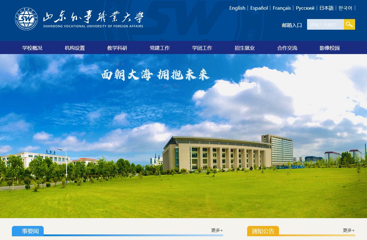 山東外事職業(yè)大學(xué)是經(jīng)國(guó)家教育部批準(zhǔn)的全日制本科高校。學(xué)校創(chuàng)建于1999年。2004年7月,經(jīng)山東省人民政府批準(zhǔn),國(guó)家教育部備案,改建為山東外事翻譯職業(yè)學(xué)院,成為全日制普通高等職業(yè)院校。2018年12月,經(jīng)教育部批準(zhǔn)升格為本科院校。2019年5月更名為山東外事職業(yè)大學(xué)。原全國(guó)人大外事委員會(huì)主任、前外交部長(zhǎng)李肇星為我校名譽(yù)校長(zhǎng)。建校以來,學(xué)校秉承“中西合璧、知行合一”的校訓(xùn),開拓進(jìn)取,砥礪前行。經(jīng)過多年的不懈努力,學(xué)校的教學(xué)、科研和各項(xiàng)事業(yè)都取得了長(zhǎng)足的發(fā)展,辦學(xué)水平和社會(huì)聲譽(yù)不斷提高。目前,學(xué)校設(shè)威海和濟(jì)南兩個(gè)校區(qū),占地面積1600余畝,校舍建筑面積35萬余平方米。設(shè)有外國(guó)語學(xué)院、管理學(xué)院、國(guó)際商學(xué)院、工程學(xué)院、信息與控制工程學(xué)院、藝術(shù)學(xué)院、護(hù)理學(xué)院、綜合學(xué)院、繼續(xù)教育學(xué)院、國(guó)際交流學(xué)院、STEM教育學(xué)院、基礎(chǔ)部等12個(gè)教學(xué)單位。開設(shè)56個(gè)本、專科專業(yè),在校生15000余人。形成了文學(xué)、經(jīng)濟(jì)學(xué)、管理學(xué)、工學(xué)、法學(xué)、教育學(xué)、藝術(shù)學(xué)等多學(xué)科協(xié)調(diào)發(fā)展的專業(yè)建設(shè)格局。學(xué)校注重加強(qiáng)教學(xué)基本條件建設(shè)?,F(xiàn)有4個(gè)實(shí)驗(yàn)實(shí)訓(xùn)教學(xué)中心(應(yīng)用外國(guó)語實(shí)訓(xùn)中心、國(guó)際商務(wù)實(shí)驗(yàn)實(shí)訓(xùn)中心、旅游管理實(shí)訓(xùn)中心、計(jì)算機(jī)實(shí)驗(yàn)教學(xué)中心),其中,應(yīng)用外國(guó)語實(shí)訓(xùn)中心為威海市級(jí)示范實(shí)訓(xùn)中心,電子商務(wù)與技術(shù)研發(fā)中心為省級(jí)工程技術(shù)中心。114個(gè)校內(nèi)實(shí)驗(yàn)實(shí)訓(xùn)室,97個(gè)校外實(shí)習(xí)實(shí)訓(xùn)基地,140個(gè)多媒體、E化互動(dòng)教室。同聲傳譯實(shí)驗(yàn)教學(xué)中心可同時(shí)進(jìn)行7種語言的同聲傳譯,達(dá)到國(guó)內(nèi)領(lǐng)先水平。筆譯實(shí)訓(xùn)室配有國(guó)際先進(jìn)的翻譯服務(wù)軟件系統(tǒng),支持64種語言的雙向互譯,為實(shí)踐教學(xué)提供了良好的條件。數(shù)字化校園實(shí)現(xiàn)了全覆蓋一體化智能管理。電視播控中心能夠同時(shí)轉(zhuǎn)播11種外語節(jié)目。圖書館建筑面積27800平方米,館藏紙質(zhì)圖書130.58萬冊(cè),電子圖書7.5TB。閱覽空間達(dá)到6100平方米。建有完善的圖書資料自動(dòng)化管理系統(tǒng),具有豐富的網(wǎng)上資源。運(yùn)動(dòng)場(chǎng)館等體育設(shè)施完善。學(xué)生餐廳、學(xué)生公寓和留學(xué)生公寓等生活配套設(shè)施達(dá)到較高水平。學(xué)校大力加強(qiáng)師資隊(duì)伍建設(shè),不斷優(yōu)化師資隊(duì)伍結(jié)構(gòu)。現(xiàn)有教職工1000余人,其中專任教師860余人,專任教師隊(duì)伍中有教授、副教授和其他高級(jí)職稱的240余人,具有雙師型資格的教師400余人,有博士和碩士學(xué)位的教師近400人。省級(jí)優(yōu)秀教學(xué)團(tuán)隊(duì)5個(gè),有享受國(guó)務(wù)院特殊津貼專家4人,教育部專業(yè)教指委委員3人,全國(guó)和省級(jí)優(yōu)秀教師11人,還有一批相對(duì)穩(wěn)定的外籍教師駐校任教。學(xué)校堅(jiān)持以教學(xué)為中心,堅(jiān)持教學(xué)質(zhì)量一把手工程,積極構(gòu)建教學(xué)質(zhì)量診斷與改進(jìn)體系、技能型人才培養(yǎng)實(shí)踐教學(xué)體系和教學(xué)質(zhì)量工程建設(shè)體系?,F(xiàn)有省級(jí)特色、品牌專業(yè)(群)12個(gè),省級(jí)精品課程和精品資源共享課程12門,完成省部級(jí)教改課題10項(xiàng),獲得省級(jí)以上教學(xué)成果獎(jiǎng)4項(xiàng)。在2015年山東省高職院校人才培養(yǎng)工作評(píng)估中,7個(gè)一級(jí)指標(biāo)均為優(yōu)秀,以優(yōu)異的成績(jī)獲得通過。學(xué)校高度重視科研工作,始終堅(jiān)持“科研引領(lǐng)教學(xué)、支撐教學(xué)”,積極搭建各種學(xué)術(shù)平臺(tái)。中國(guó)先秦史學(xué)會(huì)孫子兵法研究院、山東省高等教育研究院、山東省高等教育管理科學(xué)研究會(huì)高等教育發(fā)展研究中心先后在我校落地。學(xué)校還建有外語翻譯研究中心、山東省電子商務(wù)與技術(shù)研發(fā)中心、東北亞研究所、國(guó)學(xué)研究所等學(xué)術(shù)機(jī)構(gòu)。近年來,我校科研發(fā)展初具規(guī)模,我校獲批國(guó)家級(jí)科研項(xiàng)目2項(xiàng),省部級(jí)科研項(xiàng)目25項(xiàng),市廳級(jí)科研項(xiàng)目67項(xiàng)。我校教師發(fā)表學(xué)術(shù)論文1105篇,出版學(xué)術(shù)專著63部,獲得實(shí)用新型專利授權(quán)33項(xiàng),獲得市、廳級(jí)及以上優(yōu)秀科研成果獎(jiǎng)53項(xiàng)。隨著我校對(duì)科研投入的不斷加大、科研理念不斷革新,教師的科研意識(shí)不斷增強(qiáng),科研氛圍日益濃厚,科技成果日趨顯著。學(xué)校利用自身的特點(diǎn)和優(yōu)勢(shì),積極開展校企合作和社會(huì)服務(wù)。設(shè)立了外語培訓(xùn)中心、譯林翻