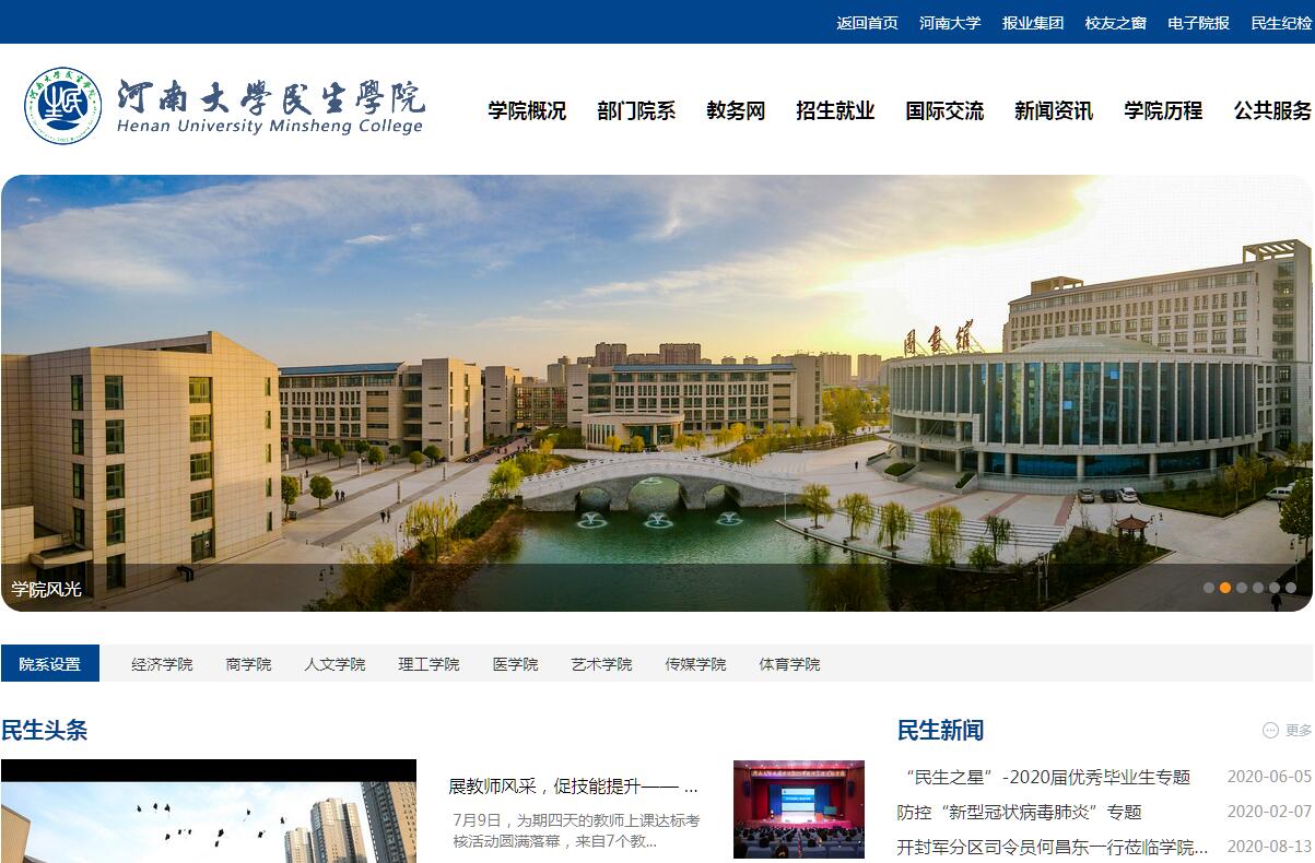 2003年,伴隨著中國高等教育改革發(fā)展的前進(jìn)步伐,經(jīng)國家教育部和河南省人民政府批準(zhǔn),在歷史文化名城、八朝古都開封,河南大學(xué)民生學(xué)院應(yīng)運(yùn)而生。學(xué)院新校區(qū)與 河南大學(xué)金明校區(qū)緊鄰,她扎根在河南大學(xué)這片有著百年文化積淀的沃土上,茁壯成長。2009年,河南大學(xué)與河南日報報業(yè)集團(tuán)簽訂合作協(xié)議,共同建設(shè)民生學(xué)院,掀開了學(xué)院發(fā)展的新篇章。這種強(qiáng)強(qiáng)聯(lián)合的辦學(xué)模式,得到了時任中央領(lǐng)導(dǎo)李長春與教育部領(lǐng)導(dǎo)的肯定與支持。建院以來,學(xué)院秉承河南大學(xué)“明德新民,止于至善”的校訓(xùn),逐漸形成了“團(tuán)結(jié)、勤奮、嚴(yán)謹(jǐn)、樸實(shí)”的優(yōu)良院風(fēng)。學(xué)院堅(jiān)持以人為本、建設(shè)一流獨(dú)立學(xué)院的辦學(xué)理念,立足于培養(yǎng)高素質(zhì)應(yīng)用型人才,注重改革創(chuàng)新,注重培養(yǎng)質(zhì)量,注重特色辦學(xué)。依托河南大學(xué)與河南日報報業(yè)集團(tuán)的大力支持,學(xué)院以市場和社會需求為導(dǎo)向,現(xiàn)設(shè)有8個二級分院、50個本科專業(yè),涵蓋文、理、工、經(jīng)、管、法、醫(yī)、教育、藝術(shù)等9大學(xué)科門類,省級重點(diǎn)學(xué)科1個,省級特色專業(yè)4個,省級品牌專業(yè)5個,省級專業(yè)綜合改革試點(diǎn)專業(yè)2個,在校生17000余人,已發(fā)展成以本科教育為主體、應(yīng)用型學(xué)科門類齊全、專業(yè)結(jié)構(gòu)合理、綜合實(shí)力較強(qiáng)、辦學(xué)特色鮮明的應(yīng)用教學(xué)型獨(dú)立學(xué)院。學(xué)院緊緊依托百年名校河南大學(xué)深厚的文化學(xué)術(shù)底蘊(yùn)、健全的學(xué)科專業(yè)、崇高的社會聲譽(yù)和雄厚的師資隊(duì)伍,始終把培養(yǎng)質(zhì)量作為學(xué)院的生命線,在著力打造高水平師資隊(duì)伍的同時,又選聘河南大學(xué)最好的教師為學(xué)生上課。目前,學(xué)院任課教師中,教授、副教授占57%,具有博士、碩士學(xué)位的占83.47%。學(xué)院不斷深化教學(xué)改革,加強(qiáng)實(shí)踐教學(xué)環(huán)節(jié),專業(yè)建設(shè)與地方經(jīng)濟(jì)“互動發(fā)展”,在河南日報社、河南安信建設(shè)集團(tuán)有限公司、上海立洋國際教育中心、格力電器鄭州有限公司、新開普電子股份有限公司等近百家知名企業(yè)建立有實(shí)習(xí)(實(shí)訓(xùn))基地。近年來,通過深入開展“師風(fēng)、學(xué)風(fēng)、考風(fēng)”建設(shè)活動,加強(qiáng)師德師風(fēng)建設(shè),學(xué)院教學(xué)質(zhì)量不斷提升。學(xué)院堅(jiān)持開放辦學(xué),先后與俄羅斯、美國、加拿大、英國、日本、澳大利亞等國家知名高校(科研機(jī)構(gòu))開展合作與校際交流,能夠互派交換生,互相承認(rèn)學(xué)分。學(xué)院提出了“考研一批、就業(yè)一批、出國一批”的學(xué)生畢業(yè)走向工作思路,大力推進(jìn)學(xué)生考研工程。學(xué)院畢業(yè)生考取研究生、公務(wù)員和選調(diào)生的比率逐年提高,目前已超過25%,相當(dāng)一部分學(xué)生考取了國內(nèi)外一流大學(xué),如北京大學(xué)、中科院、浙江大學(xué)、復(fù)旦大學(xué)、武漢大學(xué)、英國愛丁堡大學(xué)、倫敦藝術(shù)大學(xué)、墨爾本大學(xué)等國內(nèi)外名校研究生。2018年,學(xué)院學(xué)生考研上線人數(shù)達(dá)到800多人,近600人被錄取為碩士研究生。幾年來,學(xué)院先后共涌現(xiàn)“全研宿舍”20多個,被社會譽(yù)為“研究生的搖籃”。學(xué)院生源質(zhì)量年年在省內(nèi)同類院校中處于領(lǐng)先地位,2017年,在河南省本科二批、三批首次合并招生的背景下,學(xué)院文理科錄取分?jǐn)?shù)居于省內(nèi)同類院校前列,在省內(nèi)二本院校中綜合排名位居第17位。2018年,學(xué)院招生形勢依舊喜人,文科錄取分?jǐn)?shù)高出省二本線52分,理科高出省二本線46分。學(xué)院畢業(yè)生就業(yè)率位居河南省同類院校前列,畢業(yè)生既有一大批分布在省內(nèi)外企業(yè)一線崗位上的業(yè)務(wù)骨干,更有在黨政機(jī)關(guān)、科研院所、部隊(duì)、教育戰(zhàn)線上的佼佼者。他們奮斗在省內(nèi)外各行各業(yè),受到社會的普遍歡迎與好評,已嶄露頭角。學(xué)院努力營造濃厚的校園文化氛圍,促進(jìn)學(xué)生全面發(fā)展。學(xué)院校園文化建設(shè)始終堅(jiān)持以社會主義先進(jìn)文化為向?qū)?,積極開展精彩紛呈的校園活動。學(xué)院設(shè)立有“民生大講堂”,經(jīng)常邀請國內(nèi)外不同領(lǐng)域的學(xué)術(shù)大師和河南大學(xué)本部的名師來校進(jìn)行高水平的學(xué)術(shù)講座、專題報告,并與同學(xué)們面對面交流,極大地開闊了學(xué)生們的學(xué)術(shù)和社會視野。學(xué)院學(xué)生在省、全國大學(xué)生“藍(lán)橋杯”比賽、電子設(shè)計(jì)大賽、數(shù)學(xué)建模競賽中獲得了優(yōu)異成績。在第七屆、第八屆“藍(lán)橋杯”全國軟件和信息技術(shù)專業(yè)人才大賽中,學(xué)院在河南賽區(qū)共獲得一等獎1項(xiàng),二等12獎項(xiàng)、三等獎32項(xiàng)。在全國總決賽中,獲得國家級二等獎2項(xiàng),三等獎4項(xiàng)。在2016、2017年全國