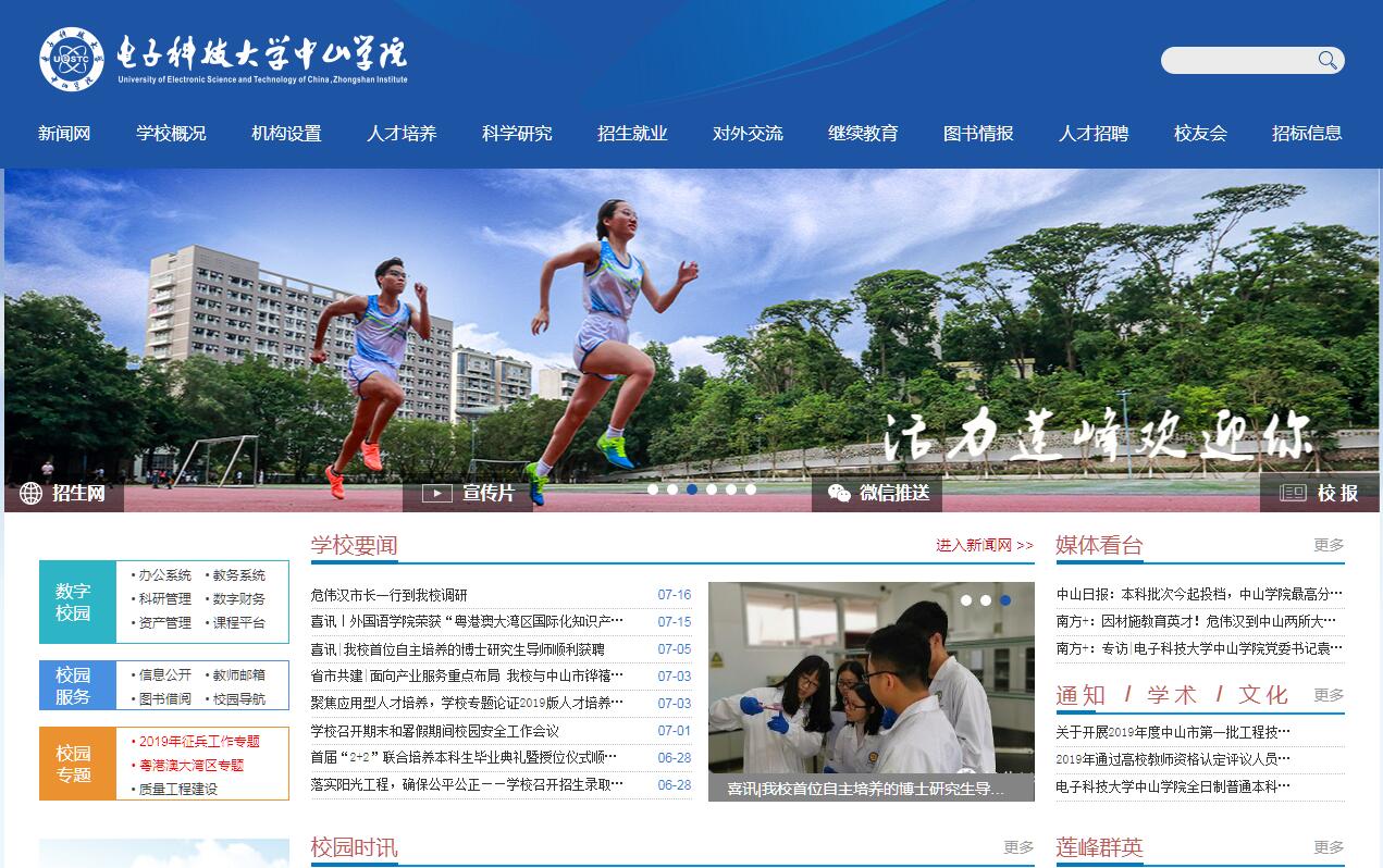 電子科技大學(xué)中山學(xué)院為全日制普通本科獨(dú)立學(xué)院,舉辦方為中山市人民政府,合作方為國家重點(diǎn)建設(shè)的“世界一流大學(xué)”A類高校電子科技大學(xué)。學(xué)校建校至今已有33年的辦學(xué)歷史。前身為1986年成立的中山大學(xué)孫文學(xué)院;1995年,學(xué)校更名為中山學(xué)院,實(shí)行省市共管,以市為主的管理體制;2002年至今,中山市人民政府與電子科技大學(xué)合作舉辦電子科技大學(xué)中山學(xué)院; 2016年,學(xué)校被遴選為“廣東省首批普通本科轉(zhuǎn)型試點(diǎn)高校”,同時(shí)也成為省內(nèi)同類院校中唯一一所“省市共建”高校;2018年,學(xué)校被遴選為省高等教育“沖一流、補(bǔ)短板、強(qiáng)特色”提升計(jì)劃建設(shè)高校。學(xué)校坐落于偉人孫中山先生的故鄉(xiāng)中山市城區(qū)中心地段的蓮峰山上,校園環(huán)境清幽,書香濃郁,被譽(yù)為“城市中央的花園大學(xué)”。 學(xué)校全面貫徹黨的教育方針,秉承“厚德、博學(xué)、求是、創(chuàng)新”的校訓(xùn),發(fā)揚(yáng)“敢為天下先”的精神,始終順應(yīng)國家高等教育改革與發(fā)展的方向。堅(jiān)持“質(zhì)量立校、人才強(qiáng)校、文化興?!比蠛诵膽?zhàn)略,堅(jiān)持“提高人才培養(yǎng)質(zhì)量”、“提高自主創(chuàng)新和服務(wù)地方能力”雙輪驅(qū)動(dòng),深入推進(jìn)落實(shí)“省市共建”、“應(yīng)用型轉(zhuǎn)型試點(diǎn)建設(shè)”和“沖補(bǔ)強(qiáng)”提升計(jì)劃各項(xiàng)任務(wù),以教育服務(wù)地方創(chuàng)新驅(qū)動(dòng)發(fā)展戰(zhàn)略為宗旨,集中優(yōu)勢(shì)力量和資源,選準(zhǔn)方向、抓好重點(diǎn),創(chuàng)新機(jī)制,加快將學(xué)校建成特色鮮明、優(yōu)勢(shì)突出的高水平應(yīng)用型大學(xué),為珠三角經(jīng)濟(jì)發(fā)展提供智力支持和人才保障。學(xué)校現(xiàn)有全日制本科在校學(xué)生人數(shù)1.9萬人,錄取分?jǐn)?shù)、投檔率位居同類院校前列。設(shè)有電子信息學(xué)院、機(jī)電工程學(xué)院、計(jì)算機(jī)學(xué)院、材料與食品學(xué)院、人文社會(huì)科學(xué)學(xué)院、管理學(xué)院、經(jīng)貿(mào)學(xué)院、外國語學(xué)院、藝術(shù)設(shè)計(jì)學(xué)院9個(gè)二級(jí)學(xué)院和思政部、體育部2個(gè)教學(xué)部。學(xué)?,F(xiàn)有40個(gè)本科專業(yè),逐步形成了以電子類專業(yè)為核心,工、管為主干,工、管、經(jīng)、理、文、法、藝協(xié)調(diào)發(fā)展的專業(yè)布局,“計(jì)算機(jī)應(yīng)用技術(shù)”被評(píng)為廣東省優(yōu)勢(shì)重點(diǎn)學(xué)科,“電子科學(xué)與技術(shù)”、“工商管理”被評(píng)為廣東省特色重點(diǎn)學(xué)科,“材料科學(xué)與工程”被評(píng)為廣東省重點(diǎn)培育學(xué)科,省重點(diǎn)學(xué)科數(shù)量位居全省同類院校前列。 “電子科學(xué)與技術(shù)”、“通信工程”、“機(jī)械設(shè)計(jì)制造及其自動(dòng)化”、“計(jì)算機(jī)科學(xué)與技術(shù)”、“法學(xué)”、“電子商務(wù)”、“英語”、“日語”、“商務(wù)英語”和“產(chǎn)品設(shè)計(jì)專業(yè)”等10個(gè)專業(yè)被評(píng)為廣東省優(yōu)質(zhì)專業(yè)。2018年,“機(jī)械設(shè)計(jì)制造及其自動(dòng)化”和“軟件工程”2個(gè)專業(yè)通過IEET工程教育認(rèn)證。學(xué)校以人才培養(yǎng)為中心,凸顯“實(shí)踐+創(chuàng)新”的應(yīng)用型人才培養(yǎng)特色,構(gòu)建了包括“通識(shí)教育、專業(yè)教育、多元教育”的“三階段培養(yǎng)、多路徑發(fā)展”的人才培養(yǎng)體系,形成了“全過程、階梯式、多元化”實(shí)踐教學(xué)體系及多樣化應(yīng)用型人才培養(yǎng)模式。近年來,獲得國家級(jí)新工科研究與實(shí)踐項(xiàng)目、全國教育科學(xué)“十三五”規(guī)劃等立項(xiàng),省級(jí)及以上產(chǎn)學(xué)合作協(xié)同育人項(xiàng)目33項(xiàng)、省級(jí)實(shí)驗(yàn)教學(xué)示范中心5個(gè)、省級(jí)大學(xué)生校外實(shí)踐基地9個(gè)、省級(jí)精品開放課程26門和省級(jí)“質(zhì)量工程”和高等教育教學(xué)改革項(xiàng)目150余項(xiàng)。學(xué)校人才培養(yǎng)質(zhì)量不斷提升,2018年“創(chuàng)新強(qiáng)校工程”考核結(jié)果位居全省同類院校第一位。學(xué)校形成和搭建了創(chuàng)新創(chuàng)業(yè)基礎(chǔ)教育、創(chuàng)新創(chuàng)業(yè)實(shí)踐教育、創(chuàng)業(yè)種子基金、大學(xué)生創(chuàng)業(yè)孵化基地等特色鮮明的教育和實(shí)踐平臺(tái)。近年立項(xiàng)30余項(xiàng)國家級(jí)大學(xué)生創(chuàng)新創(chuàng)業(yè)訓(xùn)練計(jì)劃項(xiàng)目,260余項(xiàng)省級(jí)大學(xué)生創(chuàng)新創(chuàng)業(yè)訓(xùn)練計(jì)劃項(xiàng)目,全國及省級(jí)大學(xué)生各類學(xué)術(shù)、科技等競(jìng)賽獎(jiǎng)項(xiàng)千余項(xiàng)。一批學(xué)生考取北京大學(xué)、復(fù)旦大學(xué)、中山大學(xué)、電子科技大學(xué)等國內(nèi)重點(diǎn)高校碩士研究生,部分學(xué)生赴海外深造。學(xué)校早在2009年就被教育部評(píng)為“全國高校就業(yè)工作先進(jìn)集體”,是全國唯一獲此殊榮的獨(dú)立學(xué)院;2015年,又被評(píng)為首批“廣東