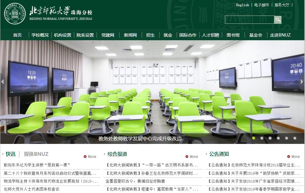 北京師范大學(xué)珠海分校(原北京師范大學(xué)珠海教育園區(qū))是教育部批準(zhǔn)設(shè)立、由北京師范大學(xué)和珠海市人民政府合作舉辦、進(jìn)行本科層次教育的全日制普通高等學(xué)校。建設(shè)珠海分校是北京師范大學(xué)建設(shè)世界一流大學(xué)宏偉目標(biāo)的重要組成部分。在教育部有關(guān)批復(fù)精神的指導(dǎo)下,珠海分校堅(jiān)決執(zhí)行北京師范大學(xué)提出的“資源國有、學(xué)校舉辦、市場運(yùn)作、全新模式”的建校方針,堅(jiān)決貫徹“以質(zhì)量求生存,以創(chuàng)新求發(fā)展,以貢獻(xiàn)求支持,以共贏求合作”的發(fā)展思路,在學(xué)校建設(shè)與發(fā)展中大膽進(jìn)行教學(xué)模式、管理方式、運(yùn)行機(jī)制、國際合作以及產(chǎn)學(xué)研一體化方面的改革嘗試,努力把學(xué)校建設(shè)成為教育與科技產(chǎn)業(yè)復(fù)合發(fā)展、特色鮮明的綜合性改革實(shí)驗(yàn)區(qū),發(fā)展成為開放式、有特色、應(yīng)用型高水平大學(xué)。按照教育部的規(guī)定,珠海分校的教學(xué)組織和管理由北京師范大學(xué)負(fù)責(zé)。北京師范大學(xué)高度重視珠海分校的教育質(zhì)量和辦學(xué)水平,派出經(jīng)驗(yàn)豐富的管理干部,負(fù)責(zé)分校的行政和教育教學(xué)管理工作。珠海分校依托北師大的優(yōu)質(zhì)學(xué)科資源,著眼當(dāng)代經(jīng)濟(jì)發(fā)展和社會需求,致力于培養(yǎng)具有寬厚人文、科學(xué)素養(yǎng)和學(xué)科專業(yè)知識的應(yīng)用型專門人才。建校以來,生源遍及全國二十七個(gè)?。ㄗ灾螀^(qū)、直轄市)及港澳臺地區(qū),在四川省和青海省一本批次招生,其余省份在本科批次或二本批次招生。2018年,錄取的廣東省外一本線上學(xué)生比例達(dá)到60%。2011年我校與清華大學(xué)、北京大學(xué)、北京師范大學(xué)等63所高校被國家教育部制定列入2012年免試招收香港學(xué)生的高校名冊?,F(xiàn)有在校生達(dá)2.3萬多人。珠海分校設(shè)有文學(xué)院、教育學(xué)院、管理學(xué)院、信息技術(shù)學(xué)院、不動產(chǎn)學(xué)院、物流學(xué)院、法律與行政學(xué)院、設(shè)計(jì)學(xué)院、藝術(shù)與傳播學(xué)院、外國語學(xué)院、工程技術(shù)學(xué)院、應(yīng)用數(shù)學(xué)學(xué)院、運(yùn)動休閑學(xué)院以及國際商學(xué)部等十四個(gè)學(xué)院(部),涵蓋8大學(xué)科門類的61個(gè)本科專業(yè),形成了以經(jīng)濟(jì)類、管理類及工科類等應(yīng)用型學(xué)科為主體,教育類學(xué)科為特色,文學(xué)、藝術(shù)、法律、理學(xué)等傳統(tǒng)學(xué)科協(xié)調(diào)發(fā)展的綜合性學(xué)科布局。北京師范大學(xué)珠海分校的學(xué)生修滿所學(xué)專業(yè)教學(xué)計(jì)劃規(guī)定的全部學(xué)分,頒發(fā)北京師范大學(xué)珠海分校畢業(yè)證書;符合《北京師范大學(xué)珠海分校學(xué)士學(xué)位授予條例》規(guī)定者,可申請獲得北京師范大學(xué)珠海分校學(xué)士學(xué)位證書。