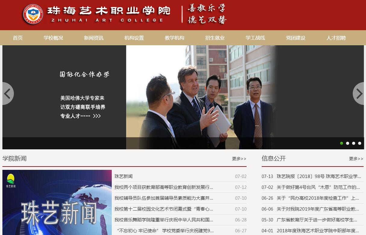 珠海藝術(shù)職業(yè)學(xué)院是南粵大地上一所重要的藝術(shù)高等學(xué)府。前身為1998年創(chuàng)辦的中國舞教學(xué)研究院,2003年經(jīng)廣東省人民政府批準(zhǔn),教育部備案,頒發(fā)電子注冊文憑,納入國家統(tǒng)一招生計劃的全日制普通高等院校(學(xué)院代碼:12576)。學(xué)校二期建設(shè)工程項目總投資人民幣5.31億元,已被列入廣東省2014年重點建設(shè)項目計劃,是廣東省2014年285個重點建設(shè)項目之一,是珠海市2014年27個重點建設(shè)項目之一。學(xué)校有獨特的地理優(yōu)勢,坐落在珠海特區(qū)金灣大學(xué)城,依山傍海,環(huán)境優(yōu)美,毗鄰港澳,生活方便。學(xué)校距離珠海拱北海關(guān)25分鐘車程(拱北海關(guān)步行至澳門只需5分鐘)、珠海機場15分鐘車程、珠海九洲港碼頭30分鐘車程(九洲港碼頭至香港只需45分鐘船程)。乘坐城際高速列車由珠海至廣州只需40分鐘車程。隨著橫琴經(jīng)濟帶的飛速發(fā)展,港珠澳大橋的建設(shè)開通,學(xué)校的區(qū)位優(yōu)勢將更為凸顯。學(xué)校辦學(xué)定位精準(zhǔn),厚植珠海特區(qū)、立足廣東、面向全國,專業(yè)設(shè)置積極對接文化藝術(shù)事業(yè)和先進第三產(chǎn)業(yè)的持續(xù)發(fā)展需求,為區(qū)域經(jīng)濟和社會發(fā)展培養(yǎng)應(yīng)用型高技能專業(yè)人才,學(xué)校設(shè)有音樂舞蹈學(xué)院、藝術(shù)設(shè)計學(xué)院、經(jīng)濟管理學(xué)院和文化與旅游學(xué)院,開設(shè)包括廣東省首批高職高專品牌專業(yè)首飾工藝與設(shè)計、省級重點建設(shè)專業(yè)環(huán)境藝術(shù)設(shè)計、及音樂表演、舞蹈表演、播音與主持、工商企業(yè)管理、旅游管理和商務(wù)英語等在內(nèi)的31個專業(yè),涵蓋藝術(shù)學(xué)、管理學(xué)、經(jīng)濟學(xué)等5大學(xué)科門類,形成以藝術(shù)教育為特色,文經(jīng)管協(xié)調(diào)發(fā)展的辦學(xué)格局。學(xué)校面向全國20多個省、市、自治區(qū)招收普通高等教育、成人高等教育學(xué)生,還與華南師范大學(xué)、廣州美術(shù)學(xué)院、廣東財經(jīng)大學(xué)等院校合作開展“相溝通”自考本科教育,學(xué)生在畢業(yè)時可同時獲得華南師范大學(xué)、廣州美術(shù)學(xué)院、廣東財經(jīng)大學(xué)等院校的大學(xué)本科畢業(yè)證書。學(xué)校還與廣東工業(yè)大學(xué)合作開展聯(lián)合培養(yǎng)工業(yè)設(shè)計專業(yè)碩士研究生項目,與國外多所大學(xué)建立聯(lián)系開展海外留學(xué)合作項目?!八^大學(xué)者,非謂有大樓之謂也,有大師之謂也”。學(xué)校高度重視師資隊伍建設(shè),其中有40多名來自海內(nèi)外的博士、教授薈萃校園,另有包括亞洲工藝美術(shù)大師、世界著名樂團首席表演家等在內(nèi)的行業(yè)精英作為專任教師在校執(zhí)教授藝。教師團隊中涌現(xiàn)出國家級優(yōu)秀教師1人,南粵優(yōu)秀教師3人,省級優(yōu)秀教師4人,珠海市優(yōu)秀教師7人。經(jīng)過近二十年的發(fā)展,學(xué)校形成了鮮明的辦學(xué)特色,取得豐碩的辦學(xué)成果。學(xué)校認為貫徹實施廣東省高等教育“創(chuàng)新強校工程”和“質(zhì)量工程”,不斷加強內(nèi)涵建設(shè),實施以重點專業(yè)建設(shè)帶動整體辦學(xué)水平提升的戰(zhàn)略,特別是學(xué)校積極探索和推進“現(xiàn)代師徒制”人才培養(yǎng)模式,在音樂舞蹈類專業(yè)踐行“院團結(jié)合,教演一體“的教學(xué)模式,應(yīng)用美術(shù)設(shè)計類專業(yè)推廣”真實項目“教學(xué)模式,經(jīng)管類專業(yè)實行產(chǎn)教融合、校企合作共同育人的教學(xué)模式,均取得良好效果。目前擁有首飾工藝與設(shè)計、環(huán)境藝術(shù)設(shè)計共2個省級品牌(重點)專業(yè),音樂表演等8個校級特色(重點)專業(yè)。2014年環(huán)境藝術(shù)設(shè)計專業(yè)被列為廣東省重點專業(yè)建設(shè)項目,2015年珠寶首飾工藝及鑒定專業(yè)被評為廣東省高職高專首批品牌專業(yè)(全省30多所民辦高校僅有6個專業(yè)入選)。2015年至2016年學(xué)校榮獲省級品牌建設(shè)專業(yè)、精品資源共享課程和公共實訓(xùn)中心等十二項建設(shè)項目。2016年我?!端囆g(shù)類高職現(xiàn)代師徒制人才培養(yǎng)模式的探索與實踐》專業(yè)建設(shè)案例,喜獲2016年度全國民辦職業(yè)技術(shù)教育“十佳”專業(yè)建設(shè)案例。學(xué)院堅持以就業(yè)為導(dǎo)向,注重學(xué)生實踐動手能力訓(xùn)練和職業(yè)意識培養(yǎng),把校企合作作為加快高素質(zhì)技能人才培養(yǎng)的有效途徑,與廣東長隆集團(珠海橫琴長隆)、香港中旅(海泉灣)溫泉有限公司、澳門維多利亞酒店、珠海中邦藝術(shù)酒店、澳門明輝珠寶實業(yè)有限公司、臺灣豪門雕塑、珠海大劇院、中山泰華集團(伊泰蓮娜首飾精品有限公司)、珠海市總工會藝術(shù)團等知名企業(yè)共建校外實習(xí)就業(yè)基地,做好畢業(yè)生就業(yè)指導(dǎo)和就業(yè)服務(wù)。學(xué)院歷屆畢業(yè)生就業(yè)率達97%以上,并積極拓展港澳臺及海外就業(yè)市場,自2013年8月以來,每年都有十多名優(yōu)秀畢業(yè)生經(jīng)學(xué)院推薦獲得澳門企業(yè)錄用通知書。學(xué)院不斷努力為國內(nèi)及港、澳、臺、東南亞地區(qū)的經(jīng)濟和社會發(fā)