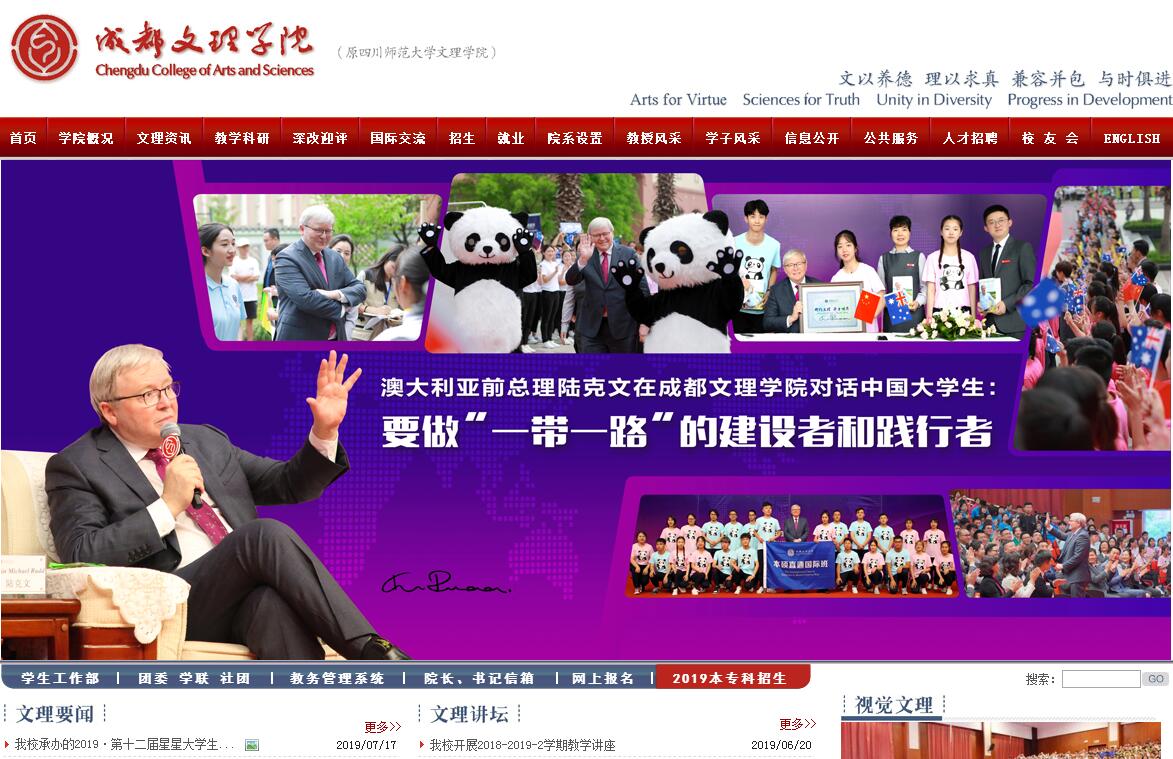 成都文理學(xué)院(原四川師范大學(xué)文理學(xué)院)是四川省屬本科高校,始建于1999年。學(xué)校由1999年建立的四川師范大學(xué)文化傳播學(xué)院和四川師范大學(xué)國際商學(xué)院合并而成,2004年經(jīng)教育部批準(zhǔn)設(shè)置為獨(dú)立學(xué)院,2014年教育部批準(zhǔn)轉(zhuǎn)設(shè)為獨(dú)立建制的普通本科高校。學(xué)?,F(xiàn)有金堂、洪河兩個(gè)園林式校區(qū)。學(xué)校把“實(shí)施全人教育,締造常青學(xué)府,化育幸福人生”作為發(fā)展愿景,把建設(shè)以全人教育為鮮明特色的現(xiàn)代化應(yīng)用型大學(xué)作為奮斗目標(biāo)。學(xué)校秉承“博文、明理、弘毅、篤行”的校訓(xùn);奉行“文以養(yǎng)德、理以求真、兼容并包、與時(shí)俱進(jìn)”的辦學(xué)理念;堅(jiān)持“創(chuàng)辦學(xué)生滿意的學(xué)校,培養(yǎng)社會(huì)滿意的學(xué)生”的辦學(xué)宗旨;恪守“是否有利于學(xué)生全面發(fā)展,是否有利于學(xué)生個(gè)性特長發(fā)展,是否有利于學(xué)生可持續(xù)發(fā)展”的教育教學(xué)評(píng)價(jià)標(biāo)準(zhǔn);以陶行知先生的格言“要學(xué)生做的事,教職員躬親共做;要學(xué)生學(xué)的知識(shí),教職員躬親共學(xué);要學(xué)生守的規(guī)則,教職員躬親共守”為教職員工的行為規(guī)范。學(xué)校通過自主自治的管理機(jī)制、唯才是舉的用人機(jī)制、以生為本的評(píng)價(jià)機(jī)制、自上而下的服務(wù)機(jī)制、先支持后規(guī)范的創(chuàng)新激勵(lì)機(jī)制、引進(jìn)與培養(yǎng)相結(jié)合的教師成長機(jī)制、同發(fā)展共分享的可持續(xù)發(fā)展機(jī)制等七大創(chuàng)新機(jī)制建立和完善現(xiàn)代大學(xué)制度,以浸潤式人文養(yǎng)成模式為依托,借鑒吸收國內(nèi)外優(yōu)質(zhì)辦學(xué)資源,培養(yǎng)文理會(huì)通、思想自由、求真向善、德才兼?zhèn)?、開放包容,具有幸福感的現(xiàn)代化高素質(zhì)應(yīng)用型人才。學(xué)校順應(yīng)中國高等教育改革的浪潮,又好又快發(fā)展。學(xué)?,F(xiàn)有文、經(jīng)、管、法、理、工、藝、教、醫(yī)、農(nóng)等10大學(xué)科,66個(gè)專業(yè);設(shè)有18個(gè)教學(xué)單位、8個(gè)科研機(jī)構(gòu);建有1個(gè)四川省人才培養(yǎng)模式創(chuàng)新實(shí)驗(yàn)區(qū),1項(xiàng)卓越工程師教育培養(yǎng)計(jì)劃;有3門省級(jí)精品課程、2個(gè)省級(jí)教學(xué)團(tuán)隊(duì)、3個(gè)省級(jí)應(yīng)用型示范專業(yè)、2個(gè)省級(jí)實(shí)驗(yàn)教學(xué)示范中心、3個(gè)省級(jí)大學(xué)生校外實(shí)踐教育基地、7項(xiàng)省級(jí)教育教學(xué)改革項(xiàng)目,獲批34個(gè)國家級(jí)和省級(jí)質(zhì)量工程項(xiàng)目。學(xué)校師資力量雄厚,擁有一支學(xué)者型、專家型、雙師型的教師隊(duì)伍。在980名專任教師中,高級(jí)職稱占10.7% ,副高級(jí)職稱占20.5%,具有博士學(xué)位教師占8.4%,具有碩士學(xué)位的教師占53.6%。近五年來,學(xué)校先后承擔(dān)了省廳級(jí)課題等各級(jí)各類課題194項(xiàng),出版專(譯)著、教材65部,發(fā)表學(xué)術(shù)論文584篇,獲科研成果獎(jiǎng)318項(xiàng)。四川省哲學(xué)社會(huì)科學(xué)普及基地——“書法藝術(shù)社科普及基地”落戶學(xué)校。學(xué)校積極探索人才培養(yǎng)模式,致力培養(yǎng)專業(yè)知識(shí)廣、實(shí)踐能力強(qiáng)、具有創(chuàng)新精神的高素質(zhì)應(yīng)用型人才。建立了與“中國工商銀行(Industrial & Commercial Bank Of China)”、“美國思科公司(CISCOSYSTEMS)”、德國安聯(lián)集團(tuán)、意大利丹馬士環(huán)球物流、印度維布洛信息科技等世界500強(qiáng)企業(yè),普華永道(PWC)等世界四大會(huì)計(jì)師事務(wù)所以及中央電視臺(tái)跨產(chǎn)業(yè)、跨行業(yè)深度合作。逐步形成“校地合作”、“校企合作”、“工學(xué)結(jié)合”、“前店后?!钡葢?yīng)用型人才培養(yǎng)模式。學(xué)校用黨的力量凝聚青年學(xué)生,寓黨建工作和思想教育于校園文化之中,全面實(shí)施全人教育。學(xué)校建有“1+7+N”黨內(nèi)教育培訓(xùn)體系,發(fā)揮黨建育人功能,把絕大多數(shù)學(xué)生凝聚在黨旗下,提升師生思想政治素質(zhì)。學(xué)校黨建工作創(chuàng)新成果先后三次獲得全國民辦高校黨的建設(shè)和思想政治工作優(yōu)秀成果獎(jiǎng)。學(xué)校黨委先后獲得全國高校干部網(wǎng)絡(luò)培訓(xùn)工作優(yōu)秀組織單位、四川省高等學(xué)校先進(jìn)基層黨組織、四川省高等學(xué)校優(yōu)秀服務(wù)型黨組織、四川省大學(xué)生思想政治教育先進(jìn)集體等榮譽(yù)稱號(hào)。學(xué)校以校園文化建設(shè)為抓手,實(shí)施素質(zhì)教育。建有學(xué)生社團(tuán) 116個(gè),通過構(gòu)建校園科技文化、社團(tuán)文化、美育文化、文學(xué)藝術(shù)文化、媒介文化、生活和生態(tài)文化等多渠道、多層次地創(chuàng)建了學(xué)校環(huán)境文化體系。學(xué)校構(gòu)建了素質(zhì)教育教學(xué)體系,以課程建設(shè)為支撐,以導(dǎo)致學(xué)習(xí)為目的,形成素質(zhì)教育鮮明特色。學(xué)校編寫的素質(zhì)教育系列教材《大學(xué)生科學(xué)技術(shù)通論》、《中西文化概論》、《大學(xué)生職業(yè)素
