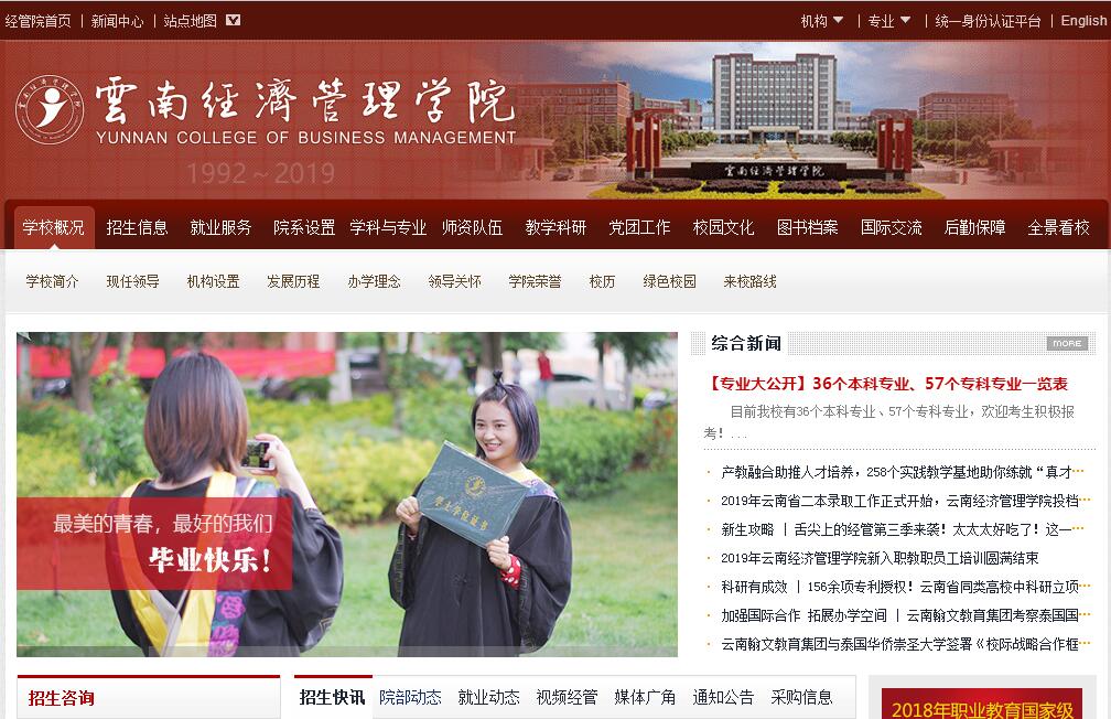 云南經(jīng)濟(jì)管理學(xué)院是一所經(jīng)教育部批準(zhǔn)具有獨(dú)立頒發(fā)學(xué)歷文憑資格的全日制應(yīng)用型普通本科高校。學(xué)校創(chuàng)建于1992年,2011年被確定為云南省省級(jí)示范性高等職業(yè)院校;2014年經(jīng)教育部批準(zhǔn),升格為本科院校;2017年被評(píng)為云南省首批應(yīng)用型人才培養(yǎng)示范院校。學(xué)校現(xiàn)有海源和安寧兩個(gè)校區(qū),共占地1305畝。教學(xué)儀器設(shè)備總值9598.05萬(wàn)元,圖書(shū)館藏書(shū)182.272萬(wàn)冊(cè),固定資產(chǎn)總值17.2億元,教學(xué)、科研、生活等基礎(chǔ)設(shè)施齊全?,F(xiàn)有全日制在校生31720人,設(shè)有財(cái)會(huì)金融學(xué)院、國(guó)際商學(xué)院、人文藝術(shù)學(xué)院、教育學(xué)院、工程學(xué)院、醫(yī)學(xué)院等二級(jí)學(xué)院,開(kāi)設(shè)本科專業(yè)29個(gè),??茖I(yè)55個(gè),涵蓋管理學(xué)、經(jīng)濟(jì)學(xué)、工學(xué)、醫(yī)學(xué)、教育學(xué)、文學(xué)、藝術(shù)學(xué)7個(gè)學(xué)科門(mén)類(lèi)。有專任教師1586人,其中,具有副高級(jí)以上專業(yè)技術(shù)職務(wù)的教師539人,具有碩士以上學(xué)位的教師806人,并引進(jìn)企業(yè)行業(yè)精英承擔(dān)實(shí)踐課程教學(xué)任務(wù)。學(xué)校形成了“政產(chǎn)學(xué)研用”的教育生態(tài)鏈,建有省級(jí)實(shí)驗(yàn)教學(xué)中心4個(gè),省級(jí)教學(xué)名師工作室3個(gè),成立了金鑒明院士工作站、云南生態(tài)農(nóng)業(yè)研究所、天然藥物研究所、現(xiàn)代供應(yīng)鏈研究院、鄉(xiāng)村振興研究院、工業(yè)智能應(yīng)用技術(shù)研究院等科研機(jī)構(gòu),建有165個(gè)校內(nèi)實(shí)踐教學(xué)基地和205個(gè)校外實(shí)踐教學(xué)基地。學(xué)校在全省高校中率先成立創(chuàng)新創(chuàng)業(yè)學(xué)院,搭建了創(chuàng)新創(chuàng)業(yè)教學(xué)、實(shí)踐、孵化三大平臺(tái),成立了大學(xué)生網(wǎng)商創(chuàng)業(yè)園、安寧市小微企業(yè)創(chuàng)業(yè)園。學(xué)校眾創(chuàng)空間先后獲得國(guó)家科技部、云南省科技廳、昆明市科技局、安寧市工信局4級(jí)眾創(chuàng)空間授牌。學(xué)校獲得云南省教育廳“高等學(xué)校創(chuàng)新創(chuàng)業(yè)教育改革試點(diǎn)學(xué)院”立項(xiàng),創(chuàng)業(yè)園榮獲云南省小企業(yè)創(chuàng)業(yè)示范園、云南省省級(jí)校園創(chuàng)業(yè)平臺(tái)、昆明市青年創(chuàng)業(yè)示范園等稱號(hào)。學(xué)校2017屆本科畢業(yè)生自主創(chuàng)業(yè)率達(dá)到10.47%,高居全國(guó)576所本科院校第一名。學(xué)校教學(xué)成果“應(yīng)用型大學(xué)創(chuàng)業(yè)教育體系的構(gòu)建與實(shí)踐”獲得第八屆云南省教學(xué)成果一等獎(jiǎng)。近年來(lái),學(xué)校教師共主持省廳級(jí)課題100余項(xiàng),出版教材、著作60多部,發(fā)表學(xué)術(shù)論文近4000余篇,榮獲國(guó)家級(jí)社科基金項(xiàng)目1項(xiàng),教育部項(xiàng)目1項(xiàng)。生態(tài)農(nóng)業(yè)研究所研發(fā)的國(guó)家 863 項(xiàng)目作物基因表型誘導(dǎo)調(diào)控表達(dá)技術(shù)(GPIT)廣泛應(yīng)用在農(nóng)業(yè)生產(chǎn)領(lǐng)域、環(huán)境保護(hù)領(lǐng)域。學(xué)校科研綜合實(shí)力常年排名云南省民辦高校第一。學(xué)校堅(jiān)持國(guó)際化理念辦學(xué),常年聘請(qǐng)來(lái)自英國(guó)、美國(guó)、加拿大、泰國(guó)、韓國(guó)、南非等多個(gè)國(guó)家的十余名外教在校任教,與20余所國(guó)外高校建立了合作關(guān)系,成立了出國(guó)留學(xué)預(yù)備學(xué)院,為學(xué)生和教師走出去搭建平臺(tái)。近年來(lái),學(xué)校畢業(yè)生年終就業(yè)率均保持在97%以上,連續(xù)8年獲得“云南省高校畢業(yè)生就業(yè)創(chuàng)業(yè)工作目標(biāo)責(zé)任考核一等獎(jiǎng)”。此外,學(xué)校先后榮獲“中國(guó)民辦教育優(yōu)秀學(xué)?!?、“云南省民辦教育先進(jìn)集體”、“云南省級(jí)文明學(xué)?!薄ⅰ?A級(jí)社會(huì)組織”、“云南省平安校園”、“共青團(tuán)中央基層組織建設(shè)和基層工作試點(diǎn)單位”、“云南省就業(yè)創(chuàng)業(yè)典型經(jīng)驗(yàn)高校”、“云南省學(xué)習(xí)型黨組織”等多項(xiàng)榮譽(yù)。學(xué)校立足云南,服務(wù)區(qū)域經(jīng)濟(jì)社會(huì)發(fā)展、產(chǎn)業(yè)結(jié)構(gòu)調(diào)整和城鎮(zhèn)化建設(shè),培養(yǎng)面向生產(chǎn)、建設(shè)、管理、服務(wù)一線,具有社會(huì)責(zé)任感和創(chuàng)新精神,理論功底扎實(shí),實(shí)踐能力強(qiáng)的高素質(zhì)應(yīng)用型人才。
