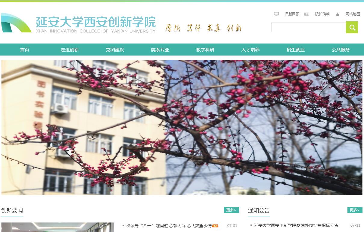 延安大學(xué)西安創(chuàng)新學(xué)院是由延安大學(xué)申辦,教育部(教發(fā)函〔2004〕72號(hào))2004年5月批準(zhǔn)成立的一所全日制普通本科獨(dú)立學(xué)院。學(xué)院坐落在古都西安南郊大學(xué)城,東北緊鄰航天城,南眺終南山。古色沉香的校園,綠樹成蔭,湖水環(huán)繞,現(xiàn)代化教學(xué)、圖書實(shí)驗(yàn)大樓與傳統(tǒng)建筑的四合辦公院落交相輝映,花草遍地,書香滿園,桃李芬芳。學(xué)院實(shí)行董事會(huì)領(lǐng)導(dǎo)下的院長(zhǎng)負(fù)責(zé)制,現(xiàn)任董事長(zhǎng)王喜榮,院長(zhǎng)崔海潮。學(xué)院現(xiàn)設(shè)護(hù)理學(xué)院、商學(xué)院、土木工程學(xué)院、數(shù)據(jù)科學(xué)與計(jì)算機(jī)學(xué)院4個(gè)二級(jí)學(xué)院,中國(guó)語(yǔ)言文學(xué)與文化傳播系、外語(yǔ)系、藝術(shù)系3個(gè)教學(xué)系,思想政治教學(xué)部、體育教學(xué)部2個(gè)公共教學(xué)部,1個(gè)實(shí)驗(yàn)教學(xué)中心。學(xué)院設(shè)有護(hù)理學(xué)、制藥工程、化學(xué)工程與工藝、漢語(yǔ)言文學(xué)、漢語(yǔ)國(guó)際教育專業(yè)、會(huì)計(jì)學(xué)、工商管理、市場(chǎng)營(yíng)銷、酒店管理、數(shù)學(xué)與應(yīng)用數(shù)學(xué)、計(jì)算機(jī)科學(xué)與技術(shù)、電子信息工程、物聯(lián)網(wǎng)工程、軟件工程土木工程、建筑學(xué)、給排水科學(xué)與工程、工程管理、英語(yǔ)、商務(wù)英語(yǔ)、美術(shù)學(xué)、環(huán)境設(shè)計(jì)、視覺傳達(dá)設(shè)計(jì)等30個(gè)本科專業(yè),涵蓋文、理、工、管、農(nóng)、醫(yī)、藝術(shù)等7個(gè)學(xué)科門類?,F(xiàn)有在校學(xué)生7000余人,教職工474人,其中教授27人,副教授36人,博士8人,碩士173人。2018年面向全國(guó)16個(gè)?。▍^(qū))市招生。學(xué)院擁有滿足教育教學(xué)需要的教學(xué)設(shè)施。圖書館現(xiàn)有紙質(zhì)藏書31萬(wàn)余冊(cè),中外文期刊500余種,電子期刊5700余冊(cè),校園網(wǎng)與延安大學(xué)聯(lián)網(wǎng)使用,已開通維普考試資源庫(kù)、中國(guó)知網(wǎng)等數(shù)據(jù)庫(kù)。教學(xué)科研儀器設(shè)備教學(xué)用儀器設(shè)備6574臺(tái)(件),建有護(hù)理綜合、企業(yè)綜合管理、網(wǎng)絡(luò)工程、解剖學(xué)、電子綜合開放實(shí)驗(yàn)室等77個(gè)實(shí)驗(yàn)分室,另有校內(nèi)ORACLE實(shí)習(xí)實(shí)訓(xùn)基地一個(gè)。先后與娃哈哈集團(tuán)、富盈酒店集團(tuán)、喜來(lái)登酒店集團(tuán)、空軍軍醫(yī)大學(xué)西京醫(yī)院、西安曲江水廠等單位合作,建立了65個(gè)實(shí)習(xí)實(shí)訓(xùn)基地。學(xué)院始終把提高教育質(zhì)量作為辦學(xué)治校的核心任務(wù),不斷創(chuàng)新培養(yǎng)模式,優(yōu)化培養(yǎng)方案。各項(xiàng)工作規(guī)范、有序,人才培養(yǎng)特色鮮明,取得了顯著的辦學(xué)成績(jī)。建校以來(lái),已為社會(huì)培養(yǎng)17055名高素質(zhì)應(yīng)用人才,考取研究生和各級(jí)公務(wù)員近2000人,不少優(yōu)秀畢業(yè)生已在管理、教育、金融等領(lǐng)域嶄露頭角。榮獲各級(jí)各類競(jìng)賽獎(jiǎng)項(xiàng)200余項(xiàng),在全國(guó)大學(xué)生數(shù)學(xué)建模競(jìng)賽、CCTV杯全國(guó)英語(yǔ)演講大賽、全國(guó)信息技術(shù)應(yīng)用水平大賽中,我院學(xué)生代表隊(duì)屢獲佳績(jī)。教師科研水平不斷提高,近3年來(lái)發(fā)表出版論著425篇(部),其中核心期刊68篇;獲得國(guó)家“實(shí)用新型”和“外觀設(shè)計(jì)”18項(xiàng)專利。學(xué)院對(duì)外合作辦學(xué)和交流成績(jī)斐然。2014年8月學(xué)院與韓國(guó)大真大學(xué)簽訂《教育合作交流框架協(xié)議》,2015年5月與臺(tái)灣南開科技大學(xué)簽訂校際合作意向書,并與美國(guó)明尼蘇達(dá)州伯米吉州立大學(xué)以及國(guó)內(nèi)廣大兄弟院校建立了廣泛的合作關(guān)系,與美國(guó)東北州立大學(xué)、瑞士洛桑酒店管理學(xué)院達(dá)成了合作意向,開放辦學(xué)程度較高。學(xué)院銳意改革,開拓創(chuàng)新,積極培育創(chuàng)新教育特色。根據(jù)“重實(shí)踐、有特色、應(yīng)用型”的發(fā)展定位,堅(jiān)持用延安精神辦學(xué)育人,堅(jiān)持“質(zhì)量立校、特色取勝”的辦學(xué)理念,堅(jiān)持校企聯(lián)合的人才培養(yǎng)模式,以“培養(yǎng)面向基層、面向生產(chǎn)、管理和建設(shè)第一線,專業(yè)基礎(chǔ)理論知識(shí)扎實(shí)、實(shí)踐操作技能較強(qiáng)、綜合素質(zhì)較高的高素質(zhì)應(yīng)用型人才”。新的歷史時(shí)期,學(xué)院以“厚德、篤學(xué)、求真、創(chuàng)新”為校訓(xùn),積極凝練辦學(xué)特色,探索內(nèi)涵發(fā)展之路,鍛造學(xué)院品牌、提升學(xué)院品位、追求學(xué)院品質(zhì),力爭(zhēng)把學(xué)院建設(shè)成為一所管理規(guī)范、質(zhì)量?jī)?yōu)良、西部知名、陜西一流的應(yīng)用型獨(dú)立學(xué)院。