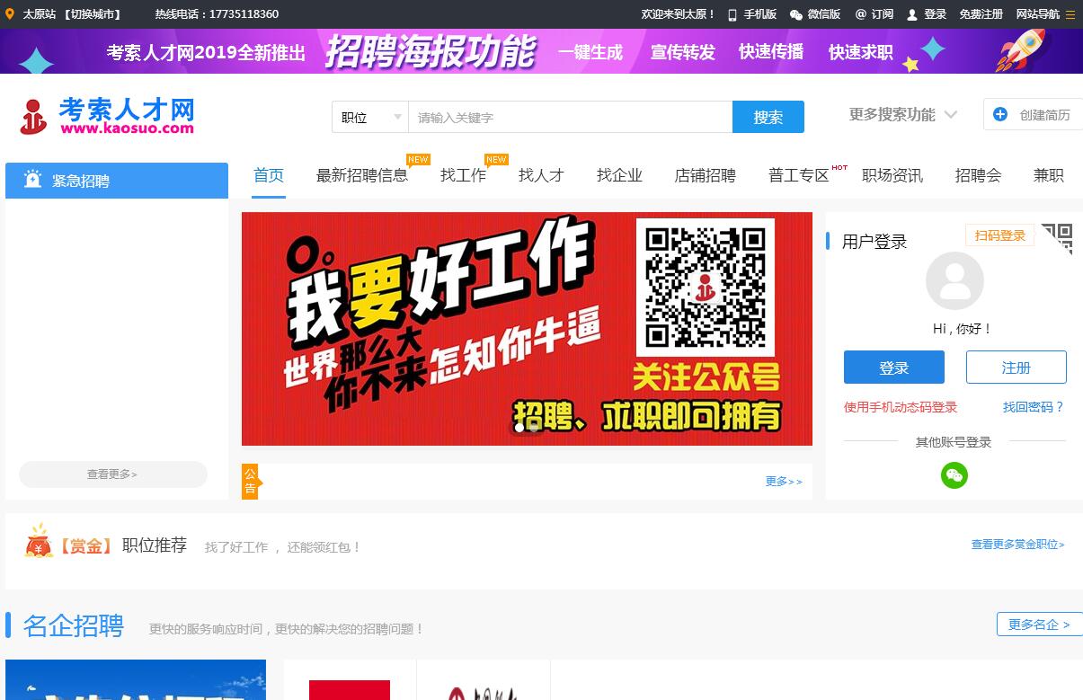 | 網(wǎng)站簡介: 考索人才網(wǎng)(ty.kaosuo.com)面向全國,提供2019最新最全最準(zhǔn)確的招聘網(wǎng)站信息,為太原企業(yè)和求職者提供人才招聘、求職、找工作、培訓(xùn)等在內(nèi)的全方位的人力資源服務(wù),最新招聘信息,找工作上考索人才網(wǎng)! |