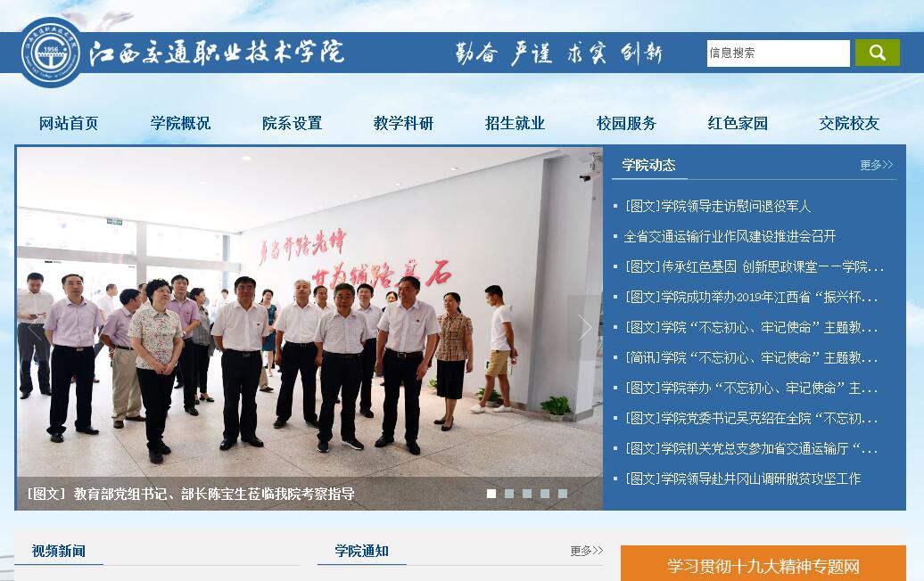 在鐘靈毓秀、人文薈萃的紅土地上,在騰飛的南昌經(jīng)濟(jì)技術(shù)開(kāi)發(fā)區(qū),在風(fēng)景美麗的梅嶺腳下、贛江之濱,矗立著一所歷史悠久而又朝氣蓬勃的高等學(xué)府——江西交通職業(yè)技術(shù)學(xué)院。學(xué)院創(chuàng)建于1956年,前身為交通部南昌公路工程學(xué)校,1958年升格為江西交通學(xué)院,1973年更名為江西省交通學(xué)校,1984年曾籌建江西交通專科學(xué)校,2002年升格為高等職業(yè)技術(shù)學(xué)院。2010年被教育部、財(cái)政部確定為“國(guó)家示范性高等職業(yè)院校建設(shè)計(jì)劃”骨干高職院校立項(xiàng)建設(shè)單位。2016年被確定為國(guó)家優(yōu)質(zhì)高職院校立項(xiàng)建設(shè)單位。學(xué)院占地面積850畝,建筑面積36萬(wàn)平方米,圖書(shū)館藏書(shū)63萬(wàn)冊(cè),教學(xué)科研儀器設(shè)備總值1.2億元,全日制在校生1萬(wàn)余人。設(shè)有路橋工程系、汽車工程系、建筑工程系、機(jī)電工程系、管理工程系、信息工程系、基礎(chǔ)課部和成人教育部8個(gè)教學(xué)系部,共開(kāi)設(shè)道路橋梁工程技術(shù)、汽車運(yùn)用技術(shù)、城市軌道交通、物流管理、數(shù)控技術(shù)、計(jì)算機(jī)網(wǎng)絡(luò)技術(shù)等43個(gè)專業(yè)。學(xué)院辦學(xué)環(huán)境優(yōu)良,是國(guó)家骨干高職院校、全國(guó)交通高等職業(yè)教育示范院校、江西省首批示范性高等職業(yè)院校和首批聯(lián)合培養(yǎng)應(yīng)用技術(shù)型本科人才試點(diǎn)院校, 成立了融合政府、行業(yè)、企業(yè)等多方資源的江西交通職業(yè)技術(shù)學(xué)院合作發(fā)展理事會(huì),創(chuàng)新了“五方聯(lián)動(dòng)、三層對(duì)接”的辦學(xué)體制機(jī)制,有效推進(jìn)了融教學(xué)生產(chǎn)于一體、各具專業(yè)特色的人才培養(yǎng)模式改革,重點(diǎn)專業(yè)的辦學(xué)水平得到了整體提高;學(xué)院有校內(nèi)外實(shí)踐教學(xué)基地377個(gè),各系部建有獨(dú)立的、教學(xué)儀器設(shè)施較為完善的實(shí)訓(xùn)大樓,總建筑面積達(dá)7.6萬(wàn)平方米。近年來(lái),合作企業(yè)累計(jì)向?qū)W院捐贈(zèng)教學(xué)設(shè)備1000余萬(wàn)元,學(xué)生獲得各類國(guó)家級(jí)和省級(jí)榮譽(yù)129項(xiàng),其中2013年、2014年、2016年連續(xù)獲得全國(guó)職業(yè)院校技能大賽“現(xiàn)代物流”、“汽車營(yíng)銷”等賽項(xiàng)團(tuán)體一等獎(jiǎng)。學(xué)院是“江西省普通高校畢業(yè)生就業(yè)工作先進(jìn)單位”。根據(jù)麥可思數(shù)據(jù)調(diào)查顯示,學(xué)院學(xué)生畢業(yè)一年后的就業(yè)率、工作與專業(yè)相關(guān)度均高于全國(guó)同類院校。學(xué)院不斷加強(qiáng)“雙師”結(jié)構(gòu)和“雙師”素質(zhì)專業(yè)教學(xué)團(tuán)隊(duì)建設(shè),擁有一支由全國(guó)交通高職教育專業(yè)帶頭人、省部級(jí)高校教學(xué)名師、省高校中青年學(xué)科帶頭人等組成的優(yōu)秀教學(xué)團(tuán)隊(duì),培養(yǎng)了一批注冊(cè)巖土工程師、省部級(jí)交通重點(diǎn)建設(shè)項(xiàng)目評(píng)標(biāo)專家、道路運(yùn)輸行業(yè)專家、高等職業(yè)教育評(píng)估專家、省督學(xué)和科技項(xiàng)目評(píng)審專家。學(xué)院緊緊圍繞“交通”和“職業(yè)”特色,以汽車、道橋、城軌等重點(diǎn)專業(yè)為引領(lǐng),不斷加強(qiáng)專業(yè)建設(shè)。創(chuàng)新了“崗位需求引導(dǎo)、行企標(biāo)準(zhǔn)跟進(jìn)、三方考核評(píng)價(jià)”、“系企合一、產(chǎn)學(xué)一體”等各具專業(yè)特色的人才培養(yǎng)模式。優(yōu)化了基于工作過(guò)程系統(tǒng)化的課程體系,加強(qiáng)了專業(yè)核心課程的建設(shè)。共有全國(guó)職業(yè)院校示范專業(yè)點(diǎn)4個(gè)、國(guó)家骨干高職院校重點(diǎn)建設(shè)專業(yè)4個(gè)、中央財(cái)政支持的重點(diǎn)專業(yè)6個(gè)、省級(jí)特色專業(yè)6個(gè)、教育部“高等職業(yè)教育創(chuàng)新發(fā)展行動(dòng)計(jì)劃”骨干專業(yè)10個(gè),建筑技術(shù)、汽車維修技術(shù)等2個(gè)技能型緊缺人才培養(yǎng)培訓(xùn)基地。建有國(guó)家級(jí)精品課程2門、國(guó)家級(jí)精品資源共享課程2門、省級(jí)精品課程14門、省級(jí)精品資源共享課程36門、省級(jí)精品在線開(kāi)放課程20門。與企業(yè)共同開(kāi)發(fā)4個(gè)專業(yè)教學(xué)資源庫(kù),合作編寫出版教材65部、電子教材5部。2014年,“專業(yè)企業(yè)一體,生產(chǎn)教學(xué)融合的道路橋梁工程技術(shù)專業(yè)人才培養(yǎng)創(chuàng)新與實(shí)踐”,“校廠店三方協(xié)同,共育汽車后市場(chǎng)技術(shù)技能人才的探索與實(shí)踐”兩項(xiàng)成果,榮獲國(guó)家教學(xué)成果獎(jiǎng)。另有省部級(jí)教學(xué)成果一等獎(jiǎng)5項(xiàng)、二等獎(jiǎng)11項(xiàng)。學(xué)院堅(jiān)持開(kāi)放辦學(xué),服務(wù)行業(yè),貢獻(xiàn)社會(huì)。建有全國(guó)高職院校唯一的具備交通行業(yè)甲級(jí)設(shè)計(jì)資質(zhì)的江西省交通規(guī)劃勘察設(shè)計(jì)院、橋隧專項(xiàng)資質(zhì)的公路工程試驗(yàn)檢測(cè)中心等產(chǎn)教實(shí)體,與省交通運(yùn)輸廳共建江西省交通工程檔案館。依托產(chǎn)教實(shí)