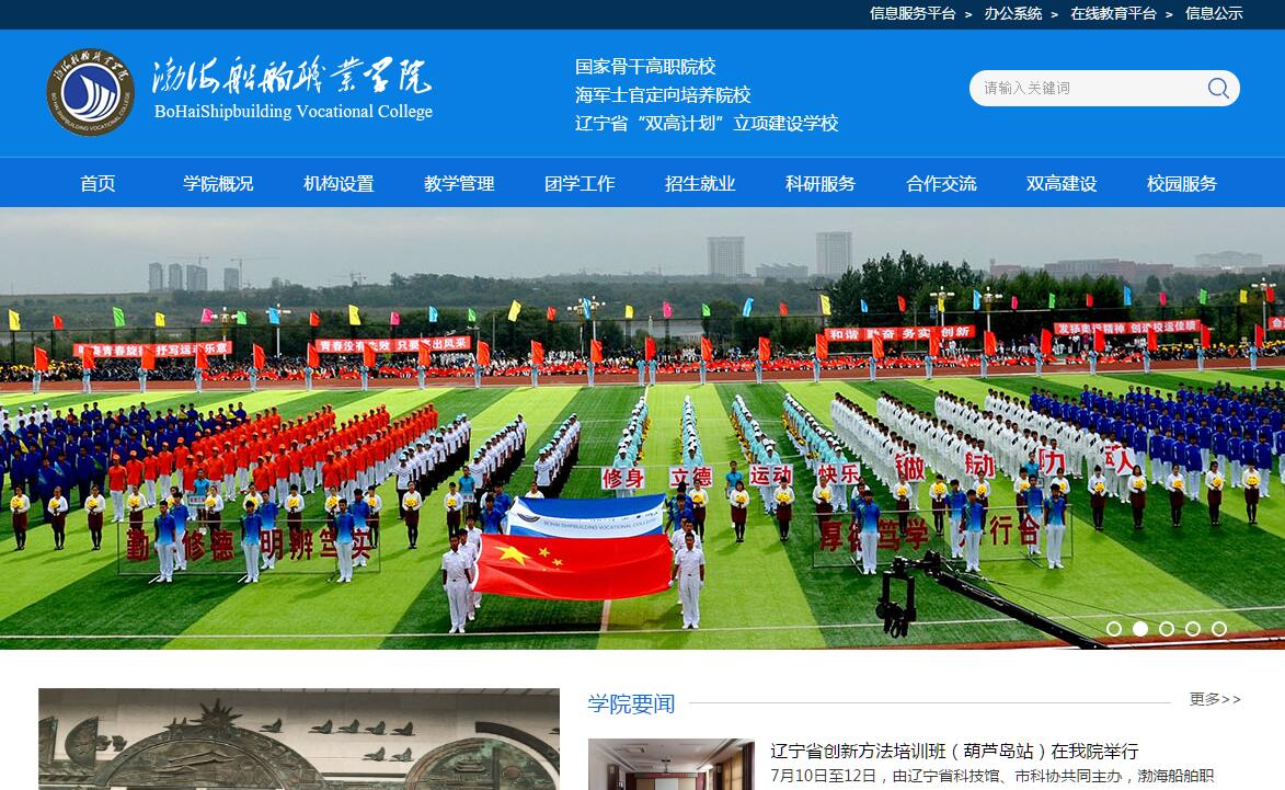 渤海船舶職業(yè)學(xué)院前身是創(chuàng)建于1959年的國(guó)家級(jí)重點(diǎn)中專(zhuān)——渤海船舶工業(yè)學(xué)校,徐向前元帥、楊成武將軍曾先后為學(xué)院題寫(xiě)校名,先后隸屬于國(guó)家第六機(jī)械工業(yè)部、中國(guó)船舶工業(yè)總公司和國(guó)防科工委,2001年經(jīng)遼寧省人民政府批準(zhǔn)、教育部備案,與葫蘆島師范學(xué)校、葫蘆島廣播電視大學(xué)合并組建而成,目前是我國(guó)北方唯一一所以培養(yǎng)船舶工業(yè)高素質(zhì)技能型專(zhuān)門(mén)人才為主、面向全國(guó)招生的全日制高等職業(yè)學(xué)院。2004年,被國(guó)家教育部評(píng)為全國(guó)高職高專(zhuān)人才培養(yǎng)工作辦學(xué)水平 “優(yōu)秀等級(jí)”院校。2014年,被國(guó)家教育部、財(cái)政部確定為“國(guó)家示范性骨干高職院?!?。2017年,被中央軍委、教育部批準(zhǔn)為海軍士官定向培養(yǎng)院校。2017年,被遼寧省教育廳、財(cái)政廳確定為遼寧省“雙高計(jì)劃”立項(xiàng)建設(shè)學(xué)校。學(xué)院地處遼寧省葫蘆島市興城首山國(guó)家級(jí)森林公園東側(cè),占地面積728畝,建筑面積21萬(wàn)平方米,教學(xué)儀器設(shè)備價(jià)值9700多萬(wàn)元,圖書(shū)館藏書(shū)50萬(wàn)余冊(cè),現(xiàn)有全日制在校生8200余人。學(xué)院堅(jiān)持以立德樹(shù)人為根本,以服務(wù)發(fā)展為宗旨,以促進(jìn)就業(yè)為導(dǎo)向,以培養(yǎng)高素質(zhì)技能型專(zhuān)門(mén)人才為目標(biāo),堅(jiān)持“立足船舶、面向軍工、服務(wù)社會(huì)”的辦學(xué)定位,面向船舶工業(yè)、軍工行業(yè)、機(jī)械行業(yè)、信息產(chǎn)業(yè)、現(xiàn)代服務(wù)業(yè)以及師范教育等開(kāi)設(shè)了51個(gè)專(zhuān)業(yè)及專(zhuān)業(yè)方向,其中,遼寧省示范專(zhuān)業(yè)3個(gè)、遼寧省品牌專(zhuān)業(yè)7個(gè),焊接技術(shù)及自動(dòng)化專(zhuān)業(yè)、船舶電氣工程技術(shù)專(zhuān)業(yè)為全國(guó)機(jī)械行業(yè)特色專(zhuān)業(yè)。船舶工程技術(shù)、船舶動(dòng)力裝置技術(shù)、船舶電氣技術(shù)、數(shù)控技術(shù)、焊接技術(shù)及自動(dòng)化五大專(zhuān)業(yè)群,均屬?lài)?guó)家重點(diǎn)支持發(fā)展的產(chǎn)業(yè)集群范圍。擁有國(guó)家精品課程1門(mén),遼寧省精品課程10門(mén)。通過(guò)校企合作,制定了54門(mén)優(yōu)質(zhì)核心課程標(biāo)準(zhǔn),開(kāi)發(fā)建設(shè)了54門(mén)工學(xué)結(jié)合的優(yōu)質(zhì)核心課程,開(kāi)發(fā)了與崗位核心能力配套的54個(gè)教學(xué)軟件包(包括課件、課程仿真軟件、網(wǎng)絡(luò)課程、習(xí)題系統(tǒng)、考試考核系統(tǒng)、課程評(píng)價(jià)系統(tǒng)),合作編印出版了專(zhuān)業(yè)教材61部,開(kāi)發(fā)網(wǎng)路課程82門(mén)。學(xué)院重視教育信息化建設(shè),結(jié)合新校園建設(shè),投入資金2500多萬(wàn)元完善了學(xué)院軟硬件建設(shè),建成了虛擬化數(shù)據(jù)中心、視頻監(jiān)控系統(tǒng)、數(shù)字化廣播系統(tǒng)、信息發(fā)布系統(tǒng)、校園一卡通系統(tǒng)等系統(tǒng);現(xiàn)有11個(gè)虛擬仿真實(shí)訓(xùn)室、293個(gè)多媒體教室、3個(gè)錄播教室、7個(gè)電腦型語(yǔ)音室、5個(gè)數(shù)字化教室以及數(shù)字圖書(shū)館和數(shù)字化學(xué)習(xí)中心,被國(guó)家教育部確定為“教育信息化試點(diǎn)單位”和“職業(yè)院校數(shù)字校園建設(shè)實(shí)驗(yàn)?!薄W(xué)院擁有一支專(zhuān)業(yè)結(jié)構(gòu)合理、教學(xué)和實(shí)踐經(jīng)驗(yàn)豐富、素質(zhì)優(yōu)良的“雙師型”教師隊(duì)伍,現(xiàn)有教職工622人,其中正高級(jí)職稱(chēng)61人,副高級(jí)職稱(chēng)203人;具有博士學(xué)位7人,碩士學(xué)位201人;省級(jí)教學(xué)名師6人、省級(jí)優(yōu)秀教學(xué)團(tuán)隊(duì)5個(gè),省級(jí)專(zhuān)業(yè)帶頭人5人;省級(jí)以上專(zhuān)家10人,百千萬(wàn)人才工程百人層次1人、千人層次1人;“雙師型”專(zhuān)業(yè)課教師比例超過(guò)90%。學(xué)院依托“校企合作董事會(huì)”“葫蘆島區(qū)域政校企校企合作理事會(huì)”“環(huán)渤海船舶行業(yè)校企合作委員會(huì)”三個(gè)校企合作管理平臺(tái),構(gòu)建了“三結(jié)合、六對(duì)接”的人才培養(yǎng)模式,校內(nèi)建有5個(gè)生產(chǎn)性實(shí)訓(xùn)基地、4個(gè)工程技術(shù)中心、141個(gè)實(shí)訓(xùn)室。校外建有11個(gè)教學(xué)型實(shí)訓(xùn)基地。擁有國(guó)防科技工業(yè)職業(yè)教育實(shí)訓(xùn)基地”、“國(guó)家級(jí)船舶動(dòng)力裝置實(shí)訓(xùn)基地”、“國(guó)家交通部海事局船員教育和培訓(xùn)機(jī)構(gòu)”、“國(guó)家級(jí)電工電子及自動(dòng)化實(shí)訓(xùn)基地”、“國(guó)家級(jí)數(shù)控技術(shù)實(shí)訓(xùn)基地”、“遼寧省職業(yè)技能培訓(xùn)示范基地”、“遼寧省船舶建造技術(shù)開(kāi)發(fā)與推廣服務(wù)基地”、“遼寧省產(chǎn)業(yè)集群與高校合作對(duì)接研究基地”、“中國(guó)船級(jí)社無(wú)損檢測(cè)人員培訓(xùn)基地”、 “葫蘆島市高技能人才培訓(xùn)基地”、“葫蘆島市職業(yè)培訓(xùn)定點(diǎn)培訓(xùn)機(jī)構(gòu)和職業(yè)技能鑒定所。學(xué)