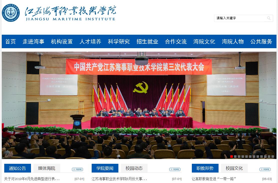 江蘇海事職業(yè)技術(shù)學(xué)院是江蘇省人民政府批準(zhǔn)建立的全日制普通高等院校、江蘇省示范性高職院校、江蘇省高水平高職院校建設(shè)單位。學(xué)校初創(chuàng)于1951年,是新中國建立后,由國家交通部和中國海員工會聯(lián)合舉辦的第一所專門培養(yǎng)遠(yuǎn)洋船員的學(xué)校。辦學(xué)近70年來,學(xué)校幾經(jīng)更名、轉(zhuǎn)隸、并校和升格,專業(yè)得到全面拓展,辦學(xué)規(guī)模不斷擴大,辦學(xué)條件全面提升,內(nèi)涵建設(shè)持續(xù)深化,先后培養(yǎng)出近13萬名優(yōu)秀校友,遍布全球,涌現(xiàn)出著名航海家陳宏澤、中遠(yuǎn)海運集團副總裁葉偉龍、中國國家海事局局長曹德勝、南京市人大常委會主任陳紹澤、中國最年輕的高級船長辜忠東等一大批精英翹楚。學(xué)校也被譽為“新中國優(yōu)秀航運人才的搖籃”。學(xué)校坐落于著名航海家鄭和七下西洋的策源地,鐘靈毓秀、虎踞龍蟠的古城南京,擁有江寧、秦淮和板橋三個校區(qū),占地總面積超過1500畝。江寧校區(qū)位于景色秀麗的方山腳下,地處江寧大學(xué)城核心區(qū)域,與中國藥科大學(xué)、南京醫(yī)科大學(xué)、南京曉莊學(xué)院、中國傳媒大學(xué)南廣學(xué)院等知名高校比鄰而居,共享多重教育資源。秦淮校區(qū)坐擁南京市繁華商業(yè)街區(qū),交通便捷、商賈云集,已建成江蘇省高職院校屈指可數(shù)的省級大學(xué)科技園,園區(qū)集教育、科研、技術(shù)轉(zhuǎn)移轉(zhuǎn)化與企業(yè)孵化等功能于一身。板橋校區(qū)地處長江之濱,擁有全國海航類院校唯一的專用實習(xí)船碼頭和停泊實習(xí)船,國家發(fā)改委立項的長三角現(xiàn)代航運技術(shù)綜合實訓(xùn)基地,規(guī)劃5.4萬平方的產(chǎn)教融合科技園正在加快建設(shè)。圍繞服務(wù)現(xiàn)代航運產(chǎn)業(yè)鏈,學(xué)校構(gòu)建了航海技術(shù)、輪機工程與新能源應(yīng)用、船舶與海工裝備制造、船港電氣與智能控制、航運經(jīng)濟與管理等5個為主體的專業(yè)群;對接新一代信息技術(shù)、現(xiàn)代文化旅游等高端服務(wù)業(yè)和戰(zhàn)略新興產(chǎn)業(yè),優(yōu)化升級信息技術(shù)與人工智能、文旅與設(shè)計等2個為兩翼的專業(yè)群,適度拓展海洋休閑、海洋金融以及新能源、新材料、人工智能等相關(guān)領(lǐng)域?qū)I(yè)方向,形成“一體兩翼、水陸并舉、集群發(fā)展”的專業(yè)布局。學(xué)校共44個專業(yè),其中央財重點支持建設(shè)專業(yè)、全國職業(yè)院校交通運輸大類示范專業(yè)點、省級品牌和骨干專業(yè)、省級品牌培育專業(yè)達到18個,省重點專業(yè)群4個。建有航海技術(shù)學(xué)院、輪機工程學(xué)院、船舶與海洋工程學(xué)院、電氣與自動化工程學(xué)院、經(jīng)濟管理學(xué)院、信息工程學(xué)院、人文藝術(shù)學(xué)院、國際教育學(xué)院、繼續(xù)教育學(xué)院以及基礎(chǔ)教學(xué)部、思想政治理論課教學(xué)研究部、體育教學(xué)部等9院3部,全日制在校生近12000人。學(xué)校共有教職員工712人,其中專任教師512人。擁有高級以上職稱的教師162 人,占專任教師比例達31.6%;擁有博士學(xué)歷的教師48人,“雙師型”教師占專任教師比例達92%。學(xué)校擁有全國技術(shù)能手1人、交通運輸職業(yè)教育教學(xué)名師3人、“333高層次人才”8人、“青藍工程”人才27人、江蘇工匠1人、江蘇省有突出貢獻青年專家1人、萬名旅游英才計劃3人,擁有江蘇省“五一”勞動模范1人、南京市勞動模范1人、江蘇省高校輔導(dǎo)員年度人物獎及提名獎2人。學(xué)校擁有國家級教學(xué)資源庫1個、省級優(yōu)秀教學(xué)團隊2個,榮獲國家級教學(xué)成果獎二等獎2項,省級教學(xué)成果獎特等獎2項,一等獎7項,交通運輸部教學(xué)成果獎特等獎1項。擁有江蘇省技能大師工作室、南京市技能大師工作室、航海技能培養(yǎng)大師邦良工作室,航海類教師持高級船員適任證書近107人,其中遠(yuǎn)洋船長、輪機長32名,位居全國航海類高職院校首位。學(xué)校面向全國28個省、市、自治區(qū)招生,有提前自主招生、中高職對口招生、高考文化統(tǒng)招三個招生口徑,有海軍士官委托培養(yǎng)、藝術(shù)類(美術(shù))、4+0(本科)、3+2(專本銜接)、3+3(中高職銜接)、中外合作辦學(xué)、海外本科直通車等7種招生類型。畢業(yè)就業(yè)率連續(xù)多年保持在98%以上,協(xié)議就業(yè)率一直保持在95%以上。畢業(yè)生就業(yè)競爭力、半年后薪資水等核心指標(biāo)一直處于全省高職院前列。航海類、船舶制造類、航運經(jīng)濟類、港口設(shè)備類畢業(yè)生常年供不應(yīng)求。航海技術(shù)、輪機工程、船舶電氣三個專業(yè)畢業(yè)生供需比近年達1:8,企業(yè)一生難求。近年來,學(xué)生獲得省級及以上各類技能大賽獎勵375項,其中職業(yè)院校技能大賽國賽一等獎3項、二等獎11項、省賽一等獎19項,“挑戰(zhàn)杯”全國職業(yè)學(xué)校創(chuàng)新創(chuàng)效創(chuàng)業(yè)大賽特等獎1項,一等獎2項,全國海洋航行器設(shè)計與制作大賽特等獎1項、一等獎4項,江蘇省“創(chuàng)青春”創(chuàng)業(yè)大賽金獎1項,學(xué)生在全國海員技能大比武中,分別取得團體冠軍、季軍、亞軍的優(yōu)異成績,是全國唯一始終處于第