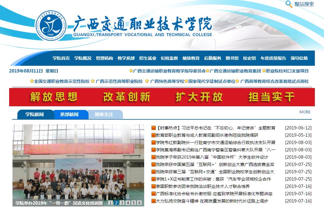廣西交通職業(yè)技術(shù)學(xué)院前身為創(chuàng)建于1958年的國家重點(diǎn)中專廣西交通學(xué)校,隸屬于廣西壯族自治區(qū)交通運(yùn)輸廳。2002年經(jīng)自治區(qū)人民政府批準(zhǔn),升格為公辦全日制普通高等職業(yè)院校,是廣西唯一一所培養(yǎng)交通運(yùn)輸專門人才的高等學(xué)校,榮獲教育部高職高專人才培養(yǎng)工作水平評估優(yōu)秀院校、全國交通職業(yè)教育示范性院校、國家現(xiàn)代學(xué)徒制試點(diǎn)單位、廣西高等教育綜合改革首批試點(diǎn)高校、廣西示范性高等職業(yè)院校、廣西首批特色高校建設(shè)單位、廣西高端應(yīng)用型本科人才聯(lián)合培養(yǎng)試點(diǎn)單位、廣西唯一軍隊(duì)士官直招定點(diǎn)培養(yǎng)院校。學(xué)院占地面積1200多畝,分園湖和四塘兩個(gè)校區(qū)?,F(xiàn)有各類在校學(xué)生13000余人,學(xué)院設(shè)有路橋工程系、汽車工程系、管理工程系、信息工程系、建筑工程系、航海工程系,以及基礎(chǔ)教學(xué)部、思想政治理論課教學(xué)部等教學(xué)部門,開設(shè)有道路橋梁工程技術(shù)、汽車檢測與維修技術(shù)、物流管理、船舶工程技術(shù)等55個(gè)高職專業(yè)和方向。學(xué)院積極建設(shè)交通特色鮮明的品牌專業(yè),其中自治區(qū)級專業(yè)教學(xué)改革與建設(shè)試點(diǎn)專業(yè)2個(gè)、廣西高校優(yōu)質(zhì)專業(yè)7個(gè);交通土建類專業(yè)和物流管理類專業(yè)榮獲“十二五”交通運(yùn)輸部、財(cái)政部交通運(yùn)輸教育與培訓(xùn)重點(diǎn)建設(shè)項(xiàng)目;道路橋梁工程技術(shù)等9個(gè)專業(yè)分別榮獲廣西高等學(xué)校特色專業(yè)及課程一體化特色、優(yōu)勢、急需專業(yè)建設(shè)項(xiàng)目;港口工程技術(shù)等2個(gè)專業(yè)獲教育部、財(cái)政部關(guān)于支持高等職業(yè)學(xué)校提升專業(yè)服務(wù)產(chǎn)業(yè)發(fā)展能力建設(shè)項(xiàng)目。同時(shí),學(xué)院擁有中央財(cái)政支持建設(shè)的國家級示范性實(shí)訓(xùn)基地4個(gè),交通運(yùn)輸部示范性實(shí)訓(xùn)基地2個(gè),自治區(qū)級示范性實(shí)訓(xùn)基地8個(gè),校外實(shí)習(xí)、實(shí)訓(xùn)基地200多個(gè)。學(xué)院還建設(shè)有2門國家級精品課程、15門自治區(qū)級精品課程。學(xué)院打造了一支專兼結(jié)合的師資隊(duì)伍,擁有專任教師556人,企業(yè)兼職教師112人?,F(xiàn)有國家級教學(xué)團(tuán)隊(duì)1個(gè)、自治區(qū)級教學(xué)團(tuán)隊(duì)4個(gè)、廣西創(chuàng)新人才培養(yǎng)教學(xué)團(tuán)隊(duì)2個(gè)、國家級教學(xué)名師1人、交通運(yùn)輸部吳?!袢A優(yōu)秀教師3人、全國交通職業(yè)教育專業(yè)帶頭人3人、廣西優(yōu)秀專家1人、廣西高校教學(xué)名師3人、“八桂名師”1人、廣西職教先進(jìn)個(gè)人2人、“知識型職工標(biāo)兵”2人、“廣西高校優(yōu)秀人才資助計(jì)劃”教師7人、交通運(yùn)輸青年科技英才1人。學(xué)院積極推進(jìn)校企合作、工學(xué)結(jié)合,大力提高學(xué)生職業(yè)技能,在全區(qū)率先導(dǎo)入豐田汽車公司T-TEP(TOYOTA TECHNICAL EDUCATION PROGRAM)項(xiàng)目,成為廣西第一家成立豐田T-TEP學(xué)院的院校。積極探索“訂單式”人才培養(yǎng)模式,與廣西八桂工程監(jiān)理咨詢有限公司、一汽豐田公司、小松工程機(jī)械廣西公司、廣西玉柴物流集團(tuán)有限公司、廣西潤建通信發(fā)展有限公司等知名企業(yè)合作開辦企業(yè)冠名的“八桂班”、“豐田班”、“小松班”、“玉柴班”、“潤建班”等校企合作訂單班,進(jìn)一步促進(jìn)人才培養(yǎng)與行業(yè)、企業(yè)實(shí)際需求的有效銜接,切實(shí)加強(qiáng)學(xué)生技能素質(zhì)的培養(yǎng),提高人才培養(yǎng)質(zhì)量。2015年獲批成為全國首批現(xiàn)代學(xué)徒制試點(diǎn)單位,2016年獲批成立交通運(yùn)輸職業(yè)教育教學(xué)指導(dǎo)委員會(huì)。同時(shí),學(xué)院積極開展對外交流,先后與加拿大、越南、英國、臺(tái)灣等國家和地區(qū)開展了合作辦學(xué)項(xiàng)目,吸收國外先進(jìn)的教學(xué)、管理理念和辦學(xué)經(jīng)驗(yàn),不斷拓寬人才培養(yǎng)的國際視野,2015年獲批成為廣西職業(yè)教育國際合作與交流改革試點(diǎn)院校。學(xué)院堅(jiān)持立足交通,服務(wù)廣西,面向東南亞,主動(dòng)為廣西公路建設(shè)、公路養(yǎng)護(hù)、汽車維修、汽車營銷、交通網(wǎng)絡(luò)技術(shù)、交通運(yùn)輸、現(xiàn)代物流等生產(chǎn)、建設(shè)、管理、服務(wù)第一線培養(yǎng)專業(yè)知識扎實(shí),實(shí)踐能力強(qiáng),具有良好職業(yè)道德的下得去、留得住、用得上、干得好的高技能應(yīng)用型人才。學(xué)院以準(zhǔn)確的辦學(xué)定位、明確的辦學(xué)方向、符合市場需求的教學(xué)模式,主動(dòng)贏得了就業(yè)市場。近年來,學(xué)院畢業(yè)生平均就業(yè)率達(dá)94%,學(xué)院自2003年以來連續(xù)14年被自治區(qū)教育廳評為廣西高校畢業(yè)生就業(yè)工作先進(jìn)集體。60年風(fēng)雨兼程,學(xué)院逐漸凝練形成“依托交通行業(yè)優(yōu)勢,建設(shè)交通特色專業(yè),突出職業(yè)能力培養(yǎng),打造交通人才搖籃”的辦學(xué)特色,成為了廣西交通運(yùn)輸高