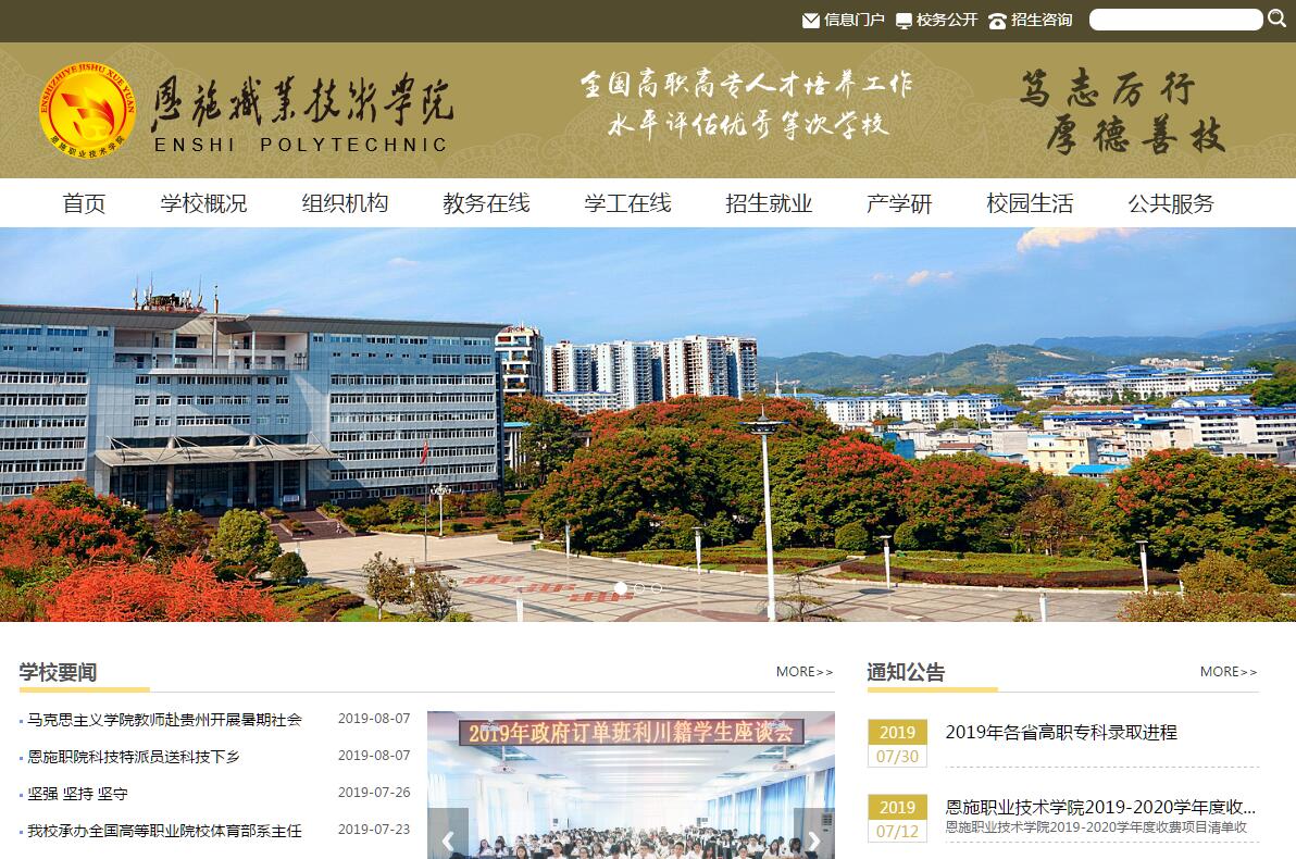 恩施職業(yè)技術(shù)學(xué)院于2000年8月經(jīng)湖北省人民政府批準(zhǔn),由原恩施教育學(xué)院、恩施財(cái)校、恩施農(nóng)校、恩施工校、恩施林校和恩施供銷學(xué)校合并組建而成,而后,州機(jī)電工程學(xué)校、州民族體校、州藝術(shù)學(xué)校、州交通技工學(xué)校相繼并入。學(xué)院的辦學(xué)歷史可追溯到1937年,是培養(yǎng)黨政干部的搖籃、培養(yǎng)企業(yè)家的搖籃、培養(yǎng)工程師的搖籃。學(xué)院所在地——湖北恩施,位于神奇的北緯30°,有“世界硒都”“中國硒谷”之稱,是武陵山區(qū)交通樞紐,航班直達(dá)國內(nèi)主要城市,41對動車開往全國各地,境內(nèi)通車高速公路和鐵路8條,在建、規(guī)劃高速公路和鐵路14條。學(xué)院是教育部高職高專人才培養(yǎng)優(yōu)秀學(xué)校、湖北省示范高職院校、中國少數(shù)民族教育學(xué)會常務(wù)理事單位,榮獲“國際硒茶人才搖籃” 殊榮。學(xué)院占地近千畝,建筑面積30萬平方米。擁有“數(shù)控技術(shù)”“計(jì)算機(jī)及應(yīng)用”“生物技術(shù)”“建筑工程技術(shù)”四個國家職業(yè)教育實(shí)訓(xùn)基地和“旅游管理”“畜牧獸醫(yī)”“生物制藥”三個省級示范性實(shí)訓(xùn)基地,教學(xué)儀器設(shè)備總值過億元。學(xué)院現(xiàn)有教職工1000余人,聘請國務(wù)院參事劉志仁、中國科學(xué)院院士楊叔子、中國工程院院士陳煥春等近200位知名專家、學(xué)者、企業(yè)家擔(dān)任客座教授;教師中具有碩士以上學(xué)位127人(其中博士6人),教授、副教授180人,享受國務(wù)院津貼專家1人、湖北名師1人、全國農(nóng)業(yè)職教名師1人。聘有8名楚天技能名師。學(xué)院下設(shè)經(jīng)濟(jì)管理學(xué)院、機(jī)電工程學(xué)院、信息工程學(xué)院、生物工程學(xué)院、建筑工程學(xué)院、人文教育學(xué)院、旅游管理學(xué)院、體育學(xué)院等8個二級學(xué)院和馬克思主義學(xué)院、繼續(xù)教育學(xué)院、公共課部、中等職業(yè)教育部?,F(xiàn)開設(shè)有旅游管理(國家級專業(yè)示范點(diǎn)、省級品牌專業(yè))、畜牧獸醫(yī)(省級品牌專業(yè))、會計(jì)(省級特色專業(yè))、園林技術(shù)(省級特色專業(yè))、建筑工程技術(shù)(省級特色專業(yè))、機(jī)電一體化技術(shù)(省級特色專業(yè))、小學(xué)教育、學(xué)前教育、計(jì)算機(jī)應(yīng)用、數(shù)控技術(shù)、藥品質(zhì)量與安全等36個專業(yè),面向浙江、海南、四川、湖南、安徽等25個?。ㄊ小⒆灾螀^(qū))招生,在校學(xué)生12000多人。學(xué)院以習(xí)近平新時代中國特色社會主義思想為指導(dǎo),以創(chuàng)建中國特色高水平高職院校和專業(yè)為目標(biāo),緊扣全面推進(jìn)高職教育創(chuàng)新發(fā)展三年行動計(jì)劃和教學(xué)工作診斷與改進(jìn)兩個抓手,以立德樹人為根本承擔(dān)起為經(jīng)濟(jì)社會發(fā)展提供人才支撐、以科研為引領(lǐng)承擔(dān)起州域經(jīng)濟(jì)社會發(fā)展的智力支撐、以非遺基地為載體承擔(dān)起民族文化傳承使命,穩(wěn)步推進(jìn)辦學(xué)模式改革實(shí)現(xiàn)更加開放的辦學(xué)、深化人才培養(yǎng)模式改革實(shí)現(xiàn)更加深度的校企協(xié)同育人、促進(jìn)教學(xué)模式改革實(shí)現(xiàn)更加滿意的教學(xué)效果、加大內(nèi)部體制機(jī)制改革實(shí)現(xiàn)更加高效的管理等四項(xiàng)改革,扎實(shí)推進(jìn)優(yōu)化生源結(jié)構(gòu)、建設(shè)品牌特色專業(yè)、加強(qiáng)基礎(chǔ)設(shè)施、師資隊(duì)伍、黨的建設(shè)五大工程,堅(jiān)持質(zhì)量立院、特色興院、人才強(qiáng)院、依法治院的辦學(xué)方略,深化產(chǎn)教融合、校企合作,實(shí)現(xiàn)高質(zhì)量發(fā)展,為辦好人民滿意的高等職業(yè)教育而不懈奮斗!