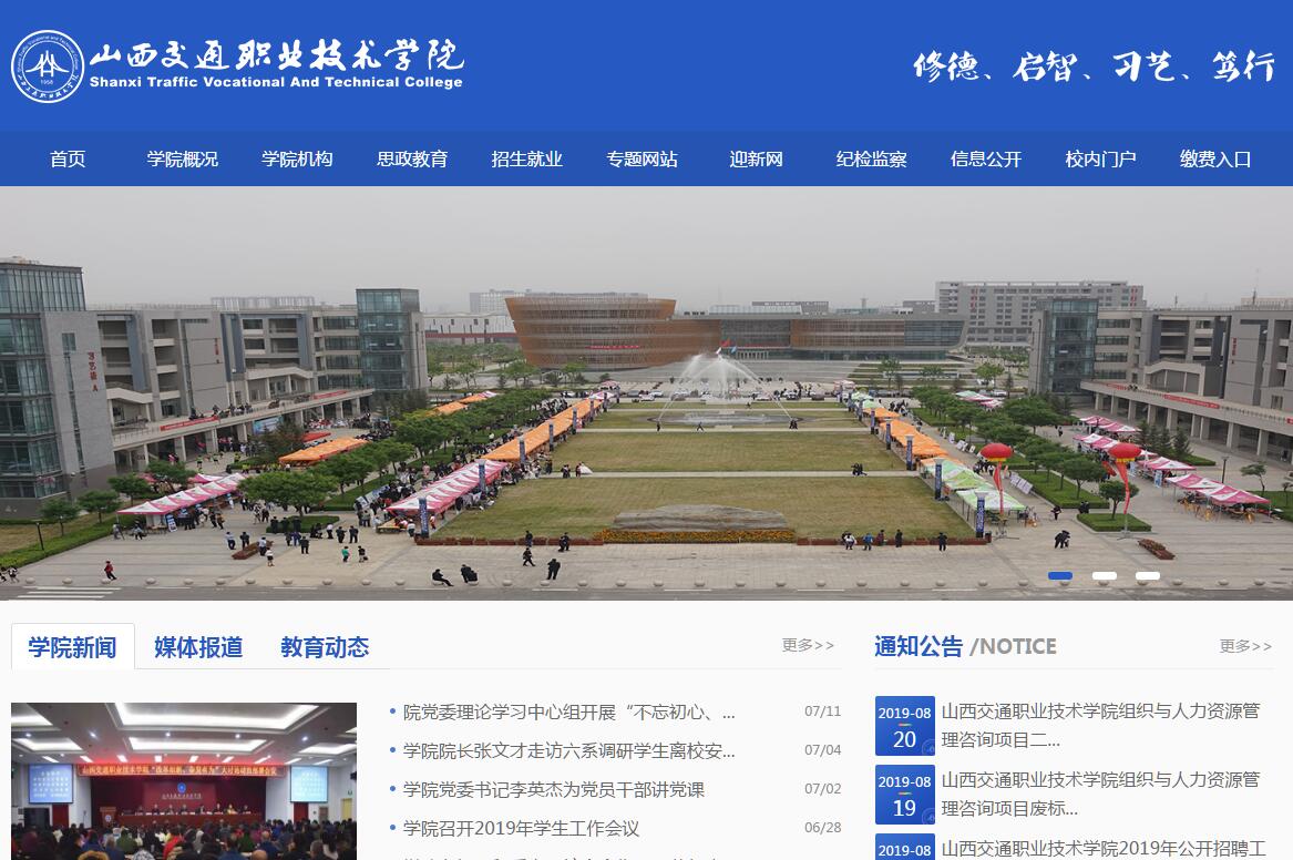 山西交通職業(yè)技術(shù)學院創(chuàng)建于 1958 年,隸屬于山西省交通運輸廳 , 業(yè)務(wù)上受山西 省教育廳指導(dǎo),是山西省唯一一所公 辦交通類高等職業(yè)技術(shù)院校。學院擁有武宿、文華兩個校區(qū),總占地 808 畝,建筑面積 37.6 萬平米,教學科 研儀器設(shè)備總值 1.11 億,在校 生 8258 人。學院設(shè)有公路工程系、工程管理系、車輛 工程系、經(jīng)濟管理系、信息工程系、工程機械系等 6 個教學系 32 個專業(yè),涵蓋了公路、 汽車、工程機械、交通網(wǎng)絡(luò)、計算機、交通經(jīng)濟、物流、軌道交通等交通運輸領(lǐng)域,擁 有 165 個校內(nèi)實訓(xùn)室, 173 個校外實習就業(yè)基地,與中鐵、中鐵建、中交、山西路橋、 太原地鐵、寶馬、豐田、大眾、沃爾沃、三一重工等中外企業(yè)建立了穩(wěn)固的校企合作基地。 學院 2012 年跨入山西省示范性高職院校行列; 2013 年成為全國畢業(yè)生就業(yè)典型 經(jīng)驗高校 50 強; 2014 年成為全國第一批節(jié)約型公共機構(gòu)示范單位; 2016 年成為全 國職業(yè)院校教學診斷與改進工作試點院校; 2017 年成為全國教育信息化試點優(yōu)秀單位、 教育部國防教育特色學校,獲得全省交通運輸系統(tǒng) “ 五一勞動獎狀 ” ;學院連續(xù) 15 年 獲得省交通運輸廳 “ 文明和諧單位標兵 ” 稱號; 2018 年被山西省教育廳認定為山西省 職業(yè)教育優(yōu)質(zhì)高職院校。學院密切關(guān)注行業(yè)和社會需求,在辦學上突出交通行業(yè)和高等職業(yè)技術(shù)教育特色, 注重學生全面素質(zhì)教育,突出培養(yǎng)學生創(chuàng)新能力和實踐能力,畢業(yè)生因愛交通、好品行、 高技能、有品位、高素質(zhì)而深受用人單位歡迎。建校 60 年來,學院為交通運輸行業(yè)培 養(yǎng)了 3 萬多名畢業(yè)生 , 畢業(yè)生歷年就業(yè)率均保持在 92% 以上,處于全省同類院校前列。