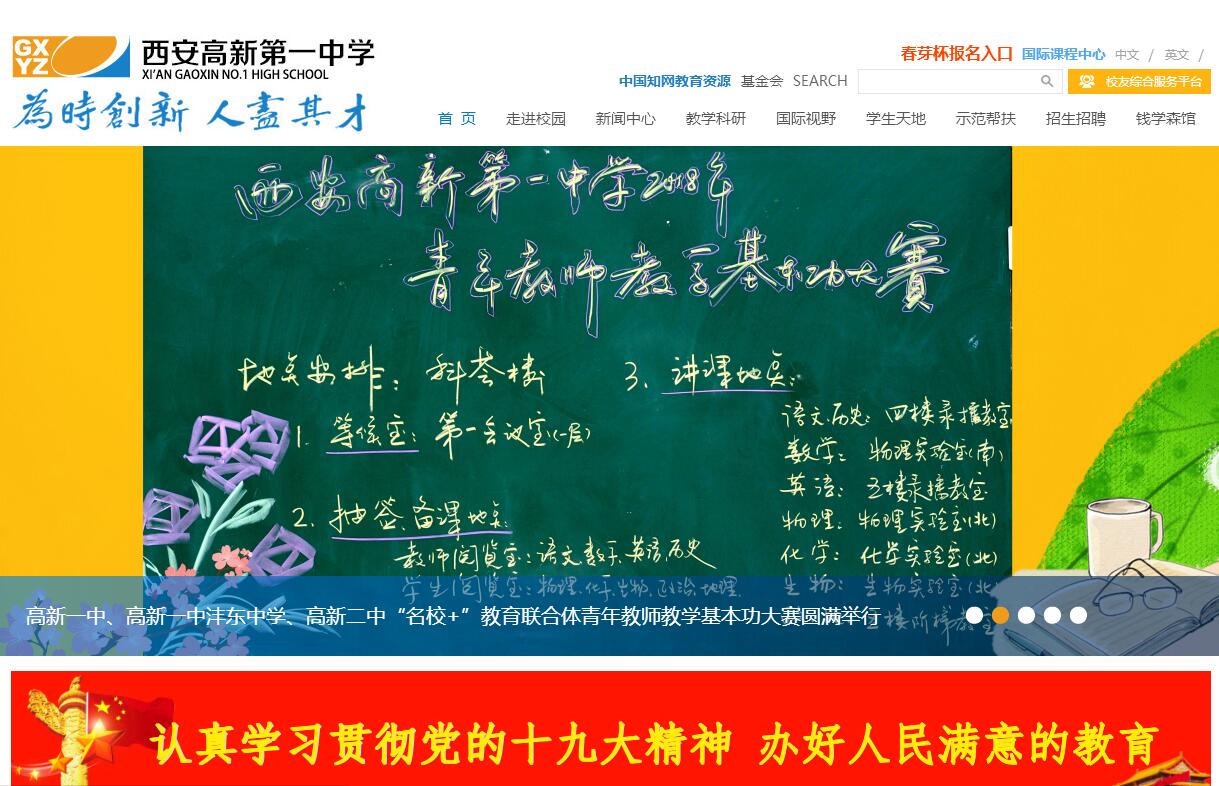 西安高新第一中學(xué)(簡稱西安高新一中)創(chuàng)辦于1995年,是西安高新技術(shù)產(chǎn)業(yè)開發(fā)區(qū)為了改善投資環(huán)境興建的民辦學(xué)校。1998年學(xué)校被批準(zhǔn)為省級重點(diǎn)中學(xué),2009年學(xué)校被批準(zhǔn)為陜西省首批示范高中?,F(xiàn)在,西安高新第一中學(xué)是一所普通高中學(xué)校,學(xué)校有高中部和南校區(qū)兩個校區(qū)。學(xué)校秉承“以人為本,以學(xué)生為中心,面向世界,面向未來,培養(yǎng)高素質(zhì)合格人才”的辦學(xué)理念,秉持“為時創(chuàng)新,人盡其才”的校訓(xùn),創(chuàng)立了陜西省首個“國際課程班”和“錢學(xué)森實(shí)驗(yàn)班”,收獲了豐碩成果。品德學(xué)識同步卓越 學(xué)校始終堅(jiān)持“教學(xué)寓德,活動育德,實(shí)踐養(yǎng)德,評價導(dǎo)德,管理促德”的德育工作原則,以“體驗(yàn)式”德育為特色,打造認(rèn)知、情感行為三位一體學(xué)校德育模式,全面提升學(xué)生的綜合素質(zhì)。文化立魂師德為先 23年的辦學(xué)實(shí)踐,高新一中凝練出“敬業(yè)奉獻(xiàn)、愛生如子、崇尚科學(xué)、追求卓越”的學(xué)校精神,它是學(xué)校師德的魂。學(xué)校提倡“像親人一樣相處,像新兵一樣工作”,多年的實(shí)踐,在高新一中達(dá)成了一個共識:人格需要人格的培養(yǎng);感情需要感情的投入;智慧需要智慧的啟迪;精神需要精神的感染。學(xué)校有2/3的老師多次參加國際教育培訓(xùn),近年來學(xué)校自主培養(yǎng)省、市級的名師、學(xué)科帶頭人和教學(xué)能手70人,先后建立“陜西省名師工作室、學(xué)科帶頭人工作坊、教學(xué)能手工作站”21個,成員189人,在全省的教師隊(duì)伍建設(shè)中起到了帶動作用。創(chuàng)新人才持續(xù)發(fā)展 學(xué)校提出了“有德性,會合作,敢擔(dān)當(dāng),善創(chuàng)新”的育人目標(biāo),圍繞育人目標(biāo),形成基礎(chǔ)性、拓展性和創(chuàng)造性三個層次課程體系。學(xué)生領(lǐng)導(dǎo)力課程,“名家講堂”系列課程,勵志課程,走進(jìn)錢學(xué)森校本課程,國家安全教育課程,研學(xué)旅行課程,生涯教育課程等開放的、高品質(zhì)的育人課程,為學(xué)生當(dāng)下和將來的學(xué)習(xí)、生活和個人發(fā)展做好了準(zhǔn)備,讓他們在面對選擇時更有信心,更具有獨(dú)立的思想、獨(dú)立的人格。國際接軌富有特色 學(xué)校用國際意識和視野來把握和發(fā)展教育,學(xué)校目前已與4個國家的9所學(xué)校建立姊妹校關(guān)系,在國際視野課程學(xué)習(xí)中,每年有300余名學(xué)生在國外進(jìn)行為期半年的交流學(xué)習(xí)或進(jìn)行短期社會實(shí)踐活動。學(xué)校與美國布魯克蘭中學(xué)、賽格斯中學(xué)成立項(xiàng)目組,通過互派交流生,共同進(jìn)行創(chuàng)新人才培養(yǎng)的合作研究;與美國肯塔基大學(xué)合作,進(jìn)行學(xué)生英文閱讀與寫作研究;與美國麻省理工學(xué)院合作,每年選派研究生來校對學(xué)生進(jìn)行創(chuàng)新實(shí)踐及實(shí)驗(yàn)培訓(xùn)。教育教學(xué)成果突出 建校23年來,學(xué)校培養(yǎng)了15名高考陜西省文理科第一名,總數(shù)位居陜西省第一;近10年,學(xué)校在全國五大學(xué)科競賽中共獲得34枚金牌,金牌總數(shù)位居陜西省第一。近800名學(xué)生考入北大、清華,每年都有百余名學(xué)子從這里走向世界,考入英國劍橋大學(xué)、牛津大學(xué),美國常春藤名校賓夕法尼亞大學(xué)、康奈爾大學(xué)等世界排名前100位的高校。學(xué)校充分發(fā)揮以自身發(fā)展帶動薄弱學(xué)校同步前進(jìn)和共同提高的效能,對薄弱學(xué)校的對口幫扶的投入也逐年增加,真正起到了優(yōu)質(zhì)教育資源的輻射和示范作用。