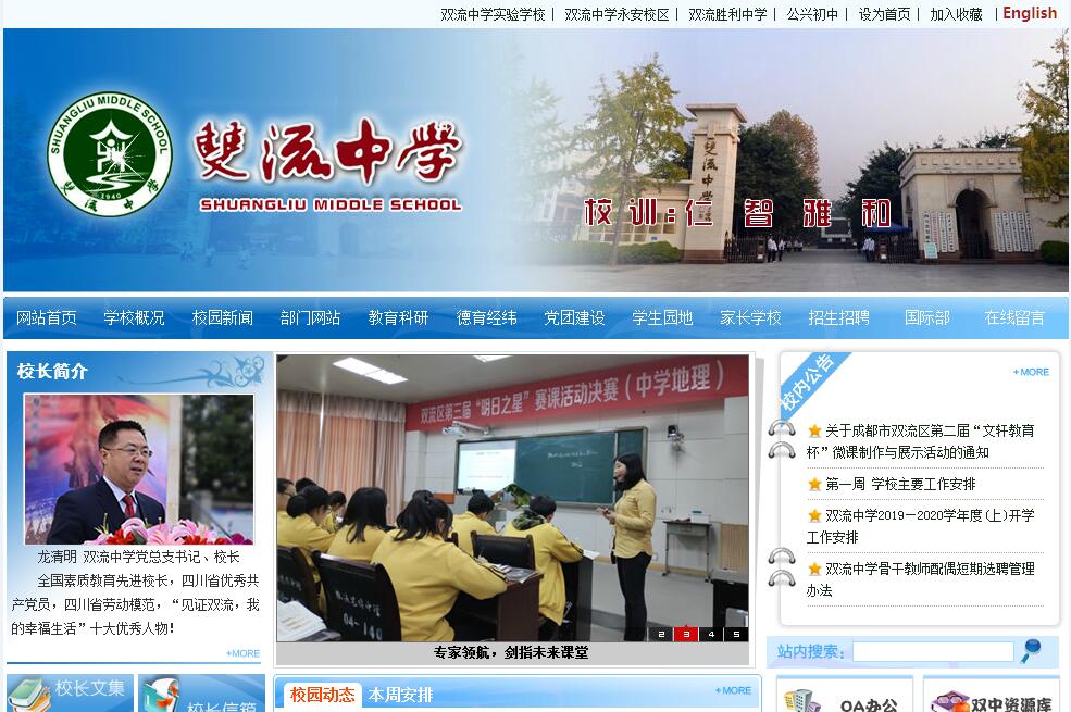 四川省雙流中學(xué)具有悠久的辦學(xué)歷史、豐富的辦學(xué)經(jīng)驗(yàn)。1940年由時(shí)任四川省監(jiān)理主席蔣中正先生批建,國(guó)民黨元老于右任先生題寫校名;原國(guó)民黨軍事委員會(huì)副委員長(zhǎng)、愛國(guó)將領(lǐng)馮玉祥曾在此作抗日動(dòng)員演講,并向青年學(xué)生面贈(zèng)《學(xué)生救國(guó)問答》一書。1996年成為省級(jí)重點(diǎn)中學(xué),2002年成為國(guó)家級(jí)示范校,2009年,“四川省雙流中學(xué)教育集團(tuán)”成立。2013年,成為首批“四川省一級(jí)示范性普通高中”。2016年,成為成都市首批領(lǐng)航高中項(xiàng)目學(xué)校。四川省雙流中學(xué)有優(yōu)異的辦學(xué)業(yè)績(jī)。近年來,雙中共為國(guó)內(nèi)外高校輸送合格新生20000余名,其中為清華、北大、復(fù)旦、人大等一流學(xué)府輸送新生1800余名,上本科線人數(shù)年年超過千人,位居成都市同類學(xué)校前茅,培養(yǎng)出省、市、縣高考冠軍17名。四川省雙流中學(xué)具有優(yōu)美的校園環(huán)境、溫馨高雅的校園文化、現(xiàn)代化的教學(xué)設(shè)施。目前,學(xué)校占地130余畝,建筑面積79587.6平方米,8跑道400米塑膠運(yùn)動(dòng)場(chǎng)1個(gè),圖書館面積1192 平方米,藏書126132冊(cè),多功能活動(dòng)廳2992 平方米,實(shí)驗(yàn)室及功能室面積6000余平方米。教室80間,每間教室均配備電子白板及多媒體系統(tǒng),有高規(guī)格的學(xué)生公寓和學(xué)生食堂。四川省雙流中學(xué)現(xiàn)有在校學(xué)生3500人,70余個(gè)教學(xué)班,在職教職工381人,其中:全國(guó)優(yōu)秀教師1人,省優(yōu)秀教師4 人,特級(jí)教師(校長(zhǎng))7人,高級(jí)教師200多人,各級(jí)各類名師200余人。根據(jù)學(xué)校文化頂層設(shè)計(jì),為實(shí)現(xiàn)育人目標(biāo),學(xué)校提出打造“精英教育”特色品牌,建設(shè)符合雙中育人目標(biāo)的“一個(gè)目標(biāo)、二元導(dǎo)學(xué)、三分課堂、四類課程”特色課程體系。“一個(gè)目標(biāo)”,讓課程更好地服務(wù)于學(xué)生成長(zhǎng)。通過國(guó)家課程校本化,校本課程多元化,培養(yǎng)學(xué)生的精英意識(shí),讓學(xué)生最終成長(zhǎng)為具有意志力、領(lǐng)導(dǎo)力、記憶力、領(lǐng)悟力、想象力和創(chuàng)造力的社會(huì)精英?!岸獙?dǎo)學(xué)”,以課堂為陣地,提高教師教學(xué)針對(duì)性——目標(biāo)、活動(dòng)、評(píng)價(jià),增強(qiáng)學(xué)生學(xué)習(xí)參與度——預(yù)習(xí)、互動(dòng)、訓(xùn)練。學(xué)生不但學(xué)有目標(biāo),學(xué)有路徑,學(xué)有方法,學(xué)有信心,而且最終實(shí)現(xiàn)老師“魚漁雙授”,學(xué)生“魚漁雙收”的目的。“三分課堂”,分層設(shè)班、分類走班、分疑網(wǎng)班。全校各年級(jí)實(shí)施走班制教學(xué)(分層設(shè)班和分類走班);構(gòu)建好分疑網(wǎng)班平臺(tái)(學(xué)校自主開發(fā),現(xiàn)已上傳300多個(gè)微課課件),真正做到提高教師教學(xué)的針對(duì)性,增強(qiáng)學(xué)生學(xué)習(xí)的參與度?!八念愓n程”,統(tǒng)籌國(guó)家、地方、學(xué)校三級(jí)課程,構(gòu)建學(xué)校以“修身立德(仁)”“認(rèn)知素養(yǎng)(智)”“氣質(zhì)涵養(yǎng)(雅)”“和諧共融(和)”為中心的課程體系。學(xué)??晒W(xué)生選擇的校本課程有100多門。學(xué)校還將繼續(xù)開發(fā)優(yōu)秀校本課程,通過專家審核,確定為校本必修課程??傊ㄟ^國(guó)家課程校本化,校本課程多元化,培養(yǎng)學(xué)生的精英意識(shí),讓學(xué)生最終成長(zhǎng)為具有意志力、領(lǐng)導(dǎo)力、記憶力、領(lǐng)悟力、想象力和創(chuàng)造力的社會(huì)精英。憑借扎實(shí)的教學(xué)功底、穩(wěn)健的教學(xué)風(fēng)格和突出的教學(xué)成績(jī),四川省雙流中學(xué)獲得了家長(zhǎng)的肯定和各級(jí)教育部門的高度認(rèn)可。四川省雙流中學(xué)先后榮獲中國(guó)百?gòu)?qiáng)中學(xué)、全國(guó)基礎(chǔ)教育名校、國(guó)家級(jí)體育傳統(tǒng)項(xiàng)目學(xué)校、建國(guó)六十周年四川省十大名牌院校、中國(guó)師德建設(shè)示范單位、21世紀(jì)中國(guó)素質(zhì)教育先進(jìn)示范學(xué)校、全國(guó)學(xué)校文化建設(shè)金獎(jiǎng)單位、中國(guó)西部名校、全國(guó)巾幗文明崗、全國(guó)群眾體育先進(jìn)單位、全國(guó)優(yōu)秀傳統(tǒng)文化進(jìn)校園項(xiàng)目試點(diǎn)學(xué)校、四川省校本研修示范學(xué)校、成都市教師發(fā)展基地學(xué)校等殊榮。由于在普通高中教育教學(xué)工作中成績(jī)突出,連續(xù)幾年被成都市教育局評(píng)為“優(yōu)秀學(xué)校”。在校訓(xùn)“仁”、“智”、“雅”、“和”的引領(lǐng)下,四川省雙流中學(xué)實(shí)行“二元導(dǎo)學(xué)”,致力于“雙商教育”。同時(shí),根據(jù)國(guó)家要求、雙中特色和學(xué)生需求穩(wěn)步推進(jìn)新課改,不斷地加強(qiáng)課程建設(shè)。為了讓每一個(gè)孩子更全面地發(fā)展,四川省雙流中學(xué)先后開設(shè)了“職業(yè)生涯規(guī)劃”、“日語(yǔ)”、“小吃制作”、“《紅樓夢(mèng)》欣賞”、“茶藝”、“笛簫吹奏”等上百門精品選修課程,同時(shí)還組織了舞蹈社、話劇社、漢服社、動(dòng)漫社等各具特色