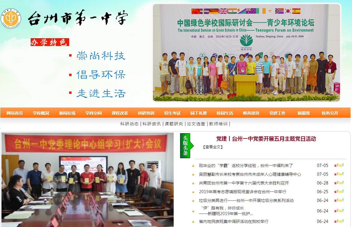 浙江省臺州市第一中學是全國首批STEM教育領航學校、國家級綠色學校、全國特色學校,首批浙江省一級普通高中特色示范學校,省文明學校。學校創(chuàng)建于1924年,前身是海門慈幼院小學。1949年,更名為私立海門中學,1952年增設高中。1956年1月,海門中學由私立改為公立,校名定為“浙江省海門中學”。上世紀八十年代,更名為“椒江第一中學”。 2005年7月,更名為臺州市第一中學。學校現(xiàn)有本部和新疆班兩個校區(qū),本部占地面積252畝,新疆班校區(qū)占地面積20畝,校舍建設面積110000多平方米?,F(xiàn)有76個教學班,學生3081人。學校擁有省特級教師5人,正高級教師2人,中學高級教師155人,臺州市名師名校長19人;獲得國家級獎勵30余人次、省級獎勵70余人次、臺州市級獎勵200多人次,是臺州市師資力量最雄厚的普通高中之一。學校教育理念先進,教學管理嚴謹,教學質量領先,辦學聲譽遠揚。學校高考成績連年攀升,高考上重點分數(shù)線人數(shù)連續(xù)十四年保持增長,越居臺州市前列。2018年高考上一類線631人,其中7人被北大清華錄取,還有一大批優(yōu)秀學生跨進港大、復旦、交大和浙大等全國名牌大學的校門??萍冀逃癸@辦學特色,全面提高了學校教學質量。編著出版了科技教育書籍7本,學??萍冀逃晒潍@得浙江省基礎教育教學成果一等獎,教育部全國首屆基礎教育教學成果二等獎。學生科技成果豐碩,創(chuàng)新大賽成績優(yōu)異,是浙江省青少年科技創(chuàng)新大賽的“獲獎大戶”。在全國青少年科技創(chuàng)新大賽中獲一等獎8項,二等獎19項,三等獎7項;在浙江省青少年科技創(chuàng)新大賽中獲獎93項,其中省一等獎55項,是全省獲獎檔次最高、獎項最多的學校。學校榮獲第29屆全國青少年科技創(chuàng)新大賽“十佳科技教育創(chuàng)新學?!狈Q號,被授予“十佳科技教育創(chuàng)新校之星”獎杯。鄭鈞兮赴美國參加2014英特爾國際科學與工程大獎賽獲優(yōu)秀項目提名獎;葉嘉程在英國機械工程師協(xié)會和諾丁漢學生會聯(lián)合舉辦的第五屆水火箭大學生邀請賽上榮獲二等獎;李睿思、高晗、徐燦三位同學獲2016年巴西國際青少年科技創(chuàng)新大賽一等獎,同時獲得三個國際獎項。學校積極探索新課程背景下科技教育的新途徑,在全省率先利用職業(yè)學校教育資源開設“職業(yè)技能實踐課程”,開創(chuàng)了普職優(yōu)勢資源整合、實施普通高中科技教育的新模式。學校連續(xù)兩屆被列入“浙江省深化普通高中課程改革實驗基地校”,成為我省深化普通高中課程改革的樣板學校。