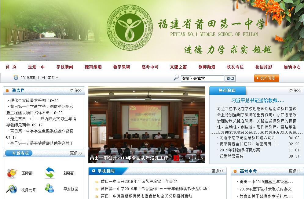 福建省莆田第一中學(xué)創(chuàng)辦于1906年,校區(qū)位于市區(qū)學(xué)園南街,占地160畝,建筑面積7萬多平方米,環(huán)境優(yōu)美,教學(xué)設(shè)施現(xiàn)代一流。現(xiàn)有高中57個班,學(xué)生3000人。教師100%本科畢業(yè),其中碩士研究生59人,高級教師81人,國家省市級學(xué)科帶頭人和骨干教師共60人,省市名師8人。學(xué)校辦學(xué)成績蜚聲海內(nèi)外,歷史上以全國高考紅旗而聞名。校友中有院士4人,教授級專家、學(xué)者、黨政領(lǐng)導(dǎo)等近3000人。學(xué)校全面推進(jìn)素質(zhì)教育和新課程改革,堅持德育為首,實施“五個一”工程,按照“強化、浸潤、體驗、養(yǎng)成”的德育模式,以“五正”(正容、正言、正行、正心、正人)教育為核心,通過主題推進(jìn)式德育,提高學(xué)生的文明素養(yǎng)。建立高三工作“139”新模式,高考成績?nèi)〉眯峦黄?,穩(wěn)居全省前茅。2010-2015年共82人考取清華、北大、港大;文理科本一總上線率達(dá)95%;2015年71位學(xué)生獲許亞瓊獎學(xué)金,創(chuàng)1987年設(shè)獎以來我校年度獲獎人數(shù)最高紀(jì)錄。學(xué)校堅持秉承傳統(tǒng),與時俱進(jìn),不斷推進(jìn)集團(tuán)化、國際化、多元化、特色化發(fā)展,提升辦學(xué)品位。組建包含8個學(xué)校的莆田第一中學(xué)教育集團(tuán)。2012年開辦中美高中課程實驗班,現(xiàn)共招生360人,外教6人;同年承擔(dān)內(nèi)地新疆高中班任務(wù),現(xiàn)有10個民族的150名新疆班學(xué)生。突出科技教育特色,每年舉辦科技節(jié)、“奇思妙想”創(chuàng)意節(jié),形成了一批省內(nèi)一流水平的科技特色項目。每年都有10多位學(xué)生獲創(chuàng)新大賽、機器人比賽省一等獎以上獎勵。21項師生的實用新型專利獲通過。學(xué)科奧賽成績突出,學(xué)生曾獲國際奧賽金牌、銅牌。2015年省學(xué)科奧賽獲獎人數(shù)創(chuàng)歷史紀(jì)錄,特別是物理奧賽取得四項全省第一的優(yōu)異成績。體育底蘊深厚,校運會舉辦了141屆,元旦環(huán)城跑和五四火炬長跑等傳統(tǒng)體育項目已堅持了四十幾年。校籃球隊在省青少年籃球賽中十連冠,2009年獲全國高中男子籃球聯(lián)賽亞軍。學(xué)校注重因材施教,促進(jìn)學(xué)生全面發(fā)展、個性發(fā)展,已逐步形成辦學(xué)模式多樣化、民族多樣化、社團(tuán)活動多元化、學(xué)生發(fā)展多元化的新局面。學(xué)校以“為全體學(xué)生負(fù)責(zé),為學(xué)生終身負(fù)責(zé),為中華民族負(fù)責(zé)”為辦學(xué)理念,以“進(jìn)德、力學(xué)、求實、超越”為校訓(xùn),致力于打造“文化一中、品質(zhì)一中、學(xué)術(shù)一中、多元一中、和諧一中”,辦莆田人民滿意的教育。