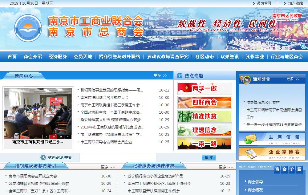 南京市工商業(yè)聯(lián)合會成立于1952年5月,簡稱南京市工商聯(lián),又稱南京市總商會。工商聯(lián)是中國共產(chǎn)黨領(lǐng)導(dǎo)的以非公有制企業(yè)和非公有制經(jīng)濟(jì)人士為主體的,具有統(tǒng)戰(zhàn)性、經(jīng)濟(jì)性、民間性有機(jī)統(tǒng)一基本特征的人民團(tuán)體和商會組織,是黨和政府聯(lián)系非公有制經(jīng)濟(jì)人士的橋梁紐帶,是政府管理和服務(wù)非公有制經(jīng)濟(jì)的助手,是中國人民政治協(xié)商會議的重要組成部分。工商聯(lián)工作是中國共產(chǎn)黨統(tǒng)一戰(zhàn)線工作和經(jīng)濟(jì)工作的重要內(nèi)容,工商聯(lián)事業(yè)是中國特色社會主義事業(yè)的重要組成部分。工作對象主要包括私營企業(yè)、非公有制經(jīng)濟(jì)成分控股的有限責(zé)任公司和股份有限公司、港澳投資企業(yè)等,私營企業(yè)出資人、個體工商戶、在內(nèi)地投資的港澳工商界人士等。工商聯(lián)以促進(jìn)非公有制經(jīng)濟(jì)健康發(fā)展和非公有制經(jīng)濟(jì)人士健康成長為主題履行職責(zé),堅(jiān)持政治建會、團(tuán)結(jié)立會、服務(wù)興會、改革強(qiáng)會,充分發(fā)揮在非公有制經(jīng)濟(jì)人士思想政治工作中的引導(dǎo)作用,在非公有制經(jīng)濟(jì)人士參與政治和社會生活中的重要作用,在政府管理和服務(wù)非公有制經(jīng)濟(jì)中的助手作用,在行業(yè)協(xié)會商會改革發(fā)展中的促進(jìn)作用,在構(gòu)建和諧勞動關(guān)系、加強(qiáng)和創(chuàng)新社會治理中的協(xié)同作用。南京市工商聯(lián)是中國工商業(yè)聯(lián)合會的地方組織。新中國成立之初,市工商聯(lián)團(tuán)結(jié)南京工商界,為恢復(fù)生產(chǎn)、爭取國家財政經(jīng)濟(jì)狀況的好轉(zhuǎn),做了大量卓有成效的工作。改革開放以來,市工商聯(lián)圍繞經(jīng)濟(jì)建設(shè)中心,服務(wù)市委、市政府工作大局,積極參政議政、建言獻(xiàn)策,努力探索非公有制經(jīng)濟(jì)人士思想政治工作的新途徑,在強(qiáng)化商會職能、增強(qiáng)服務(wù)意識、拓展服務(wù)領(lǐng)域、提高服務(wù)本領(lǐng)等方面做了大量富有成效的工作。2010年9月16日,中共中央、國務(wù)院《關(guān)于加強(qiáng)和改進(jìn)新形勢下工商聯(lián)工作的意見》頒布后,市工商聯(lián)在新的發(fā)展起點(diǎn)上迎來了可以大有作為的重要機(jī)遇期。黨的十八大以來,在以習(xí)近平同志為核心的黨中央堅(jiān)強(qiáng)領(lǐng)導(dǎo)下,工商聯(lián)堅(jiān)持圍繞中心、服務(wù)大局,牢牢把握“兩個健康”主題,貫徹團(tuán)結(jié)、服務(wù)、引導(dǎo)、教育方針,在統(tǒng)籌推進(jìn)“五位一體”總體布局、協(xié)調(diào)推進(jìn)“四個全面”戰(zhàn)略布局中發(fā)揮了積極作用。截止2018年3月底,全市工商聯(lián)會員總數(shù)達(dá)到54603家,其中企業(yè)會員51022家;商會組織511家,其中行業(yè)商會217家,街鎮(zhèn)商會100家,異地商會91家。南京市工商聯(lián)還與全國多地工商聯(lián)建立了友好合作關(guān)系,并與全球40多個國家和地區(qū)的組織、機(jī)構(gòu)、商會等建立了廣泛聯(lián)系。南京市工商聯(lián)第一、二屆主任委員為陳邃衡,第三、四、五、六屆主任委員為黃希仁,第七、八屆主任委員為徐美峰,第九屆主任委員為徐英銳,第十、十一屆會長為莊一鵬,第十二、十三、十四屆會長(主席)為祝義材?,F(xiàn)任南京市工商聯(lián)主席、南京市總商會會長為蘇寧控股集團(tuán)董事長張近東。