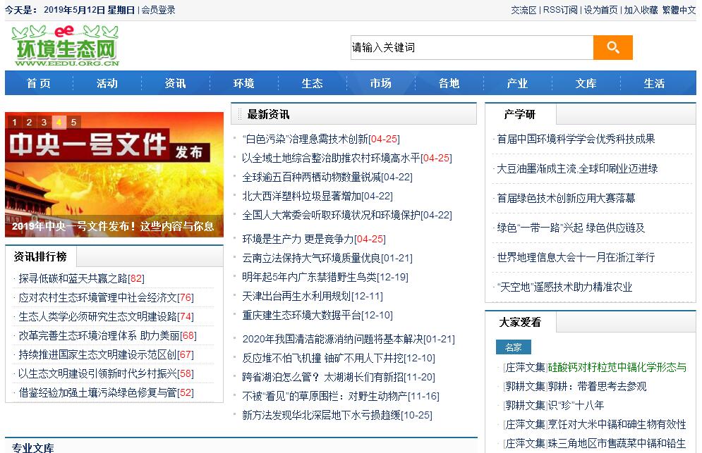 環(huán)境生態(tài)網(wǎng)(http://www.eedu.org.cn,前身為中國環(huán)境生態(tài)網(wǎng))是中國環(huán)境學(xué)、生態(tài)學(xué)、環(huán)保公益宣傳的網(wǎng)上家園!環(huán)境生態(tài)網(wǎng)創(chuàng)建于2004年4月22日,是集環(huán)境學(xué)、生態(tài)學(xué)、環(huán)保公益宣傳、宣揚綠色生活于一體綜合性門戶網(wǎng)站。一直以來倡導(dǎo)自由,交流,創(chuàng)新,友愛,分享的學(xué)術(shù)氛圍,致力打造分享環(huán)境科學(xué)和生態(tài)學(xué)領(lǐng)域研究進展的信息平臺,營造環(huán)保公益宣傳及綠色生活宣揚的交流空間,實踐可持續(xù)的環(huán)境保護,構(gòu)建現(xiàn)代生態(tài)文明為基準(zhǔn)的和諧社會,為建設(shè)環(huán)境友好型、資源節(jié)約型社會貢獻(xiàn)綿薄之力!本網(wǎng)站擁有獨立主機,具有良好的網(wǎng)站定位,有能力為廣大用戶提供穩(wěn)定、優(yōu)質(zhì)的網(wǎng)絡(luò)服務(wù)。本網(wǎng)站注重科學(xué)性、實用性、專業(yè)性和學(xué)術(shù)性,及時、全面、快速的把環(huán)境學(xué)、生態(tài)學(xué)及環(huán)保有關(guān)方面的信息和資料在互聯(lián)網(wǎng)上發(fā)布,采用合理的科學(xué)分類方法,獨特的關(guān)鍵詞搜索方便會員網(wǎng)上查詢,為用戶提供了一種全新的、方便、快捷的專業(yè)信息服務(wù)。本網(wǎng)站主要面向廣大科研工作者和科研機構(gòu),包括環(huán)境科學(xué)和生態(tài)學(xué)研究領(lǐng)域的專家、研究生及大學(xué)生,以及高校科研院所企業(yè)的科研人員!目前有正式會員超過10萬人,其中一半以上具有碩士和博士學(xué)歷,是環(huán)境學(xué)、生態(tài)學(xué)專業(yè)人群交流的重要場所。通過網(wǎng)站、社區(qū)與博客互動發(fā)展的模式,為廣大網(wǎng)友提供各類國內(nèi)外最新的動態(tài)信息、內(nèi)容豐富的資料文獻(xiàn),和一個學(xué)術(shù)探討、經(jīng)驗交流、溝通信息、互相促進、共同提高的場地。環(huán)境生態(tài)網(wǎng)建站的理念:聚集知識精英,共享專業(yè)資源,傳播環(huán)保信息;為社會做點事,為他人做點事,為自己做點事;我們的宗旨是構(gòu)建環(huán)保知識傳播交流平臺,共同追求成功,共享智慧人生。