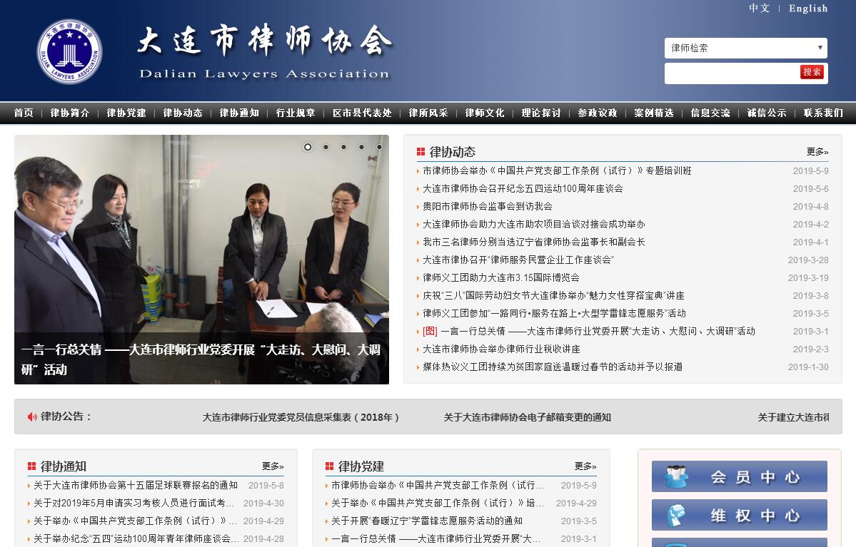 大連市律師協(xié)會(huì)是依法成立的社會(huì)團(tuán)體法人,是大連市律師的自律性行業(yè)組織,依據(jù)《律師法》、《律師協(xié)會(huì)章程》,對大連市執(zhí)業(yè)律師實(shí)行行業(yè)管理,受大連市司法局的監(jiān)督和指導(dǎo)。協(xié)會(huì)現(xiàn)有團(tuán)體會(huì)員286家,律師會(huì)員3600余人。近年來,協(xié)會(huì)先后榮獲“全國先進(jìn)社會(huì)組織”、“遼寧省示范社團(tuán)”、“大連市5A級社會(huì)團(tuán)體”等榮譽(yù)稱號(hào)。協(xié)會(huì)黨委先后榮獲“遼寧省基層黨建工作先進(jìn)單位”、“民政部社會(huì)組織深入學(xué)習(xí)實(shí)踐科學(xué)發(fā)展觀活動(dòng)先進(jìn)單位”等榮譽(yù)稱號(hào)。大連市律師協(xié)會(huì)的主要職責(zé)是:1、制定并監(jiān)督實(shí)施行業(yè)發(fā)展規(guī)劃、會(huì)員執(zhí)業(yè)規(guī)范和行業(yè)管理規(guī)則和制度;2、保障會(huì)員依法執(zhí)業(yè),維護(hù)會(huì)員的合法權(quán)益;3、負(fù)責(zé)會(huì)員職業(yè)道德和執(zhí)業(yè)紀(jì)律的教育、檢查和監(jiān)督,對會(huì)員的執(zhí)業(yè)活動(dòng)進(jìn)行考核;4、制定律師繼續(xù)教育大綱,負(fù)責(zé)對會(huì)員的政治和業(yè)務(wù)培訓(xùn);5、組織管理申請律師執(zhí)業(yè)人員的實(shí)習(xí)活動(dòng),制定和落實(shí)培訓(xùn)計(jì)劃,對實(shí)習(xí)人員進(jìn)行考核;6、開展業(yè)務(wù)研討,總結(jié)交流律師工作經(jīng)驗(yàn);7、負(fù)責(zé)對會(huì)員登記和日常管理;8、調(diào)查處理對會(huì)員的投訴;9、調(diào)處會(huì)員之間在執(zhí)業(yè)活動(dòng)中的糾紛;10、制定并實(shí)施會(huì)員獎(jiǎng)懲辦法;11、宣傳律師工作,出版律師刊物;12、組織會(huì)員開展對外交流;13、為會(huì)員提供福利和其他保障;14、指導(dǎo)律師事務(wù)所規(guī)范化管理工作;15、組織會(huì)員參與立法活動(dòng),向有關(guān)部門提出法制建設(shè)及律師制度建設(shè)的建議;16、鼓勵(lì)和支持會(huì)員參政議政;17、協(xié)調(diào)與相關(guān)司法、行政機(jī)關(guān)的關(guān)系,為律師依法執(zhí)業(yè)創(chuàng)造良好環(huán)境;18、完成司法行政機(jī)關(guān)及上級律師協(xié)會(huì)委托的其他職責(zé);19、法律、法規(guī)、規(guī)章和章程規(guī)定的其他職責(zé)。