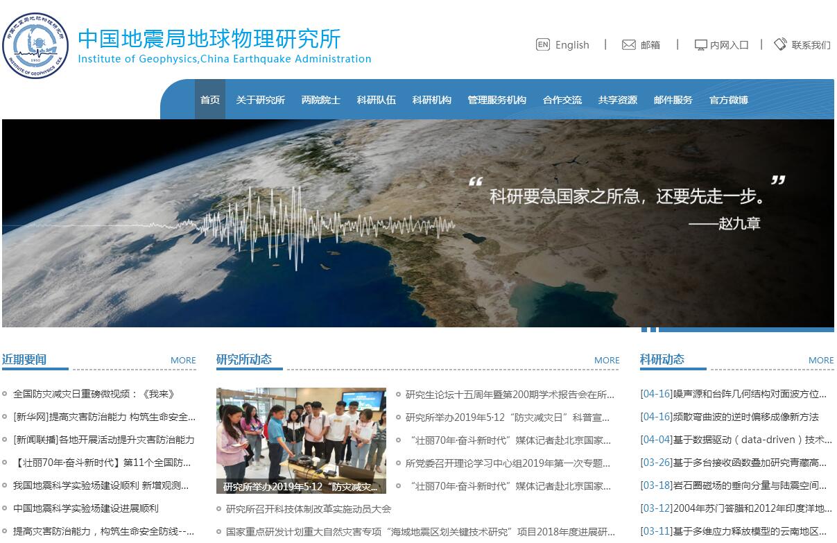 中國地震局地球物理研究所成立于1950年,其前身是中國科學(xué)院地球物理研究所,1971年劃歸國家地震局(后更名為中國地震局),是一個(gè)有著近70年發(fā)展歷史的社會公益性國家級科研機(jī)構(gòu),是國家創(chuàng)新體系中公益性研究機(jī)構(gòu)的重要組成部分和國家防震減災(zāi)工作科技創(chuàng)新的主體。地球物理研究所以地震孕育與發(fā)生機(jī)制、地震災(zāi)害預(yù)測與工程應(yīng)用為主要研究領(lǐng)域,開展地球物理學(xué)相關(guān)的基礎(chǔ)研究和應(yīng)用研究,重點(diǎn)加強(qiáng)地震學(xué)、地球內(nèi)部物理學(xué)、地磁學(xué)、工程地震學(xué)四個(gè)優(yōu)勢學(xué)科和觀測、實(shí)驗(yàn)兩個(gè)基地的建設(shè)。在開展科學(xué)研究工作中,既強(qiáng)化地震相關(guān)領(lǐng)域前瞻性基礎(chǔ)研究、引領(lǐng)性原創(chuàng)成果重大突破,也面向防震減災(zāi)三大工作體系的發(fā)展需求,加強(qiáng)應(yīng)用基礎(chǔ)研究,突出地震觀測預(yù)測預(yù)警、工程抗震、災(zāi)害評估等關(guān)鍵共性技術(shù)和前沿引領(lǐng)技術(shù)的創(chuàng)新,支撐防震減災(zāi)事業(yè)發(fā)展。近年來主要聚焦并牽頭開展“國家地震科技創(chuàng)新工程”的“透明地殼”計(jì)劃相關(guān)研究工作,參與“解剖地震”計(jì)劃有關(guān)工作。研究所內(nèi)設(shè)10個(gè)研究室(臺站)、1個(gè)防災(zāi)減災(zāi)工程技術(shù)研究院、9個(gè)管理、服務(wù)及科輔部門。所屬的北京國家地球觀象臺是科技部掛牌的“國家野外科學(xué)觀測研究站”和“國際科技合作基地”。建有一個(gè)中國地震局行業(yè)重點(diǎn)實(shí)驗(yàn)室“地震觀測與地球物理成像實(shí)驗(yàn)室”。中國地震局測震學(xué)科技術(shù)協(xié)調(diào)組、電磁學(xué)科技術(shù)協(xié)調(diào)組、全國地震標(biāo)準(zhǔn)化技術(shù)委員會秘書處、中國地震學(xué)會等重要的行業(yè)組織或機(jī)構(gòu)掛靠在研究所。 國際地震學(xué)與地球內(nèi)部物理學(xué)協(xié)會(IASPEI)中國委員會、亞洲地震委員會(ASC)等國際學(xué)術(shù)組織秘書處設(shè)在研究所內(nèi)。地球物理研究所現(xiàn)有中國科學(xué)院院士4人,中國工程院院士1人,第三世界科學(xué)院院士3人,研究員46人,副高級職稱人員96人。享受國務(wù)院政府特殊津貼專家61人,國家級有突出貢獻(xiàn)的中青年專家6人,入選國家級人才工程人選8人, 國家“萬人計(jì)劃”中青年科技創(chuàng)新領(lǐng)軍人才1人,科技部“國家創(chuàng)新人才推進(jìn)計(jì)劃”重點(diǎn)領(lǐng)域創(chuàng)新團(tuán)隊(duì)1個(gè)、中青年領(lǐng)軍人才1人,入選科技部國家創(chuàng)新人才培養(yǎng)示范基地。研究所有多位專家先后在國際地震學(xué)與地球內(nèi)部物理學(xué)協(xié)會 、亞洲地震委員會等國際學(xué)術(shù)組織中擔(dān)任主席、秘書長等重要職位。陳運(yùn)泰院士曾獲美國地球物理聯(lián)合會(AGU)授予的國際成就獎、亞洲-大洋洲地球科學(xué)學(xué)會(AOGS)授予的Axford獎,有兩位專家當(dāng)選國際大地測量與地球物理聯(lián)合會(IUGG)首批會士。地球物理研究所是首批國務(wù)院批準(zhǔn)的碩士、博士學(xué)位學(xué)位授予單位和博士后流動站單位,具有“地球物理學(xué)”一級學(xué)科博士和碩士學(xué)位授予權(quán)、“土木工程”一級學(xué)科碩士學(xué)位授予權(quán)、以及“地球探測與信息技術(shù)”二級學(xué)科碩士學(xué)位授予權(quán),并有權(quán)授理在職人員以同等學(xué)力申請碩士學(xué)位。現(xiàn)有博士生導(dǎo)師45人,碩士導(dǎo)師42人,目前在學(xué)研究生190余名。加強(qiáng)與國外多家知名大學(xué)和科研機(jī)構(gòu)合作,重視聯(lián)合培養(yǎng)博士研究生和青年科技人才的培養(yǎng)。近年來,地球物理研究所承擔(dān)了國家重點(diǎn)研發(fā)計(jì)劃項(xiàng)目、國家自然科學(xué)基金重大項(xiàng)目、國家社會科學(xué)基金重大項(xiàng)目、科技部國際合作重大項(xiàng)目、科技部重大儀器專項(xiàng)、國家科技支撐計(jì)劃項(xiàng)目等一系列重大項(xiàng)目。并作為“地震科學(xué)探測臺陣項(xiàng)目”、“國家地震社會服務(wù)工程項(xiàng)目”兩個(gè)國家重大工程項(xiàng)目的法人單位,牽頭承擔(dān)項(xiàng)目的立項(xiàng)設(shè)計(jì)及組織實(shí)施。在國家科技計(jì)劃項(xiàng)目和行業(yè)重點(diǎn)專項(xiàng)支持下,研究所在大陸與海域地殼精細(xì)結(jié)構(gòu)探查與成像研究、區(qū)域尺度介質(zhì)變化主動源監(jiān)測技術(shù)、區(qū)域地震走時(shí)表編制與地震精確定位、中國地磁參考場和中國地磁圖的觀測與編圖、活斷層的地球物理探測技術(shù)與應(yīng)用、地震立體觀測系統(tǒng)技術(shù)研發(fā)等領(lǐng)域取得了一批重要科技成果。通過多學(xué)科交叉研究,在中國地震動參數(shù)區(qū)劃圖編制、海域地震區(qū)劃關(guān)鍵技術(shù)研究、震源參數(shù)快速測定技術(shù)研究、重大工程設(shè)計(jì)地震動參數(shù)確定方法與技術(shù)、核電廠地震安全問題研究、生命線工程抗震分析方法和技術(shù)、基于地震參數(shù)的災(zāi)情準(zhǔn)實(shí)時(shí)估計(jì)關(guān)鍵技術(shù)研究等領