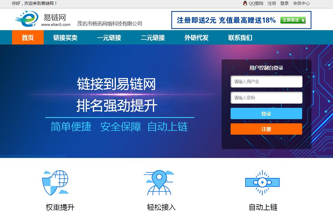 | 網(wǎng)站簡介: 茂名市楊訊網(wǎng)絡(luò)科技有限公司易鏈網(wǎng)是網(wǎng)站友情鏈接交易平臺!易鏈網(wǎng)為站長提供外鏈交易平臺、為客戶提供友情鏈接托管等專業(yè)服務(wù)。易鏈網(wǎng)一直在不斷的努力,將持續(xù)不斷地為廣大站長提供優(yōu)質(zhì)、高效的服務(wù)。 |