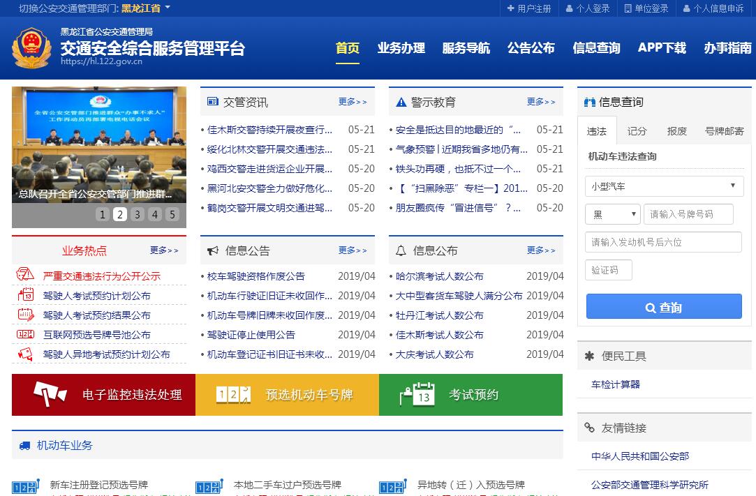 | 網(wǎng)站名稱: | 黑龍江省公安交通管理局互聯(lián)網(wǎng)交通安全服務管理平臺 | ||