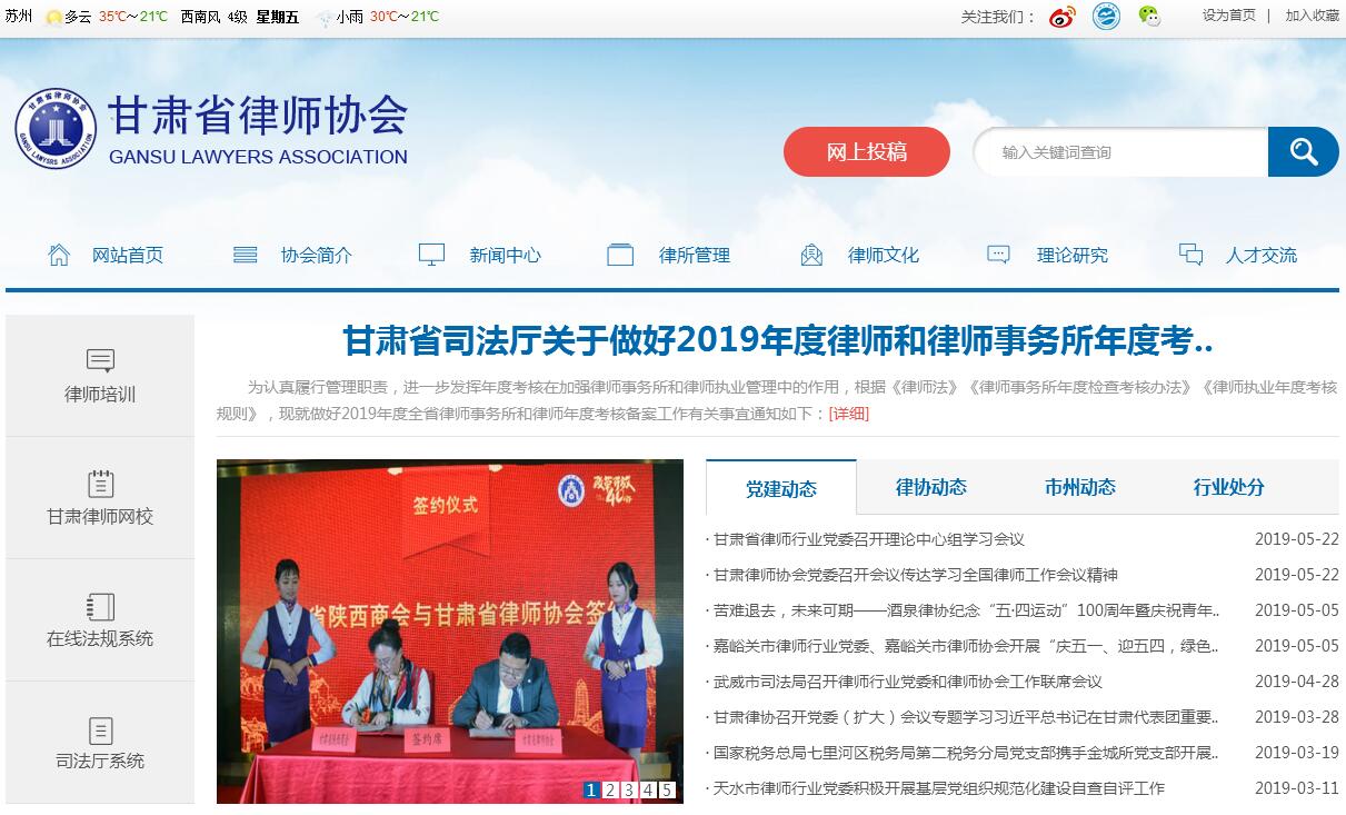 甘肅省律師協(xié)會是依照《中華人民共和國律師法》設(shè)立、由甘肅省律師組成的社會團體,受甘肅省司法廳的指導(dǎo)和監(jiān)督,對甘肅省律師隊伍實施行業(yè)自律管理。甘肅省律師協(xié)會成立于1984年,經(jīng)甘肅省民政廳登記注冊,截至2016年有團體會員335家,個人會員3111人。甘肅省律師協(xié)會的主要職責和任務(wù)是:承擔省內(nèi)律師的行業(yè)管理工作;保障律師依法執(zhí)業(yè),維護律師的合法權(quán)益和執(zhí)業(yè)權(quán)利;總結(jié)、交流律師工作經(jīng)驗;組織律師進行業(yè)務(wù)培訓(xùn);對律師進行職業(yè)道德和執(zhí)業(yè)紀律的教育、檢查和監(jiān)督;組織律師開展對外交流活動;調(diào)解律師在執(zhí)業(yè)過程中發(fā)生的糾紛;按照章程規(guī)定對律師進行獎勵或者行業(yè)處分;為會員提供業(yè)務(wù)信息資料;開展律師文化體育活動;舉辦律師福利事業(yè);組織實施律師代表大會決議;完成中華全國律師協(xié)會和司法行政部門下達的任務(wù)。