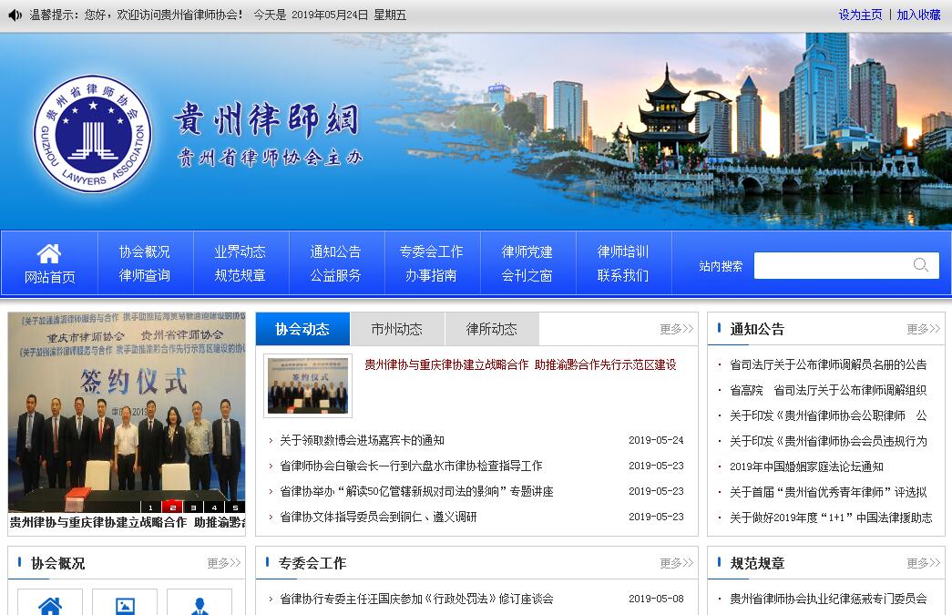 貴州省律師協(xié)會成立于1986年,是由本省全體律師執(zhí)業(yè)機構(gòu)和執(zhí)業(yè)律師組成的社會團體法人,是本省全體律師執(zhí)業(yè)機構(gòu)和執(zhí)業(yè)律師的自律性組織,依法對本省全體律師執(zhí)業(yè)機構(gòu)和執(zhí)業(yè)律師實施行業(yè)管理并提供服務。貴州省律師協(xié)會接受行政主管機關(guān)貴州省司法廳和登記管理機關(guān)貴州省民政廳的的監(jiān)督、指導,接受中華全國律師協(xié)會的指導。貴州省律師協(xié)會下轄有貴陽市律師協(xié)會、遵義市律師協(xié)會、六盤水市律師協(xié)會、安順市律師協(xié)會、畢節(jié)市律師協(xié)會、銅仁市律師協(xié)會、黔東南州律師協(xié)會、黔南州律師協(xié)會、黔西南州律師協(xié)會。貴州省律師協(xié)會的宗旨是:堅持中國共產(chǎn)黨的領(lǐng)導,團結(jié)帶領(lǐng)會員高舉中國特色社會主義偉大旗幟,忠實履行中國特色社會主義法律工作者的職責使命,維護當事人合法權(quán)益、維護法律的正確實施,維護社會公平和正義,為建設(shè)社會主義法治國家,促進社會和諧發(fā)展和文明進步而奮斗。貴州省律師協(xié)會的最高權(quán)利機構(gòu)為全省律師代表大會。貴州省律師協(xié)會每四年舉行一次全省律師代表大會,選舉產(chǎn)生理事會,理事會選舉產(chǎn)生會長、副會長和常務理事。在全省律師代表大會和理事會閉會期間,常務理事會行使理事會的職權(quán),執(zhí)行全省律師代表大會的決議。依據(jù)《中華人民共和國律師法》和《貴州省律師協(xié)會章程》,貴州省律師協(xié)會的主要職責有:(一)制定本省律師行業(yè)發(fā)展規(guī)劃;(二)監(jiān)督實施律師行業(yè)管理制度和執(zhí)業(yè)規(guī)范,指導并督促律師執(zhí)業(yè)執(zhí)業(yè)機構(gòu)規(guī)范化建設(shè);(三)負責律師職業(yè)道德和執(zhí)業(yè)紀律教育、檢查和監(jiān)督;(四)支持會員依法執(zhí)業(yè),維護會員合法權(quán)益;(五)鼓勵和支持律師參政議政;(六)宣傳律師工作,提升律師社會形象;(七)組織實施律師執(zhí)業(yè)繼續(xù)教育,總結(jié)交流工作經(jīng)驗,提高會員執(zhí)業(yè)水平;(八)組織實施律師執(zhí)業(yè)宣誓活動;(九)負責個人會員考核管理,協(xié)助和配合司法行政機關(guān)對團體會員進行考核管理;(十)為會員提供福利和其他救助;(十一)組織會員開展社會公益活動;(十二)制定并實施會員獎勵與懲戒辦法;(十三)處理對會員的投訴;(十四)調(diào)處會員在執(zhí)業(yè)活動中發(fā)生的糾紛;(十五)對會員違法違紀行為進行調(diào)查取證,作出行業(yè)處分,并向司法行政機關(guān)提出行政處罰建議;(十六)組織管理申請律師執(zhí)業(yè)人員的實習活動和考核;(十七)協(xié)調(diào)與相關(guān)國家機關(guān)的關(guān)系,提出立法和司法建議;(十八)指導市、州律師協(xié)會工作;(十九)司法行政機關(guān)及全國律協(xié)確定或委托的其他職責;(二十)法律、法規(guī)、規(guī)章規(guī)定的其他職責。