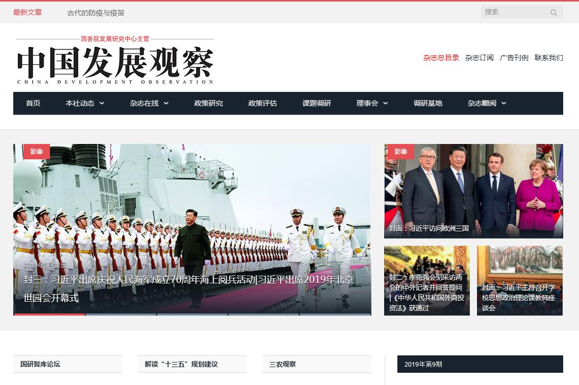 | 網(wǎng)站簡(jiǎn)介: 《中國(guó)發(fā)展觀察》由國(guó)務(wù)院發(fā)展研究中心主管、中國(guó)發(fā)展出版社主辦、中國(guó)發(fā)展觀察雜志社編輯出版,是以發(fā)展為主線、以經(jīng)濟(jì)為重點(diǎn)的綜合性半月刊,開設(shè)有戰(zhàn)略、宏觀、區(qū)域、世界、法治、社會(huì)、前沿、國(guó)研智庫論壇、新型城鎮(zhèn)化講臺(tái)、三農(nóng)觀察等欄目,具有較強(qiáng)的前瞻性、權(quán)威性、可讀性?!吨袊?guó)發(fā)展觀察》在學(xué)術(shù)理論界、各級(jí)黨政機(jī)關(guān)以及企業(yè)家階層擁有廣泛而穩(wěn)固的讀者群,并被中國(guó)社會(huì)科學(xué)院、國(guó)家發(fā)展改革委等重要機(jī)構(gòu)和中國(guó)知網(wǎng)、維普資訊等權(quán)威數(shù)據(jù)庫列為核心期刊或來源期刊。 |