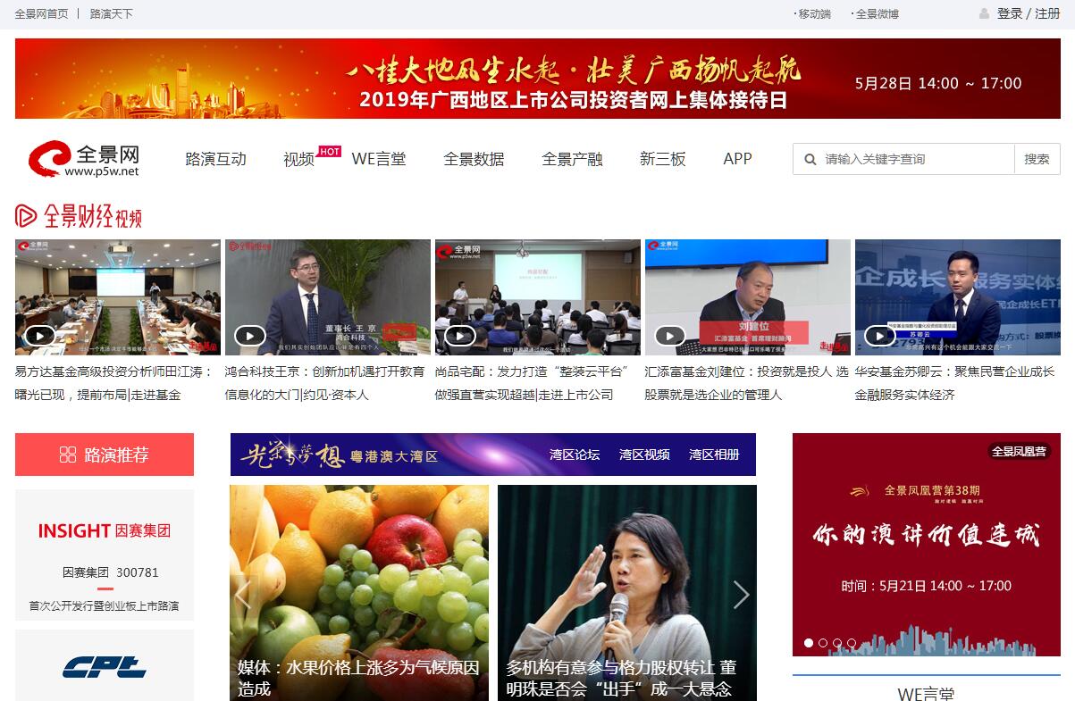 | 網(wǎng)站簡介: 全景網(wǎng)成立于1999年,先后打造網(wǎng)上路演、投資者互動(dòng)平臺(tái)等中國證券市場創(chuàng)新服務(wù)。依托多年積累的品牌影響力、強(qiáng)大的資本圈資源、雄厚的采編及專業(yè)服務(wù)力量,全景網(wǎng)正成為覆蓋媒體、路演互動(dòng)、金融服務(wù)等業(yè)務(wù)的一站式資本服務(wù)平臺(tái)。 |
