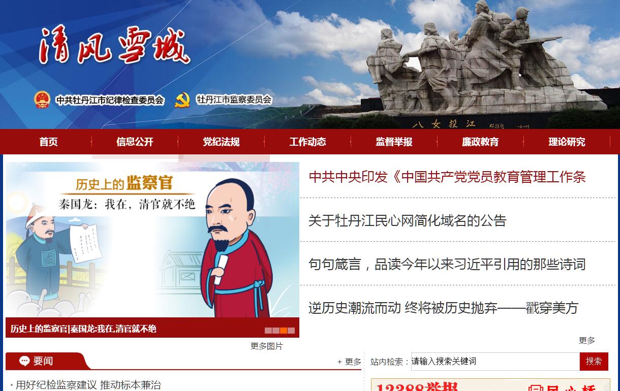 | 網(wǎng)站簡介: 清風(fēng)雪城由中共牡丹江市紀(jì)律檢查委員會,牡丹江市監(jiān)察局主辦。 |
