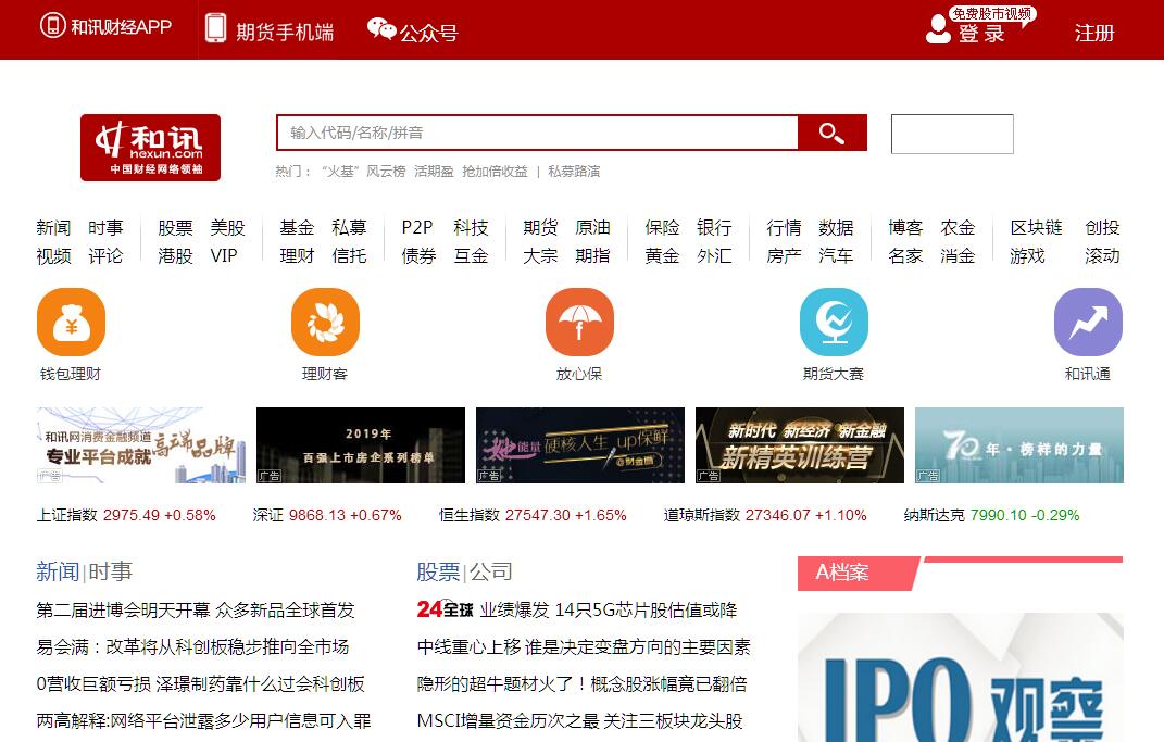 和訊網-中國財經網絡領袖和中產階級網絡家園,為您全方位提供財經資訊及全球金融市場行情,覆蓋股票、基金、期貨、股指期貨、外匯、債券、保險、銀行、黃金、理財、股吧、博客等財經綜合信息。和訊網創(chuàng)立于1996年,從中國早期金融證券資訊服務脫穎而出,建立了中國第一個財經資訊垂直網站,并始終保持高端財經領域用戶排名第一。和訊作為一直伴隨中國經濟并肩在路的老朋友、與中國資本市場風雨同舟的同路人,一貫秉持“推動中國億萬中產階層發(fā)展壯大,助力中小投資者財富增長”的展業(yè)宗旨?,F(xiàn)已成為一家為投資者提供“多層次金融信息和交易服務”的專業(yè)金融投資平臺,并在該領域長期處于領先地位。和訊大股東(創(chuàng)始股東)聯(lián)辦集團是中國證券市場最初設立的民間推動者,是中國最早的證券場所交易市場——STAQ 系統(tǒng)(新三板前身)的開發(fā)建設者。與集團內兄弟媒體《財經》、《證券市場周刊》、《哈佛商業(yè)評論》等共識,和訊公司成立之初便著力于引入和發(fā)掘先進金融機制和理念,推動中國市場經濟進程。截至目前,和訊網已成為擁有三十余個專業(yè)垂直頻道入口,每月覆蓋 1 億中高端用戶的“中產階層投資理財網絡家園”。投資渠道少、專業(yè)門檻高,一直阻礙中國個人投資者從資本市場獲取正當?shù)耐顿Y回報 , 移動互聯(lián)網技術的迅猛發(fā)展沖破了這一瓶頸。4G 普及、大數(shù)據(jù)算法、移動支付、金融征信等關鍵技術的突破,以及自媒體帶來的資訊爆炸,為打造移動端多層次金融信息和交易閉環(huán)提供了可能。而金融資訊領域的專業(yè)權威和互聯(lián)網技術領域的相對優(yōu)勢,一直是和訊長期保持領先的核心競爭力所在。因此,和訊不斷強化專業(yè)金融信息服務傳統(tǒng)優(yōu)勢的同時,借助“數(shù)據(jù)算法、用戶畫像”打造投資者間的多層次金融信息智能分享平臺。以共享社區(qū)加強用戶互動、完成入門用戶投資教育、經驗積累、增強理性投資能力,伴隨投資者共同成長。與此同時,和訊憑借金融投資顧問、基金代銷等牌照優(yōu)勢,著力為用戶提供基金、證券、期貨、保險、信托、銀行、外匯、互金等多品類全覆蓋的金融交易場景。打造個人投資者一站式投資理財服務閉環(huán),不斷提升用戶體驗。近年,和訊對接數(shù)十家金融機構和交易平臺,初步實現(xiàn)大數(shù)據(jù)算法推送對用戶和金融機構的兩端對接,已成為國內最大的深度理財社區(qū)。期間,未發(fā)生一起違約和剛性兌付事件。和訊成為互聯(lián)網財富管理標桿公司和資本關注的焦點,和訊公司自身資本化進程亦在快速推進當中。我們認為,互聯(lián)網技術和理念是改善融資市場的有力工具,是推動中產階層壯大,助力實體經濟的核心路徑。和訊愿與各大金融機構和交易平臺通力合作,努力實現(xiàn)個人投資者、金融機構以及實體企業(yè)的多方共贏發(fā)展。