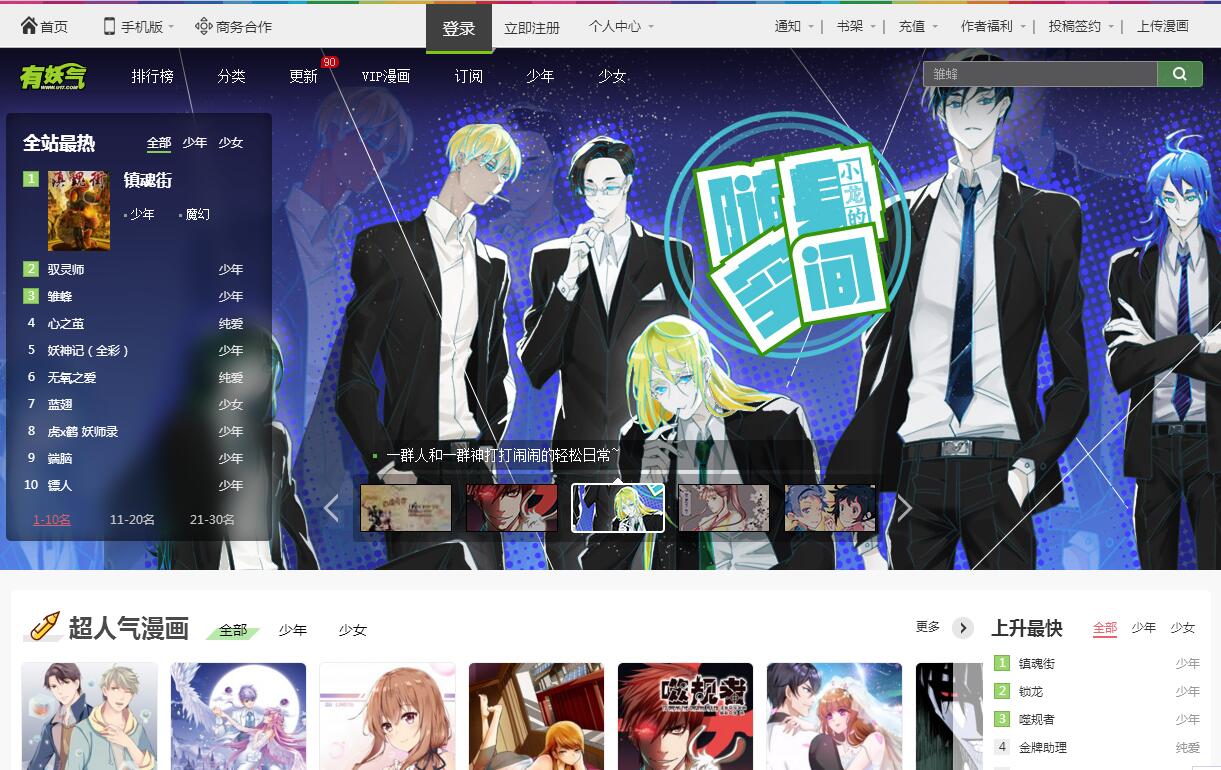 北京四月星空網(wǎng)絡技術有限公司(以下簡稱:有妖氣)是中國知名的動漫網(wǎng)絡及內(nèi)容企業(yè),奧飛娛樂股份有限公司全資子公司。有妖氣以互聯(lián)網(wǎng)動漫版權業(yè)務為核心,利用互聯(lián)網(wǎng)大平臺優(yōu)勢,不斷地在網(wǎng)站業(yè)務,移動業(yè)務及漫畫、動畫、游戲內(nèi)容等領域取得驕人成績,力求成為中國原創(chuàng)動漫產(chǎn)業(yè)的源頭砥柱型企業(yè)。有妖氣正式成立于2009年5月,并在同年10月上線原創(chuàng)漫畫網(wǎng)站“有妖氣(www.u17.com)”。作為中國獨立原創(chuàng)漫畫網(wǎng)絡的先鋒領航平臺,“有妖氣(www.u17.com)”匯聚了近30000名漫畫家、48000余部漫畫作品與數(shù)億漫迷。網(wǎng)站以海量的用戶積累、強勢的市場營銷,及自發(fā)的活躍原創(chuàng)漫畫工作者們?yōu)楹蠖?,從事原?chuàng)漫畫的互聯(lián)網(wǎng)創(chuàng)作、營銷、推廣及商業(yè)化工作,平均月更新作品達到60000頁以上,吐槽量突破1億條。有妖氣于2009年推出網(wǎng)絡漫畫業(yè)務,2012年推出網(wǎng)絡動畫業(yè)務,首部作品《十萬個冷笑話》番劇一經(jīng)推出便風靡中國,累計網(wǎng)絡播放量超過30億次。2013年啟動動畫電影業(yè)務,2014年推出手機游戲業(yè)務,并在衍生品圖書等業(yè)務上不斷與第三方進行深度合作,目前已充分覆蓋各產(chǎn)業(yè)鏈條。2015年《十萬個冷笑話》大電影上映,票房過億。2016年推出動畫《鎮(zhèn)魂街》,燃爆夏日,被譽為“臺詞劇情功底過硬”的熱血少年漫。2017年有妖氣在漫畫版權開發(fā)方面又登上了一個新的臺階,年初開播的《菊叔5歲畫》番劇、《開封奇談》番劇、廣播劇、真人劇都創(chuàng)造了良好的數(shù)據(jù)表現(xiàn),暑期上映的《鎮(zhèn)魂街》超級網(wǎng)劇累積播放量多達22億次,同時《十萬個冷笑話2》大電影全球上映,成為國產(chǎn)動畫電影票房黑馬。在2017年歲末時有妖氣又推出了《端腦》真人劇,成功突破次元壁,獲得廣大觀眾的一致好評。2018年有妖氣將帶來更多的驚喜,我們愿與合作伙伴攜手共同成長。
