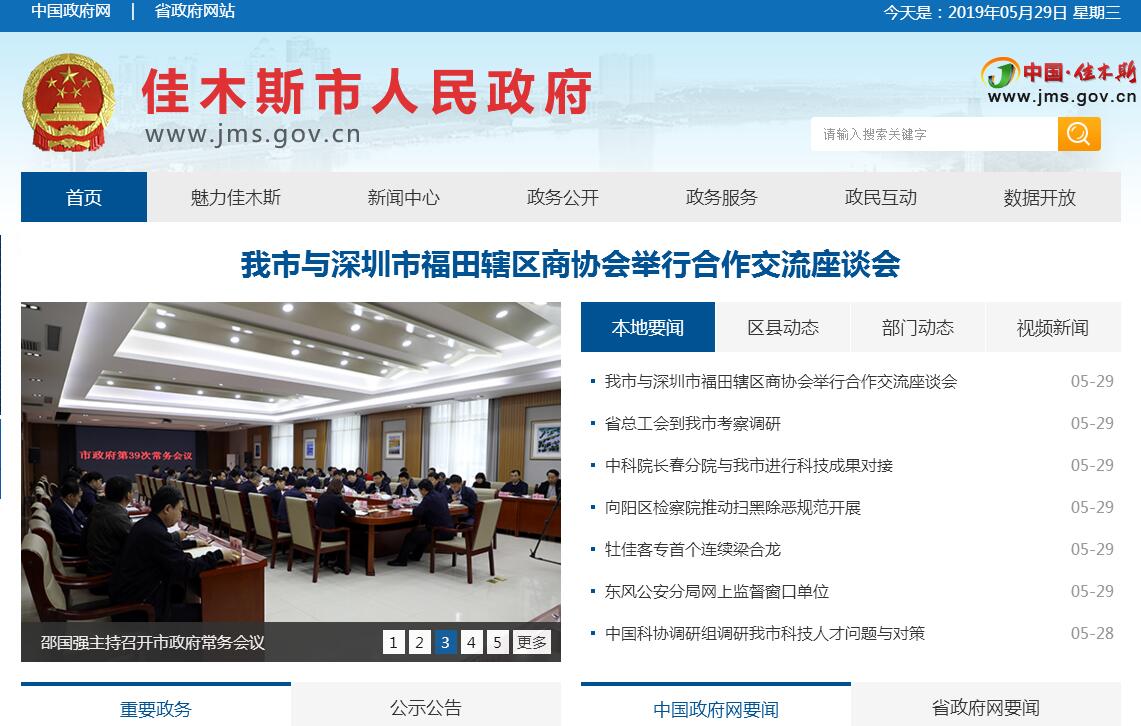 佳木斯地名源于滿語“甲母克寺噶珊”,意為“站官屯”。1937年建市,1934年至1945年曾為偽滿洲國三江省省會。佳木斯具有光榮的革命傳統(tǒng),抗戰(zhàn)時期,東北抗聯(lián)11個軍中有5個軍誕生在佳木斯,有8個軍在這里長期活動和戰(zhàn)斗;1946年至1949年為我黨最早建立的省級人民政權(quán)合江省省會,張聞天同志任省委書記。佳木斯是黑龍江省東北部區(qū)域中心城市,現(xiàn)轄6縣(市)、4區(qū),幅員面積3.246萬平方公里,總?cè)丝?33.3萬,有漢、朝、蒙、滿、回等42個民族,六小民族之一的赫哲族大部分在我市境內(nèi)。佳木斯自然資源豐富,生態(tài)環(huán)境良好,境內(nèi)有黑龍江、松花江、烏蘇里江三大水系,大中小河流290余條,盛產(chǎn)鮭魚、鱘魚、鰉魚等名貴魚種,淡水魚種類豐富。境內(nèi)濕地面積25余萬公頃,有3個國家級、4個省級濕地自然保護區(qū),其中三江國家級自然保護區(qū)已被列入世界濕地保護名錄。市屬森林覆蓋率14.94%,有野生動物200余種,野生藥材120余種。佳木斯是國家園林城,城區(qū)綠化覆蓋率為42.02%。佳木斯地處祖國邊疆,與俄遠東地區(qū)哈巴羅夫斯克及比羅比詹市兩個州區(qū)首府相鄰,是對俄開放的前沿城市之一。我市歷史文化厚重,“抗聯(lián)精神”、“東北小延安精神”、“北大荒精神”在這里形成與傳承。2018年,全市實現(xiàn)地區(qū)生產(chǎn)總值1012億元,進出口總額43億元;全年一般公共財政預算收入實現(xiàn)41.3億元;全年各種運輸方式完成的貨物吞吐量4947.1萬噸;全年共接待國內(nèi)、外旅游者740.5萬人,實現(xiàn)旅游業(yè)總收入31.5億元;全年城鎮(zhèn)居民人均可支配收入28141元,農(nóng)村居民人均可支配收入16315元;全年完成郵電業(yè)務總量18.2億元;年末全市金融機構(gòu)各項存款余額1379.7億元,各項貸款余額1812.5億元。